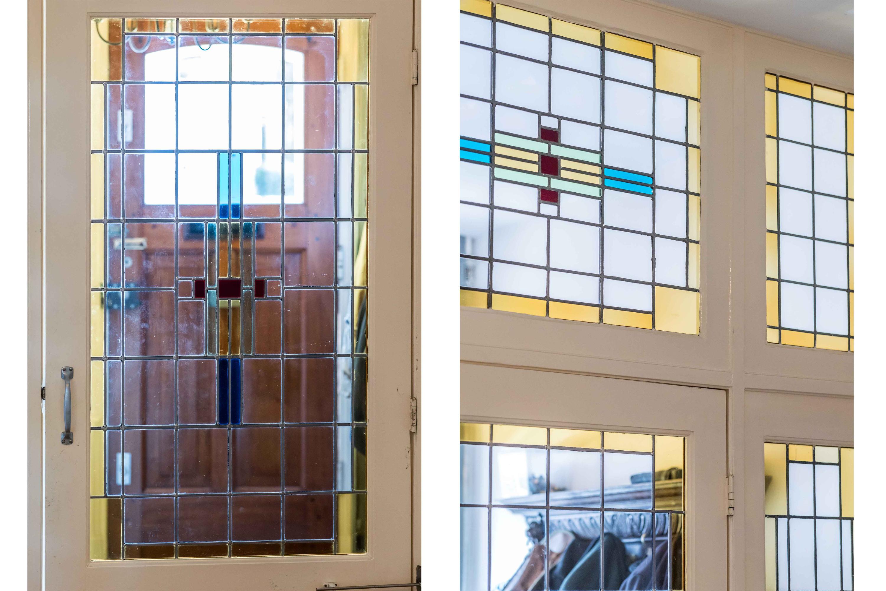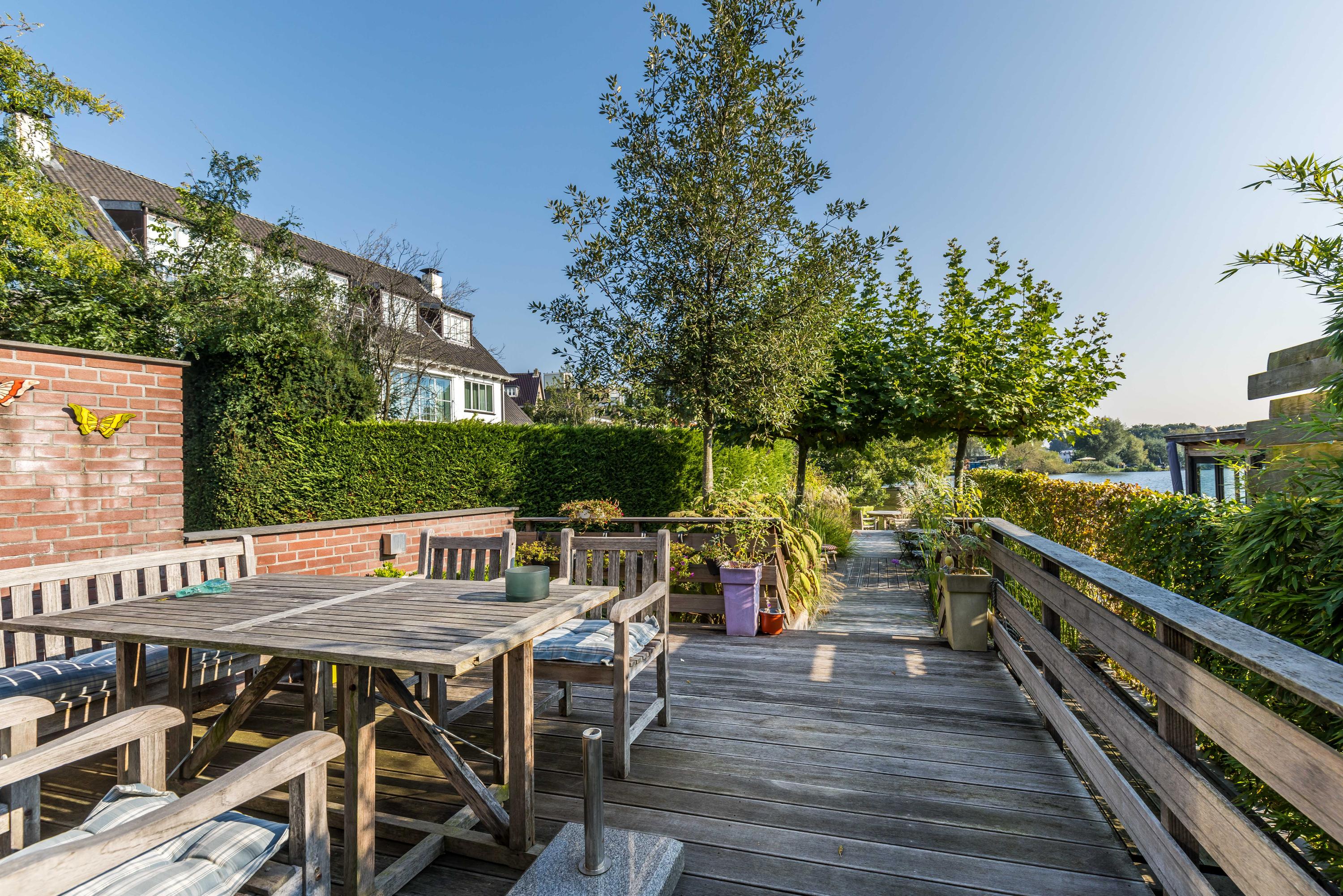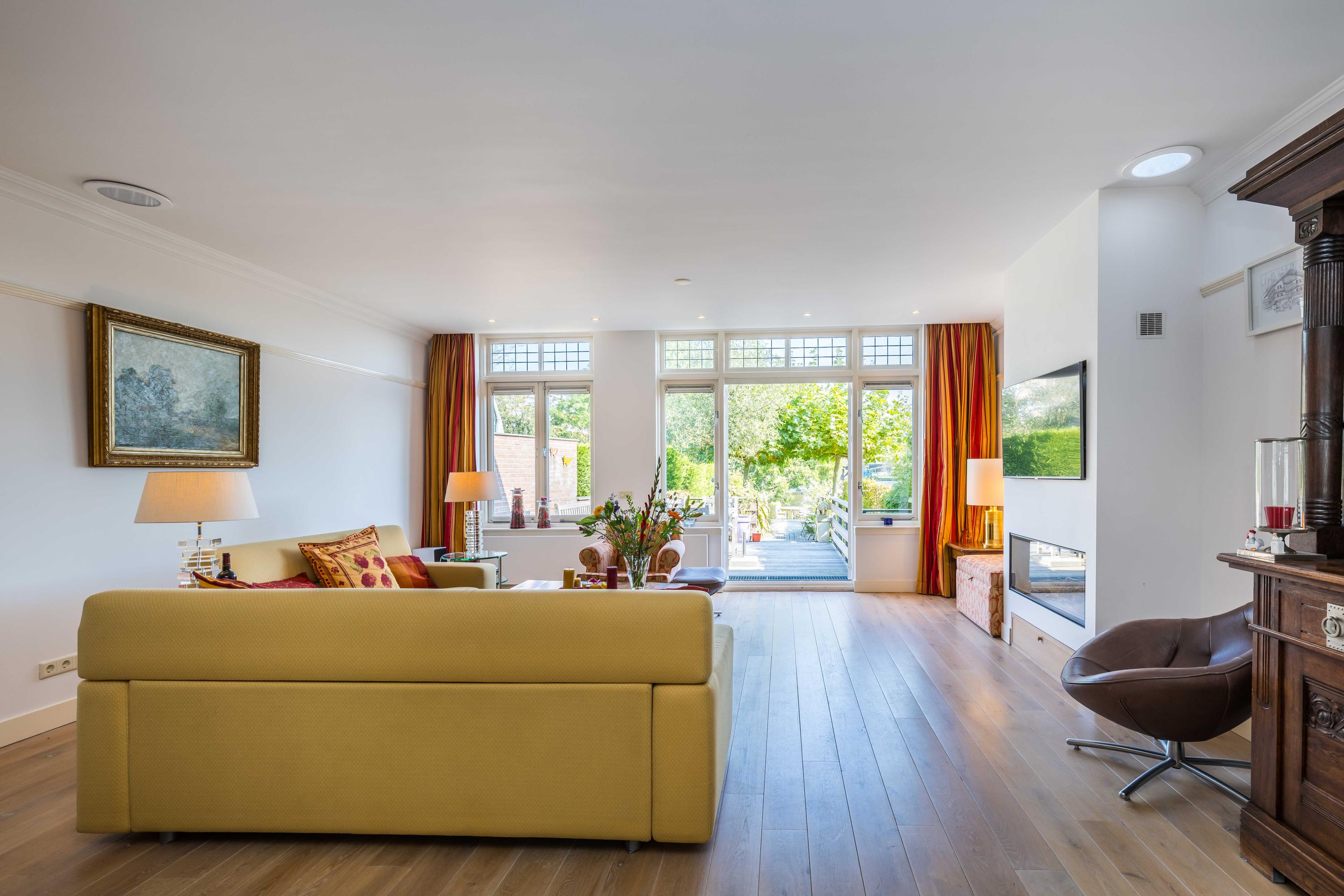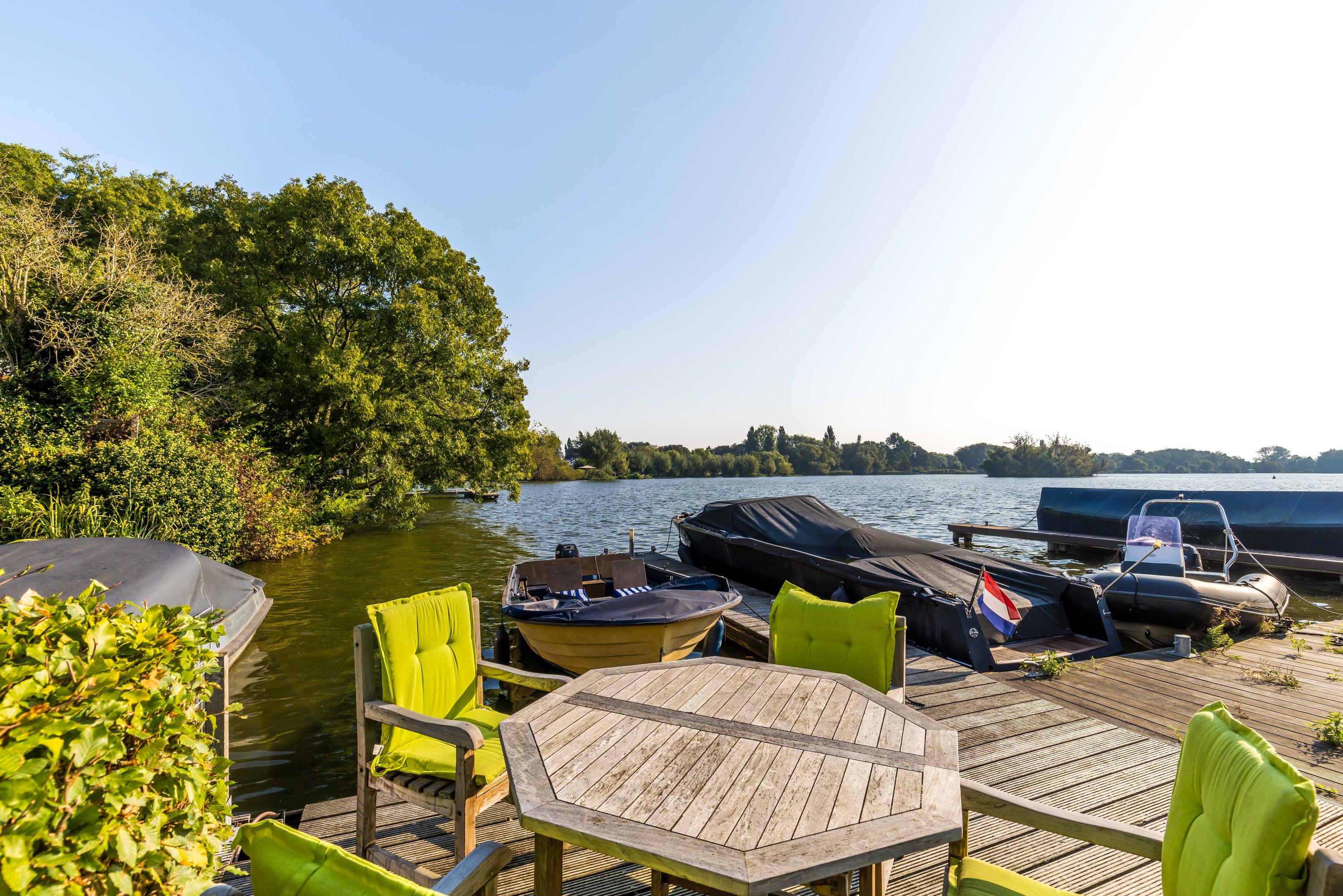 ground floor: entrance, vestibule with original marble wainscoting, granite floor and stained glass windows and draught door, hall with staircase, extra spacious toilet with toilet and washbasin, double doors to the living room and kitchen, originally the kitchen was at the rear, but now the open kitchen is at the front, which gives the extended living room a width of almost 6 meters over the entire width of the house, the living room has a well-positioned gas fireplace that you can sit around. By means of 2 Sola tubes, a surprising amount of extra daylight enters the living room. From the living room, patio doors give access to the terrace and the back garden (also largely piled) with, among other things, a terrace/deck on the water where you can relax. There is room for 1 sloop/boat at the jetty.