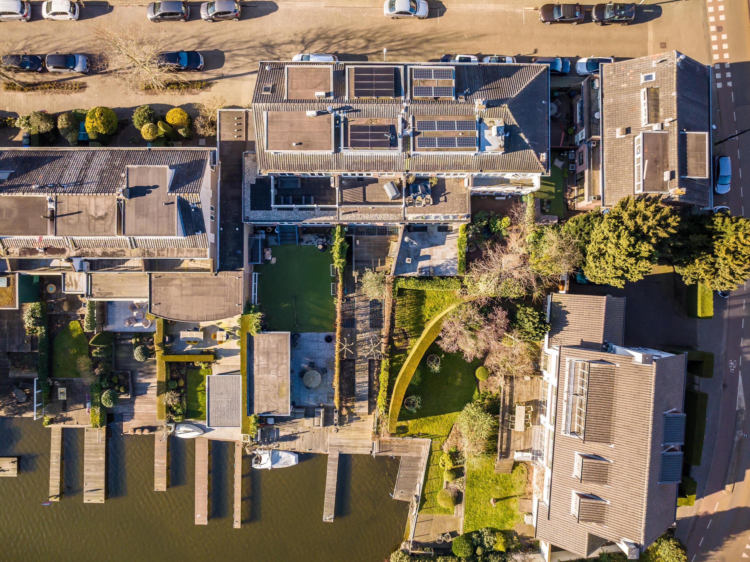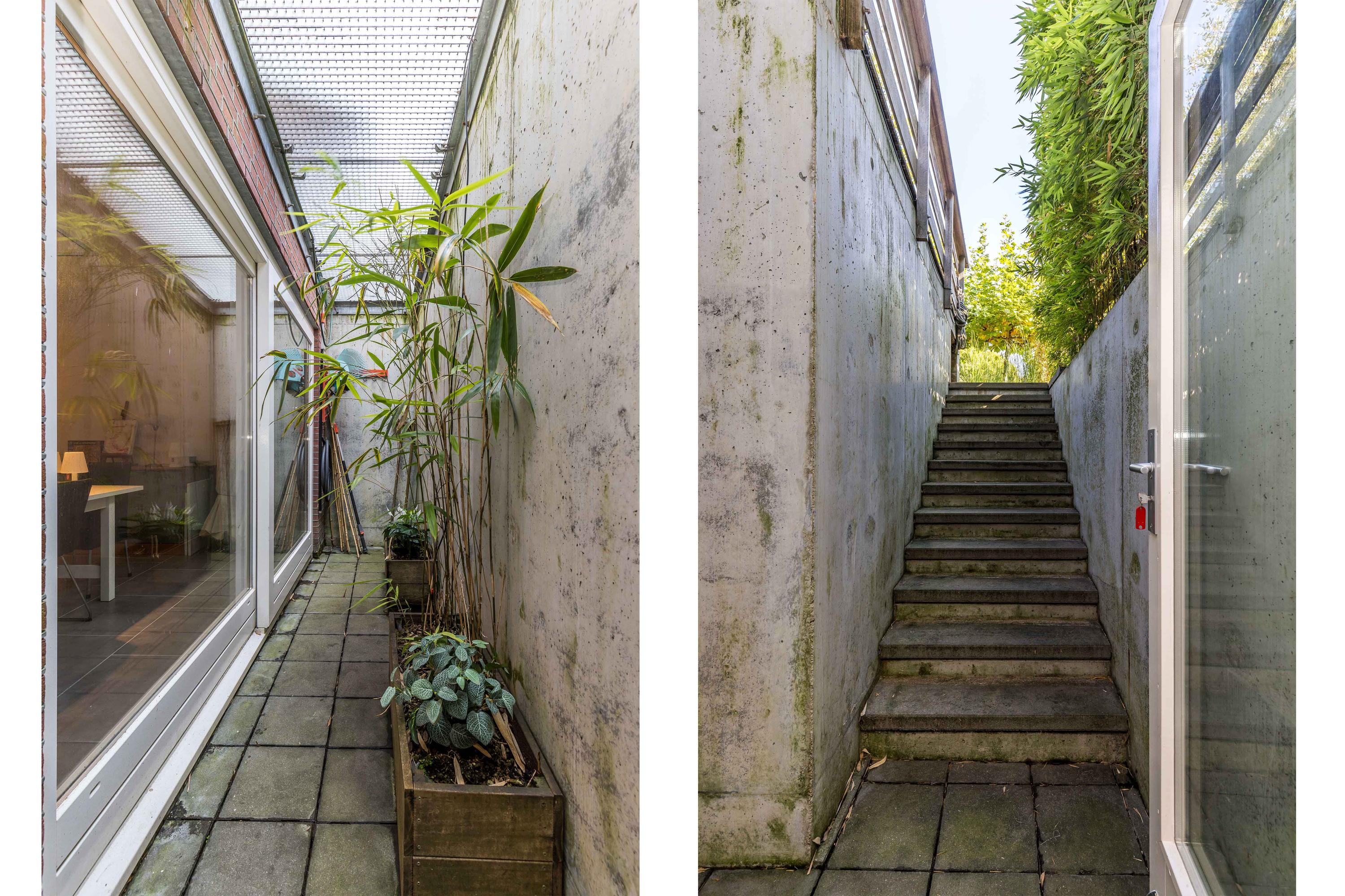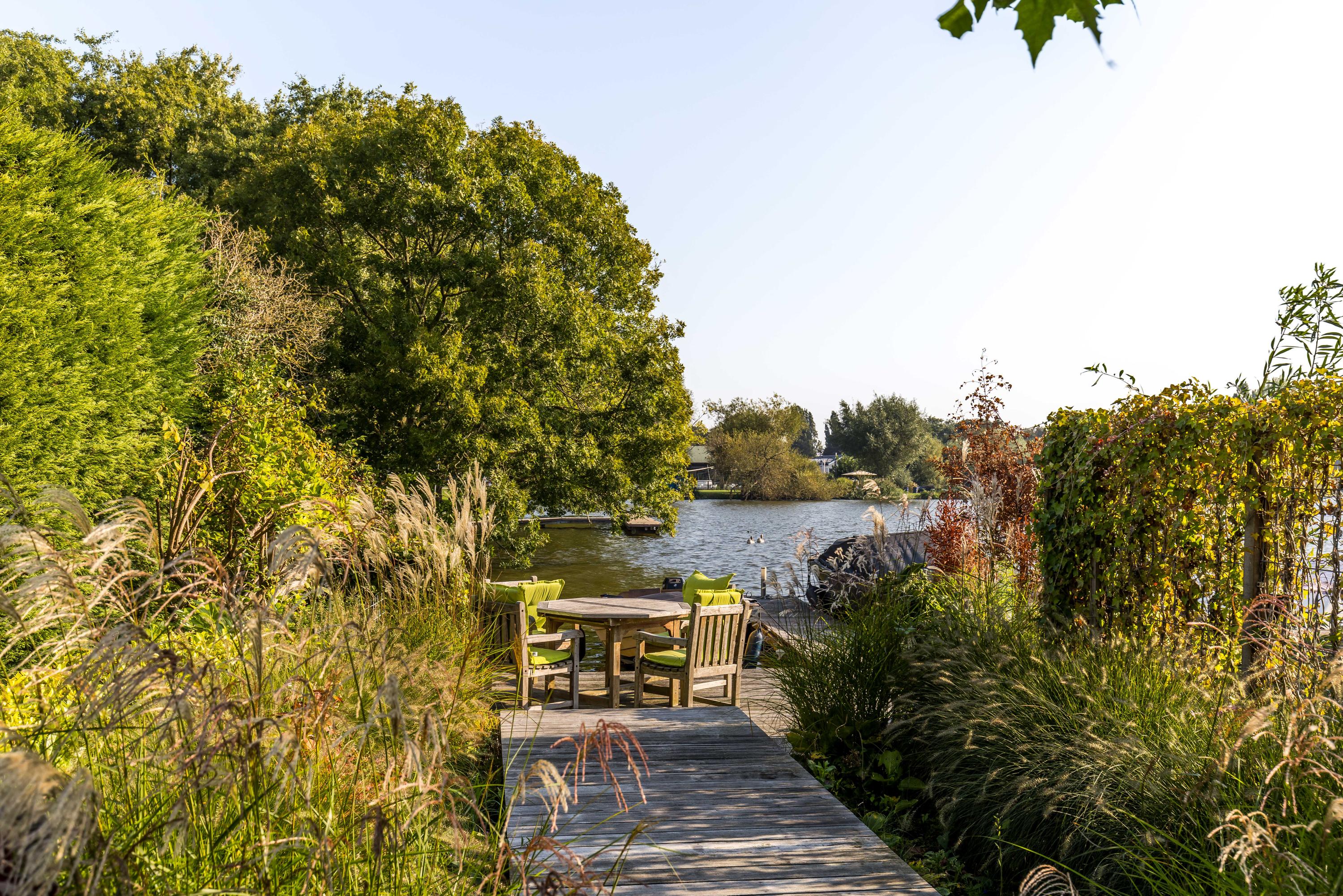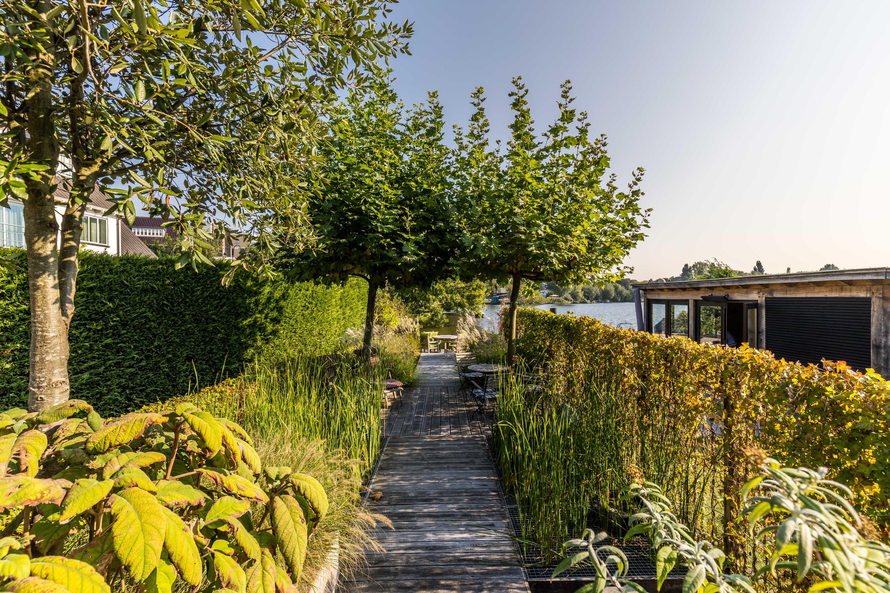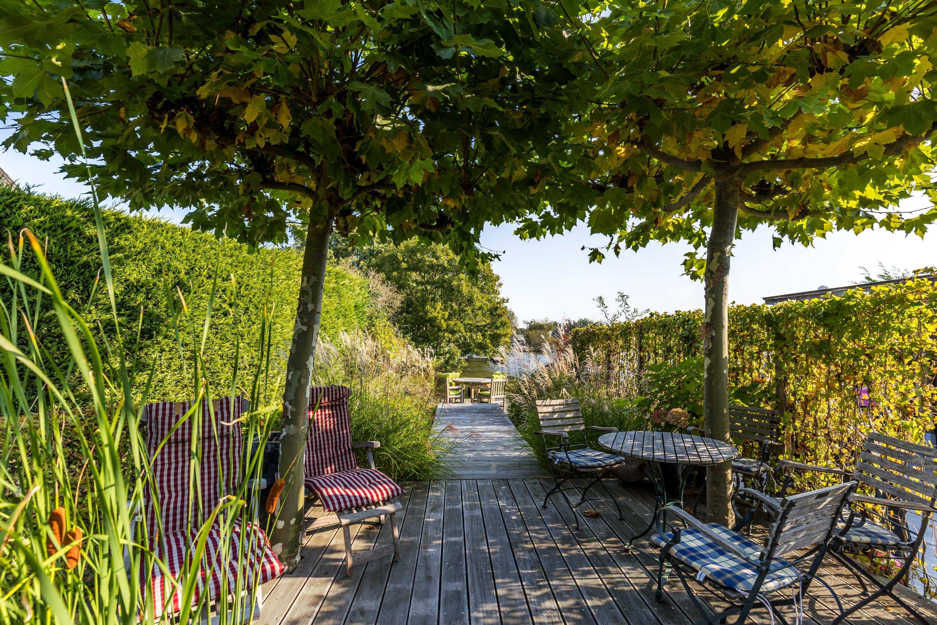 Back garden: located on the northeast, but due to the depth of over 20 meters from the extension on the ground floor, the garden offers sun for the majority of the day. The back garden tapers somewhat, starts at the house with a width of approx. 6 meters and at the waterfront approx. 3 meters.
