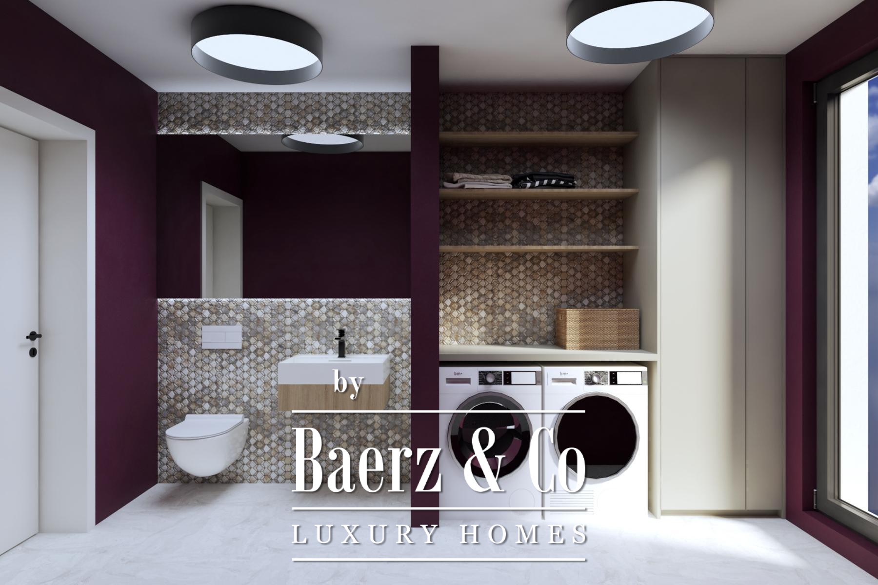 The interior layout reveals a thoughtful open-plan living, kitchen and dining area, anchored by premium Italian ceramics from Marca Corona and Hans Grohe sanitary ware. The two bedrooms provide tranquil retreat, while a guest toilet with laundry space, elegant bathroom, and a covered loggia of 7 m² enhance the spatial rhythm. Upstairs, a private gym, sauna and an expansive 30 m² uncovered terrace invite moments of both energy and repose.