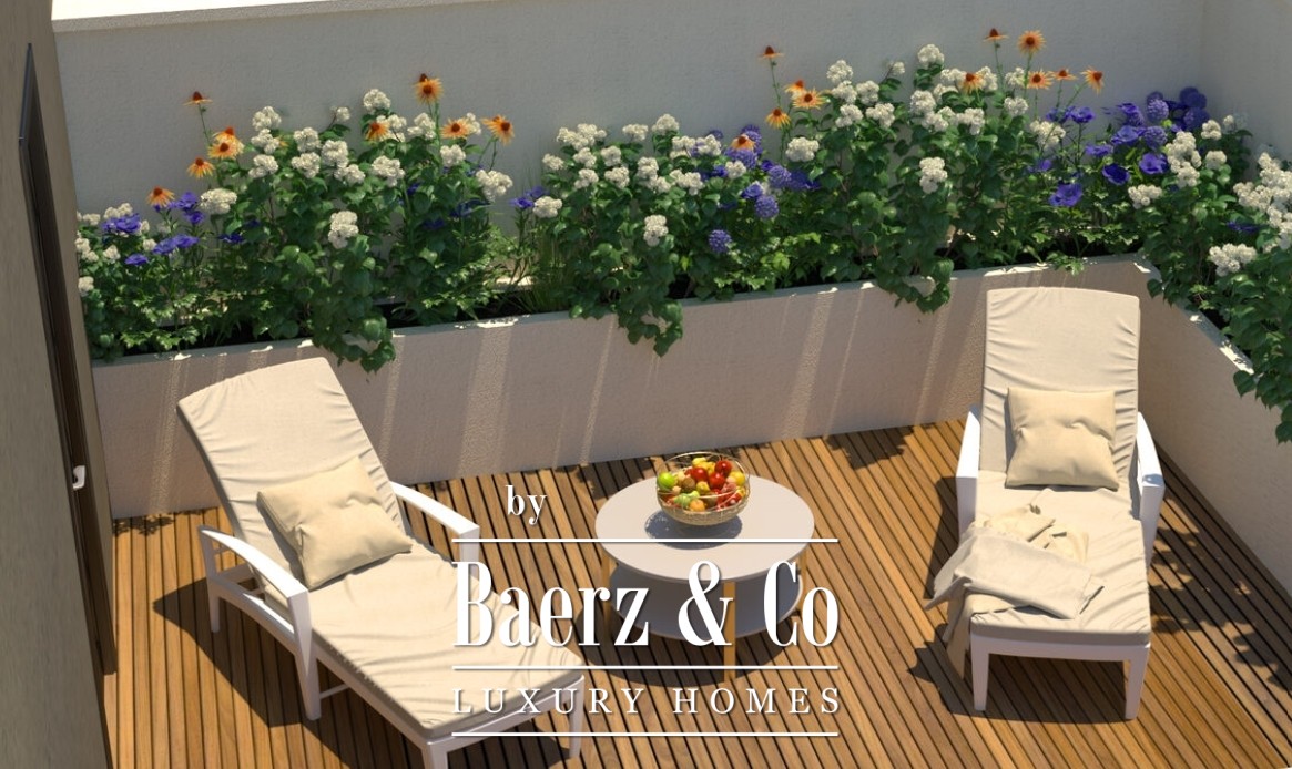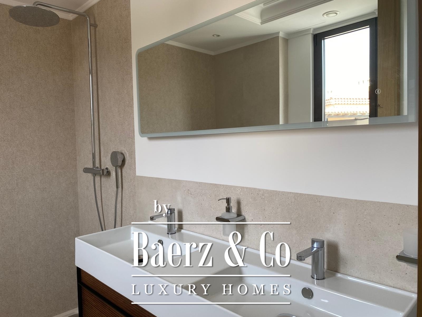 Light moves across the expansive 62 m² terrace and two rooftop solariums, each space shaped for quiet moments or select gatherings. A private elevator connects the enclosed garage to the solarium, emphasizing convenience and privacy. The heated infinity swimming pool with a counter-current system sets a tranquil tone, while the separate kitchen opens directly onto the terrace, blending interior and exterior living throughout the day.