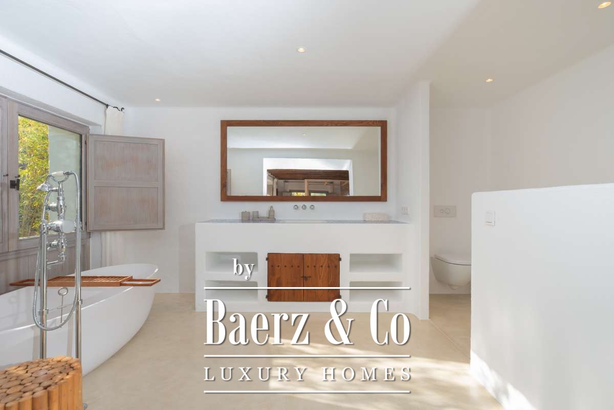 Originally an authentic finca extended in the 1940s, the house now offers 506 m² of living space divided between 361.7 m² on the ground floor and 144.64 m² above. Four bedrooms and five bathrooms have been thoughtfully renovated, each detail respecting the cubic architecture and rustic simplicity. Living areas blend seamlessly with garden terraces, encouraging an unhurried Mediterranean rhythm.