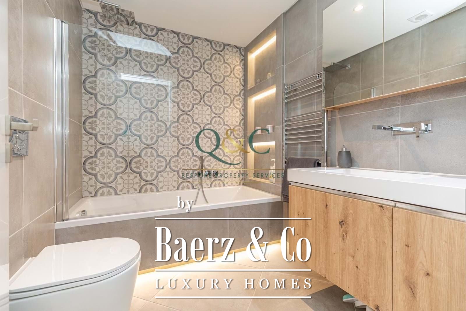 Leading off from this space you will find two double bedrooms with fitted wardrobes, both with beautifully designed en-suites (one with shower and one with bath/shower). Underfloor heating and concealed LED accent lighting completes the luxury feel.