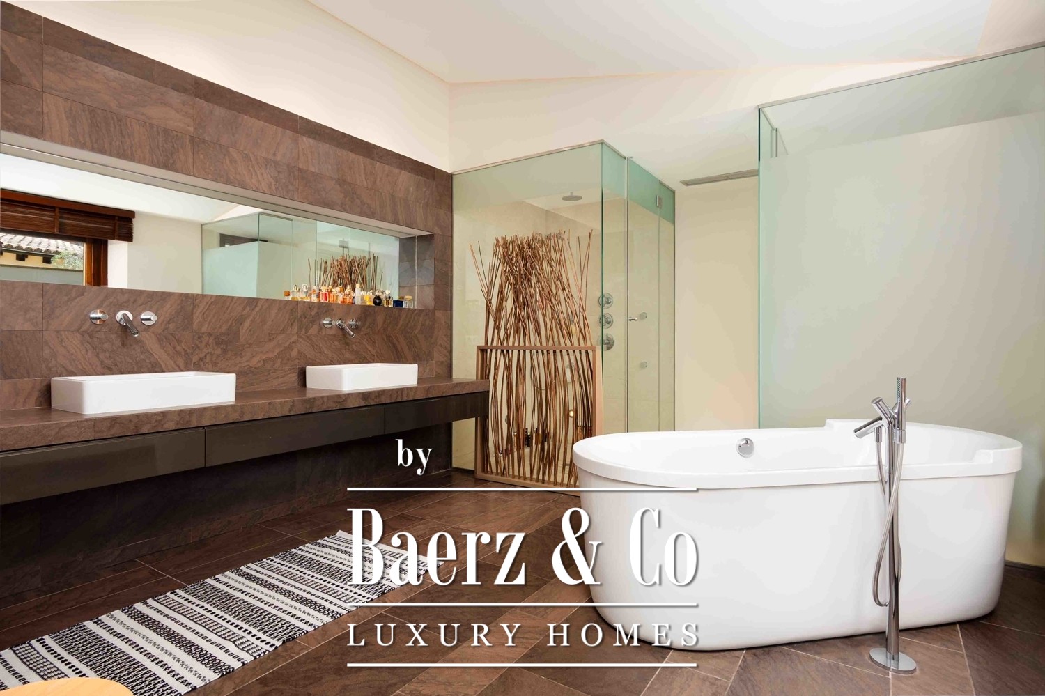 Within the main villa, four bedrooms are tailored for quietude and rest, each with a design that seamlessly connects to the surrounding natural beauty. The living areas flow towards a resort-style pool, framed by an elegant terrace with a BBQ and lounge area offering understated spaces for alfresco gatherings. The estate’s 4,433 m² grounds provide a sense of space and calm that is increasingly rare.