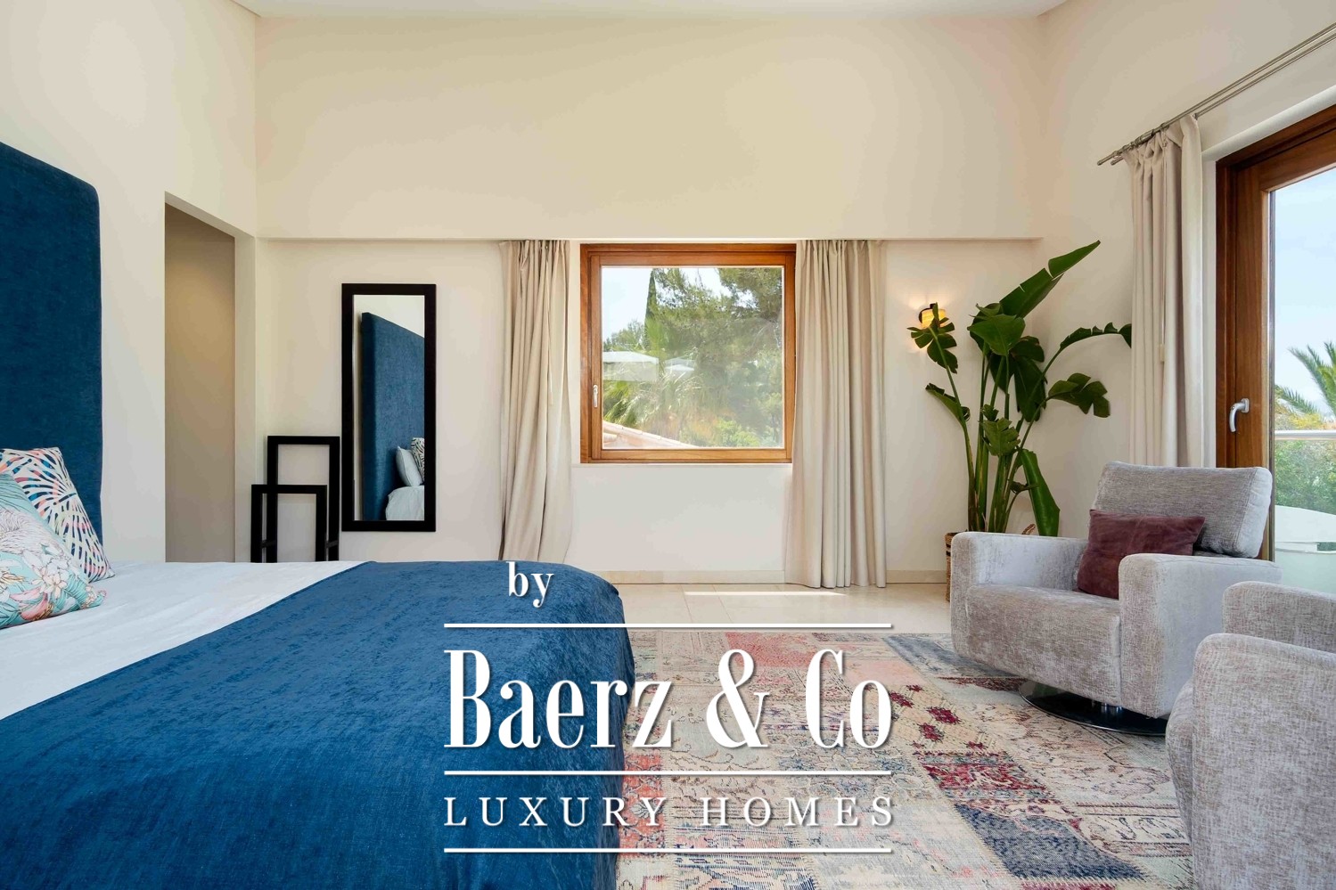 A fully independent guest house with two bedrooms and two bathrooms delivers complete privacy and comfort, ideal for hosting friends or family. Plans allow for further customization, with space to create a cinema, gym, spa, or bespoke wellness retreat. Eight bathrooms and amenities such as air conditioning contribute to ease and comfort throughout. This luxury villa for sale in Santa Ponça is an address where privacy, quality, and timeless design are woven into every detail.