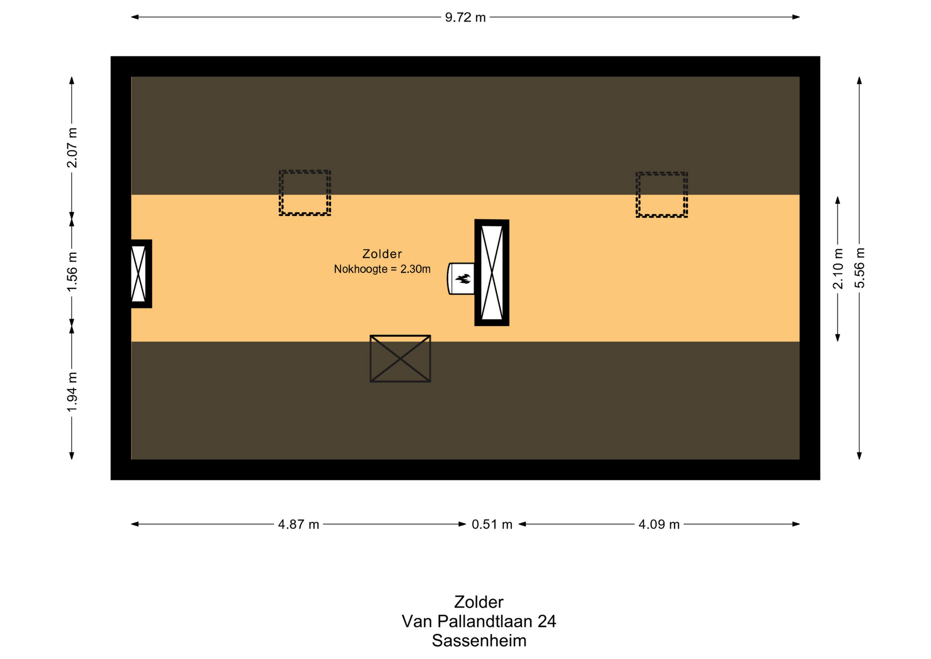 Spacious landing with 2 bedrooms located at the rear, both bedrooms are approx 15m². The master bedroom has an ensuite bathroom with shower, toilet and washbasin. The other bedroom has a lovely balcony facing southwest. The second bathroom is accessible from the landing and has a bathtub, toilet, washbasin and shower. The attic is accessible by means of a loft ladder. Because of the ridge height of 2.3m there are possibilities to create an additional bedroom here in the future.