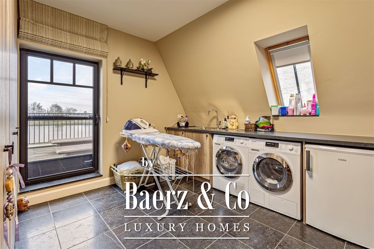 The full basement offers versatile space for leisure, craft, fitness, or a wine cellar. Large terraces at both the kitchen and upper levels seamlessly connect indoor life with the tranquil outdoor setting. Direct canal access invites morning walks and quiet reflection. With low energy consumption and a focus on timeless quality, this residence articulates a discrete yet enriching pace of life in the heart of Belgium.