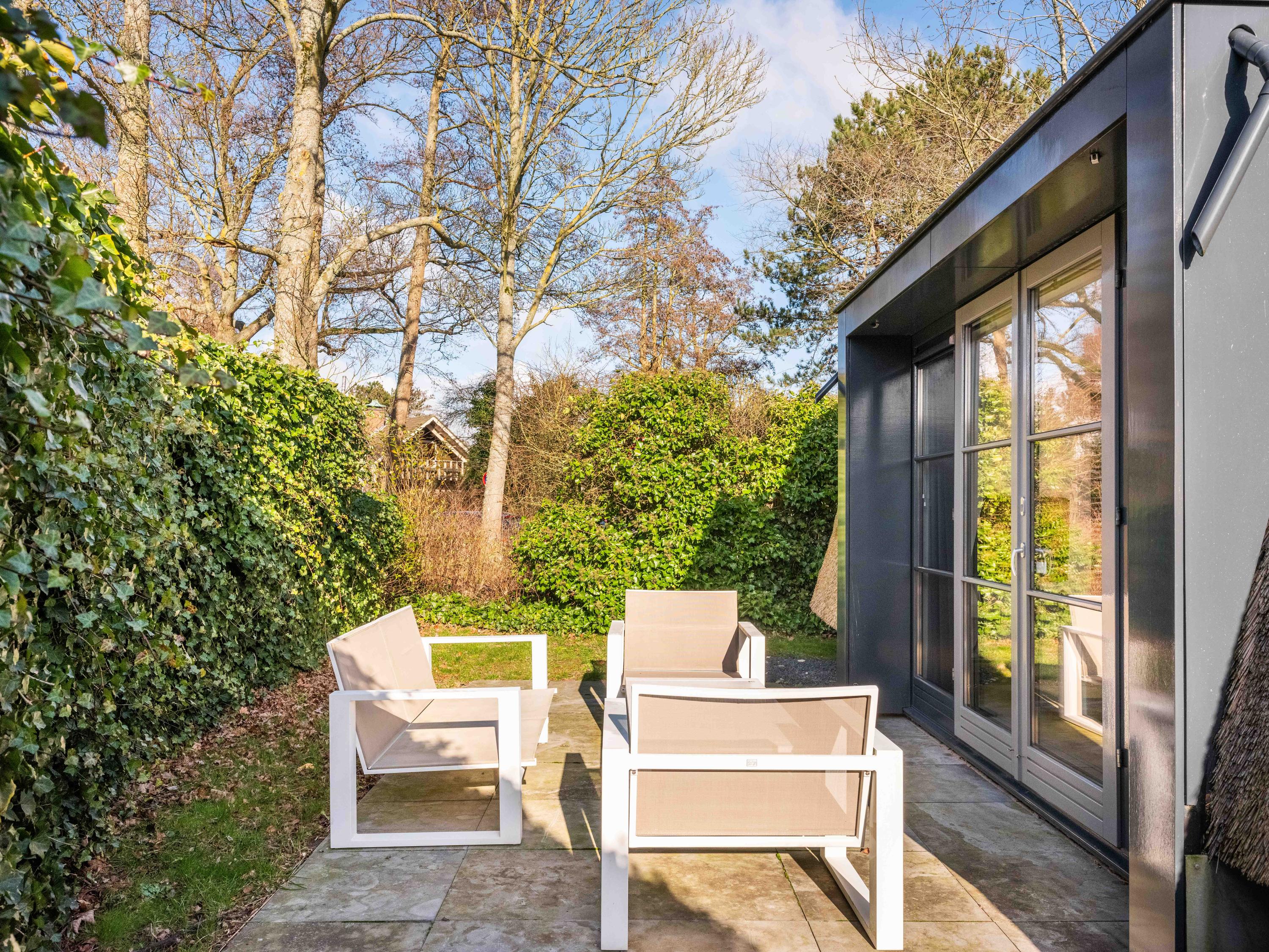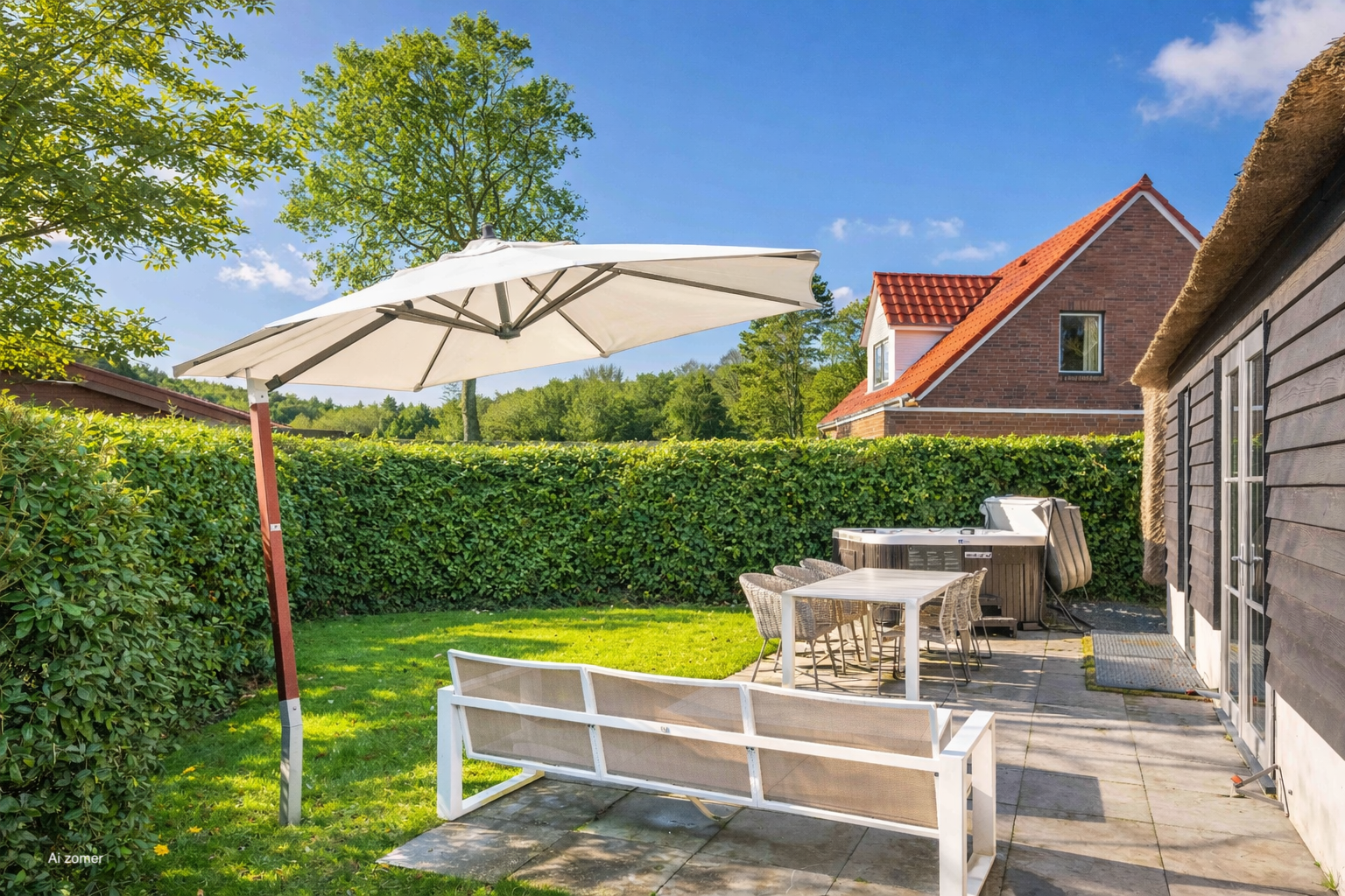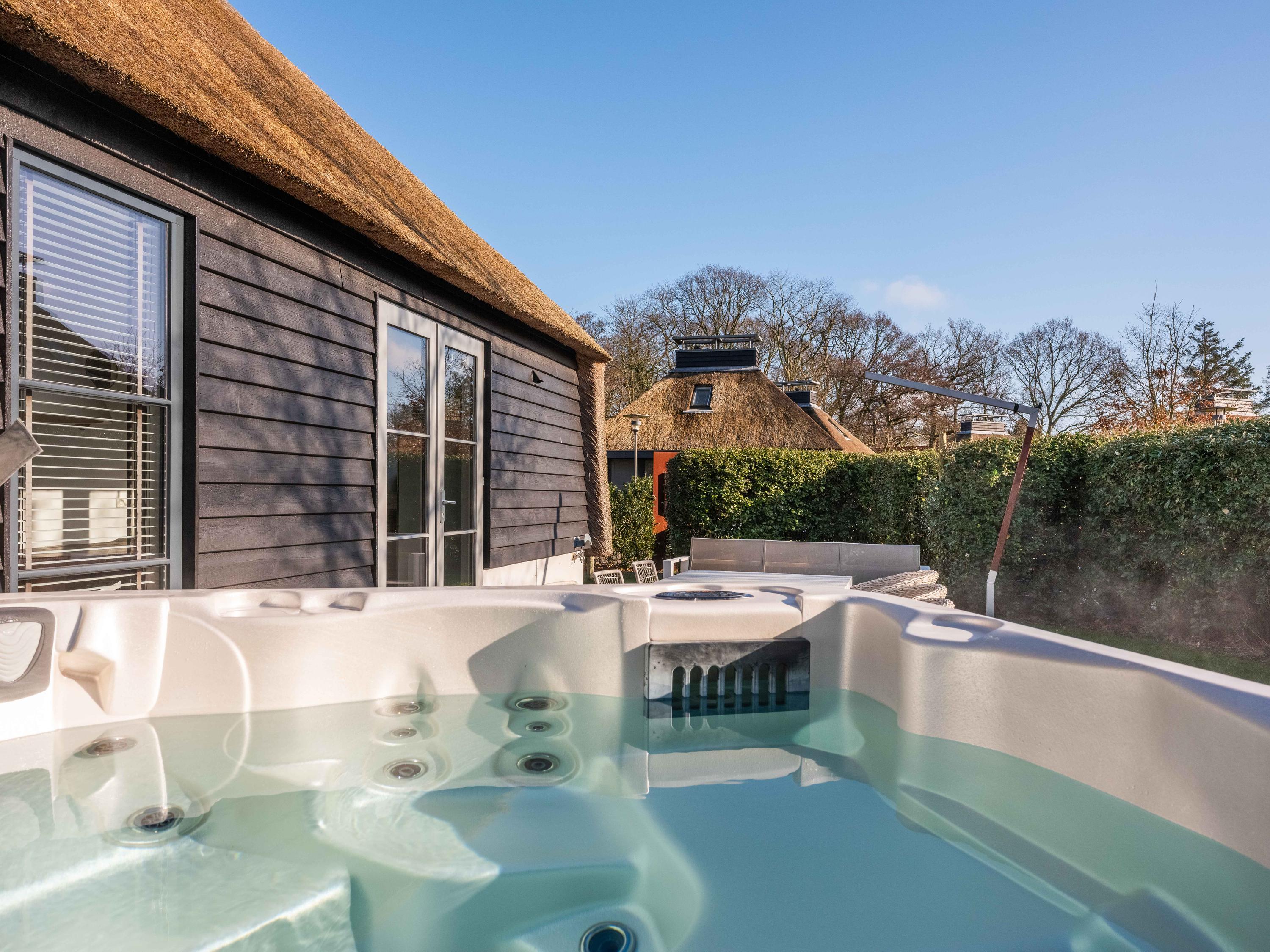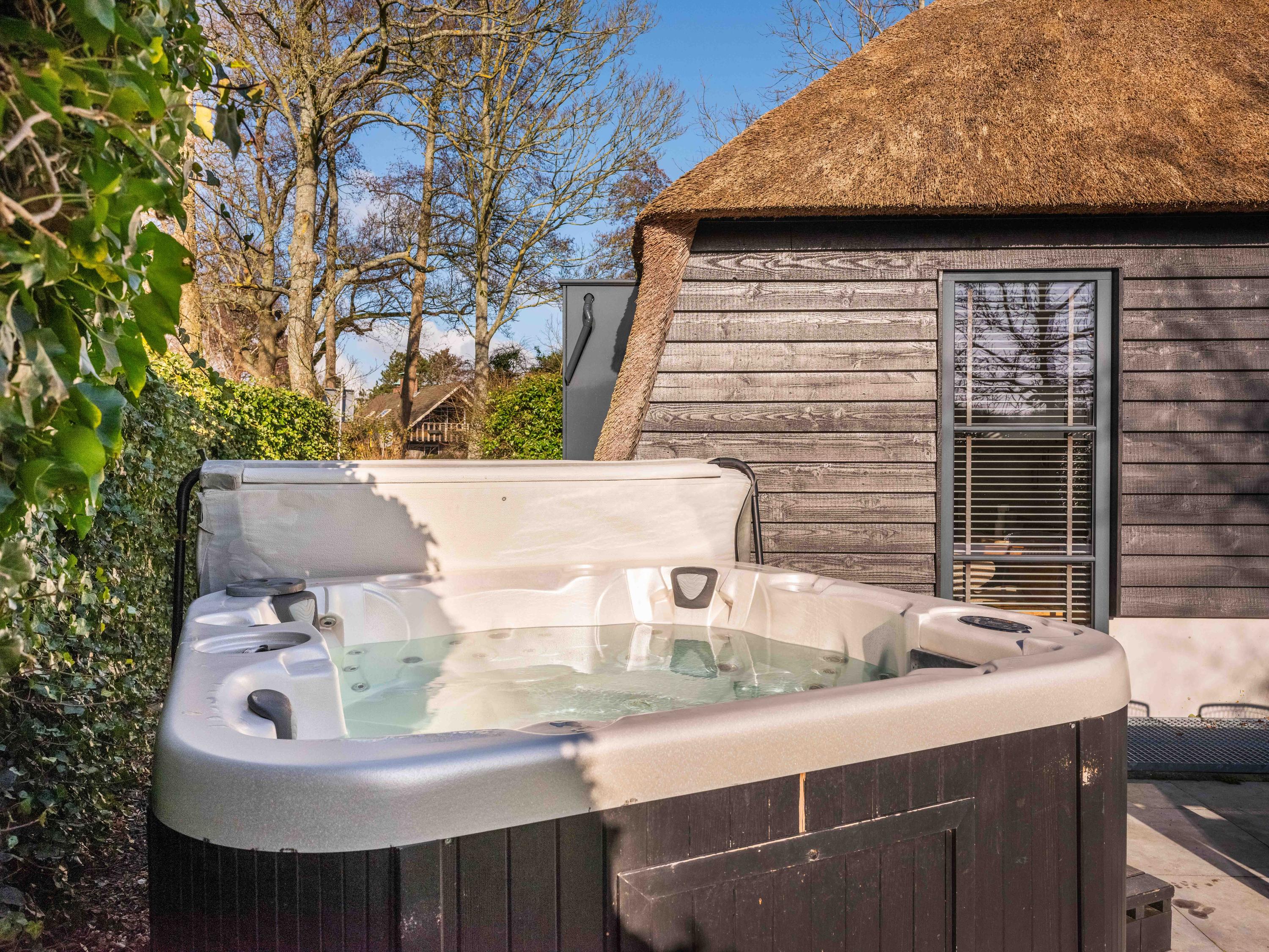De tuin is heerlijk groen en biedt veel privacy. Hier vindt u een jacuzzi en zowel aan de voor- als achterzijde een terras. Daarnaast is er een eigen parkeerplaats met een laadpaal.