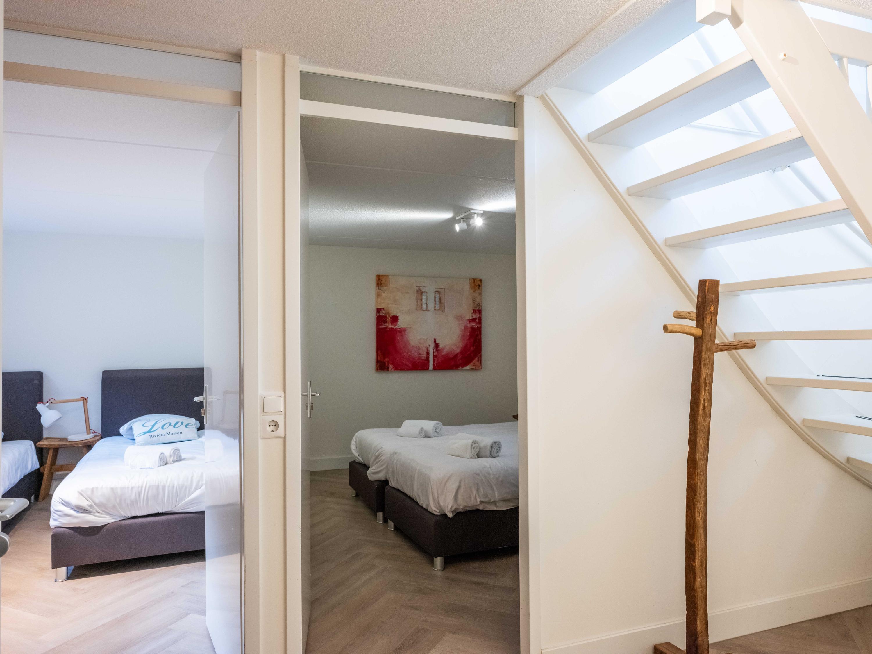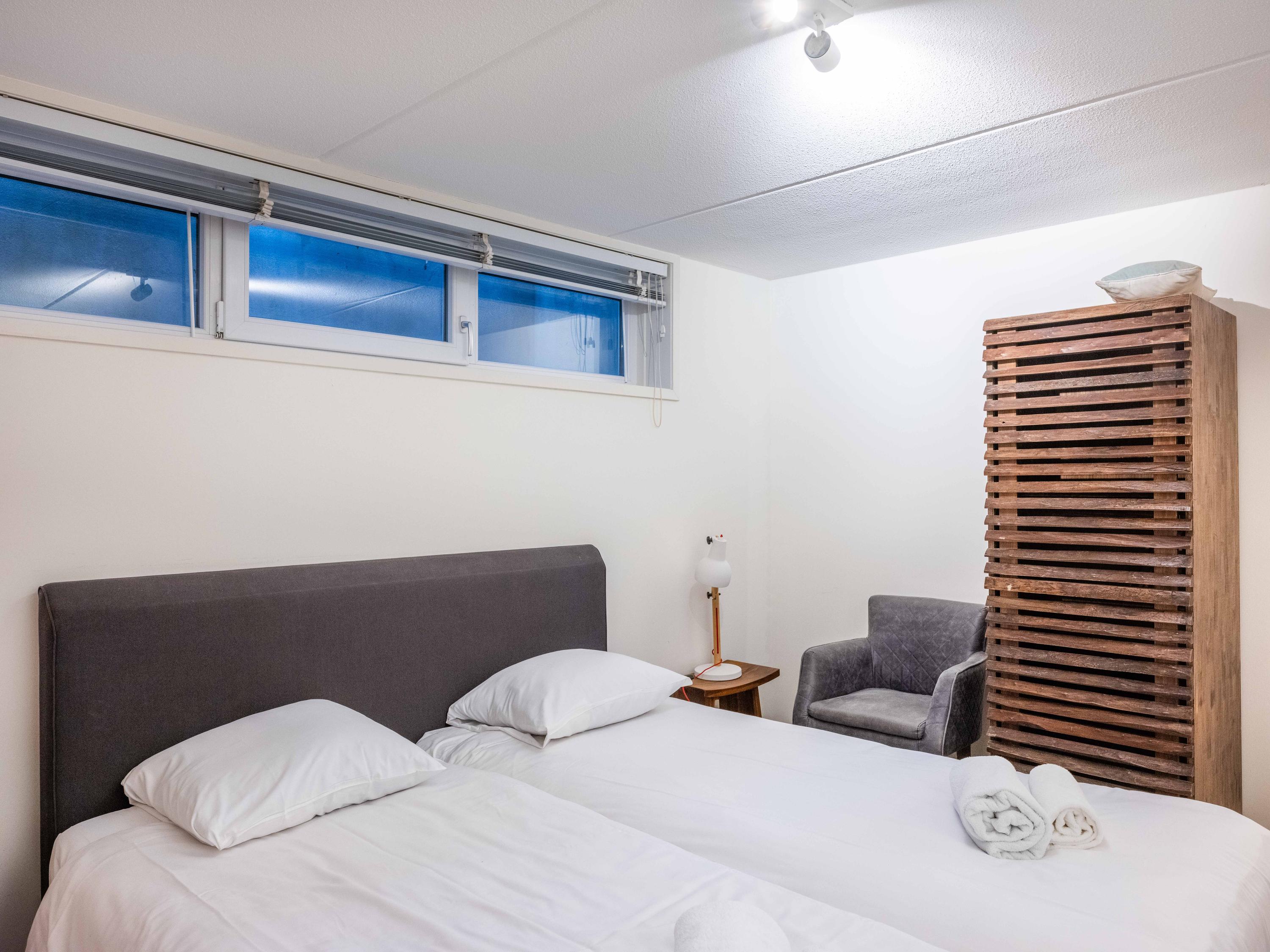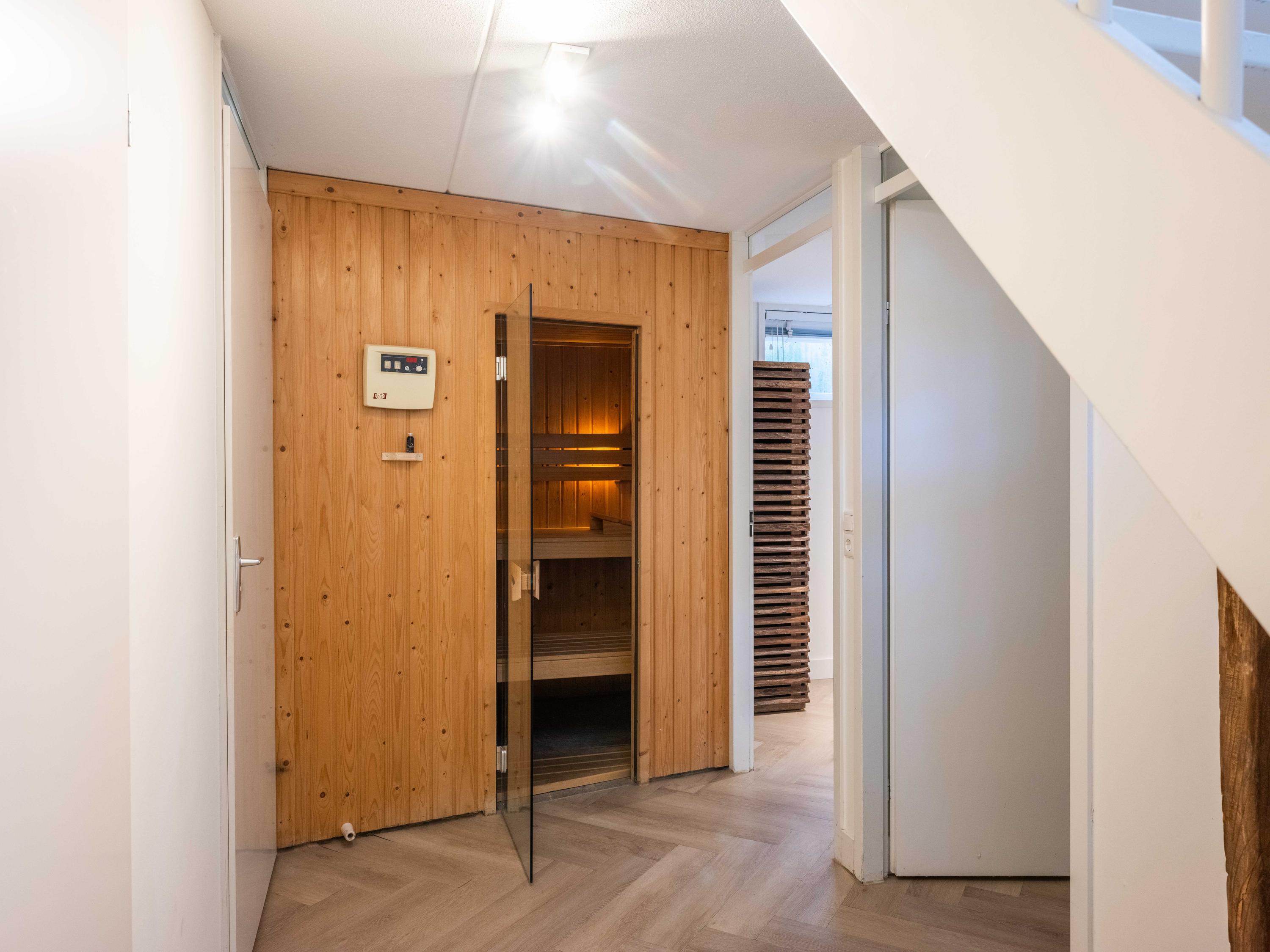 De benedenverdieping beschikt over twee slaapkamers, een heerlijke sauna en een badkamer met een ligbad, een douche en een brede wastafel.