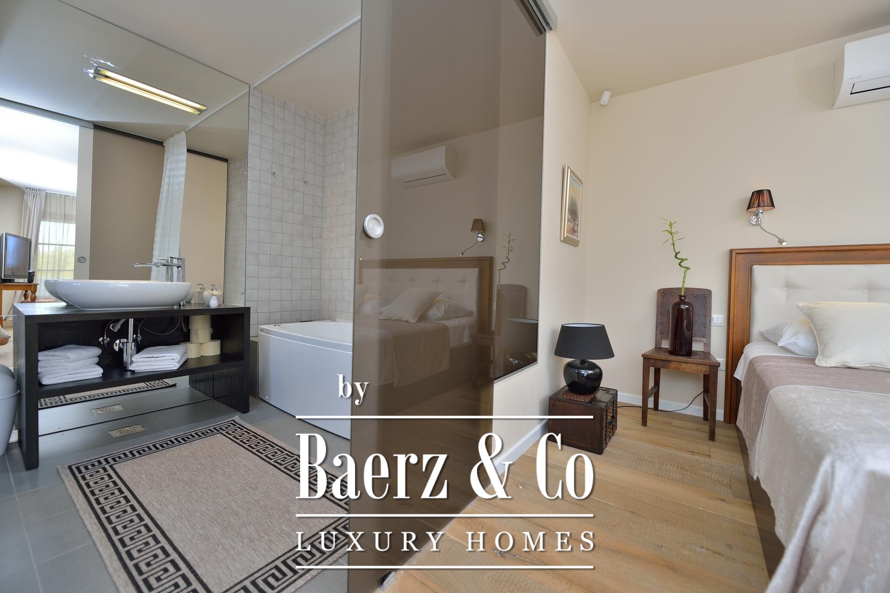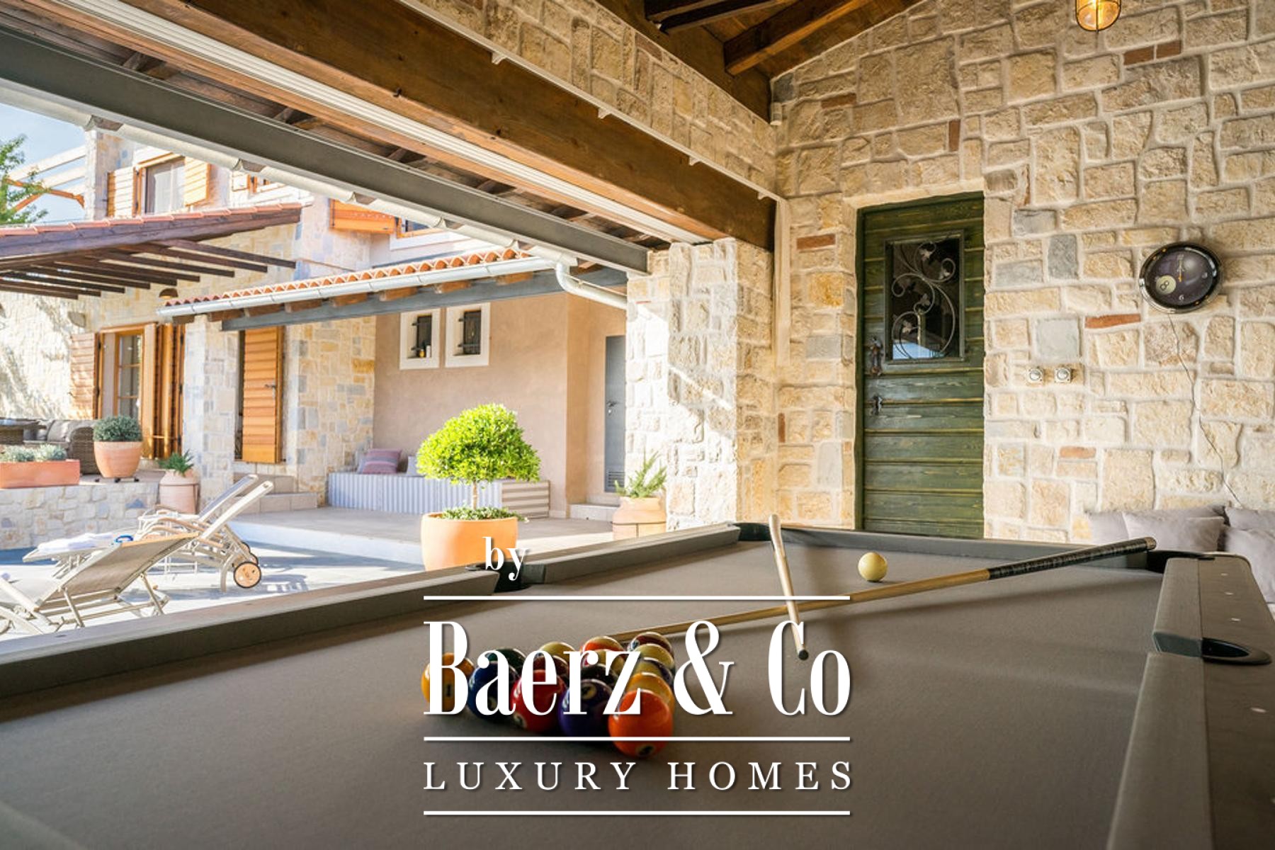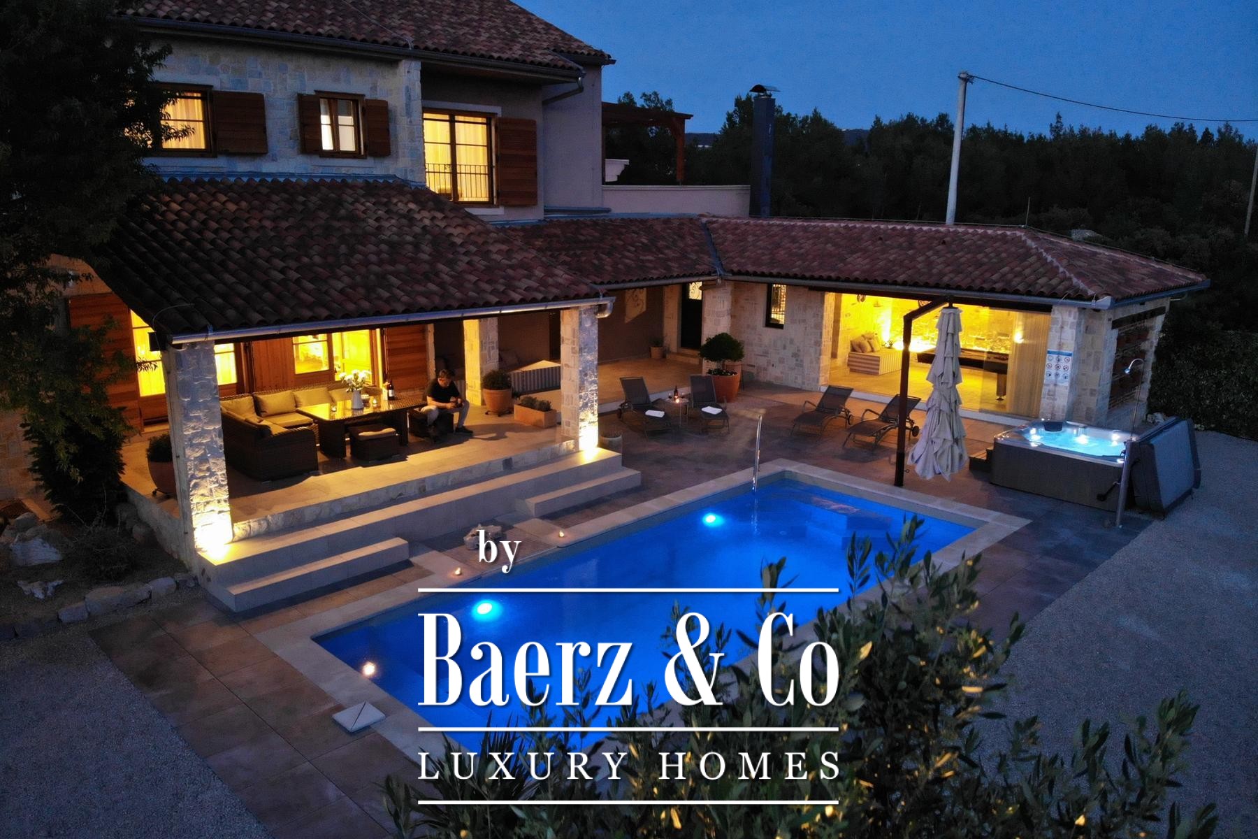 Beyond the villa, a tavern with fireplace, a glass-walled games room opening toward the pool, and a sports court set the rhythm for gatherings and leisure. Every room includes air conditioning, while bathrooms feature underfloor heating. The equipment list includes high-end appliances, video surveillance and a sound system. With only 150 meters to the sea, this stone villa Šibenik promises a discreet lifestyle anchored by privacy, quality and the enduring allure of Mediterranean living.