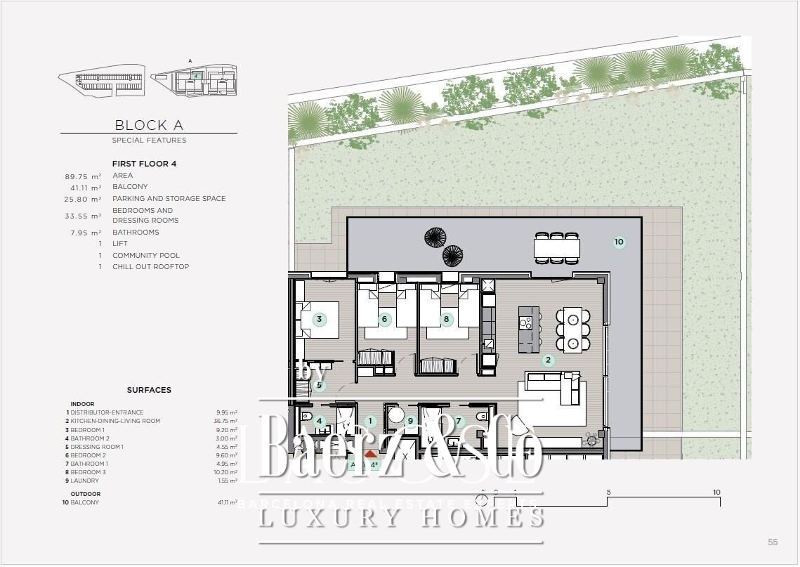 Private terraces and landscaped gardens invite easy outdoor living, complemented by a saltwater pool for contemplative afternoons. The apartment meets Spain’s highest building codes, with LED lighting, acoustic insulation, and crafted finishes ensuring longevity and a timeless aesthetic. For those seeking a luxury apartment for sale in Sitges, this residence offers a harmonious blend of modern design, Mediterranean light, and discreet, sustainable living.