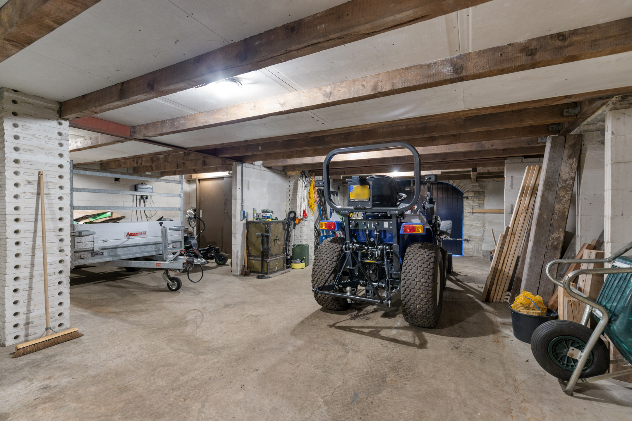 The basement is accessible via the staircase from the living room. The hall provides access to a large storage space where all technical installations are easily accessible. Laundry facilities can also be placed here.