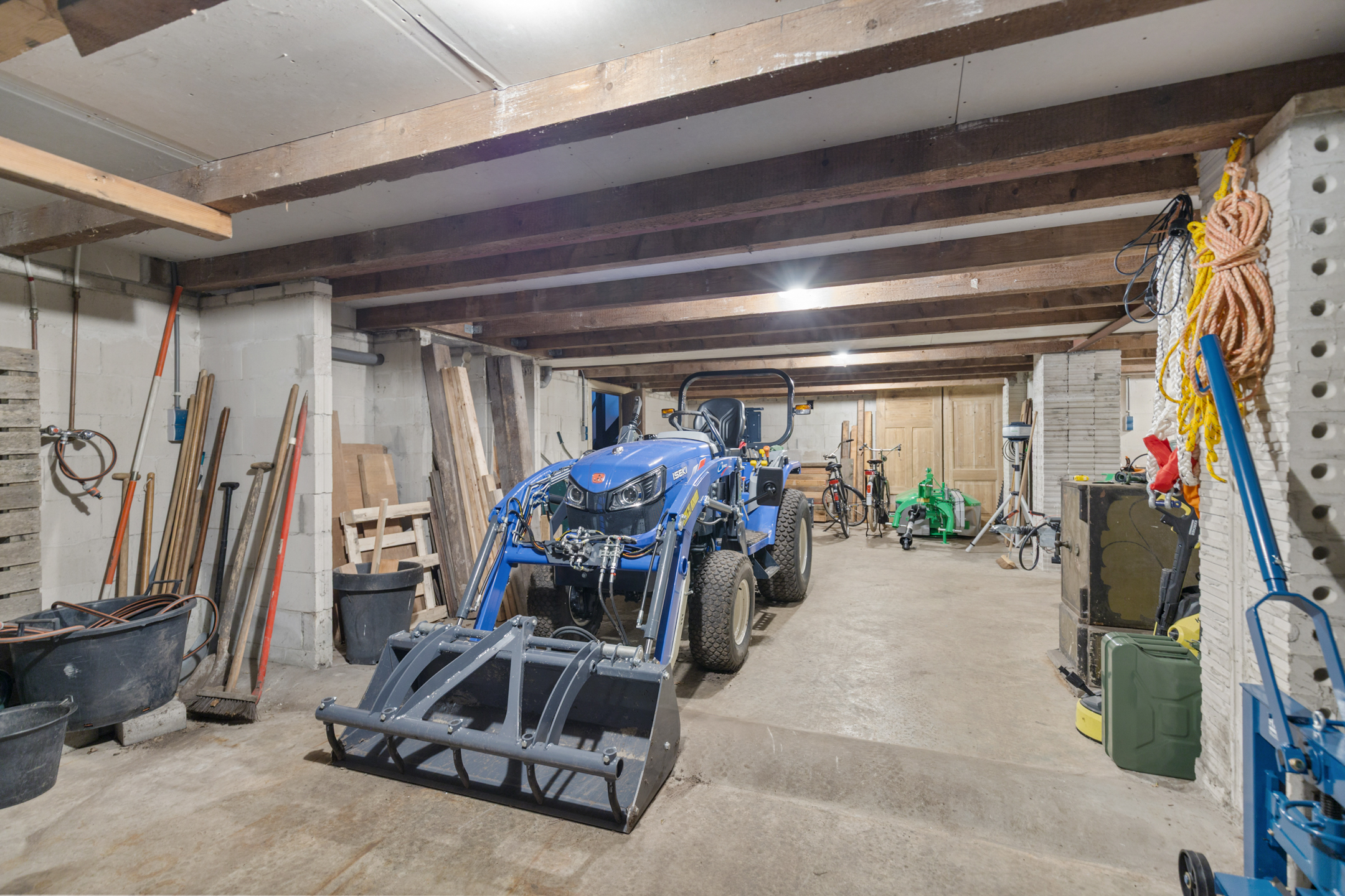 Currently it is used as a woodworking studio. The building is fully basemented and offers straightforward connection to the sewage system. Electricity and a new pellet stove are already installed, while a water connection can easily be realised via the existing PVC conduit to the main house.