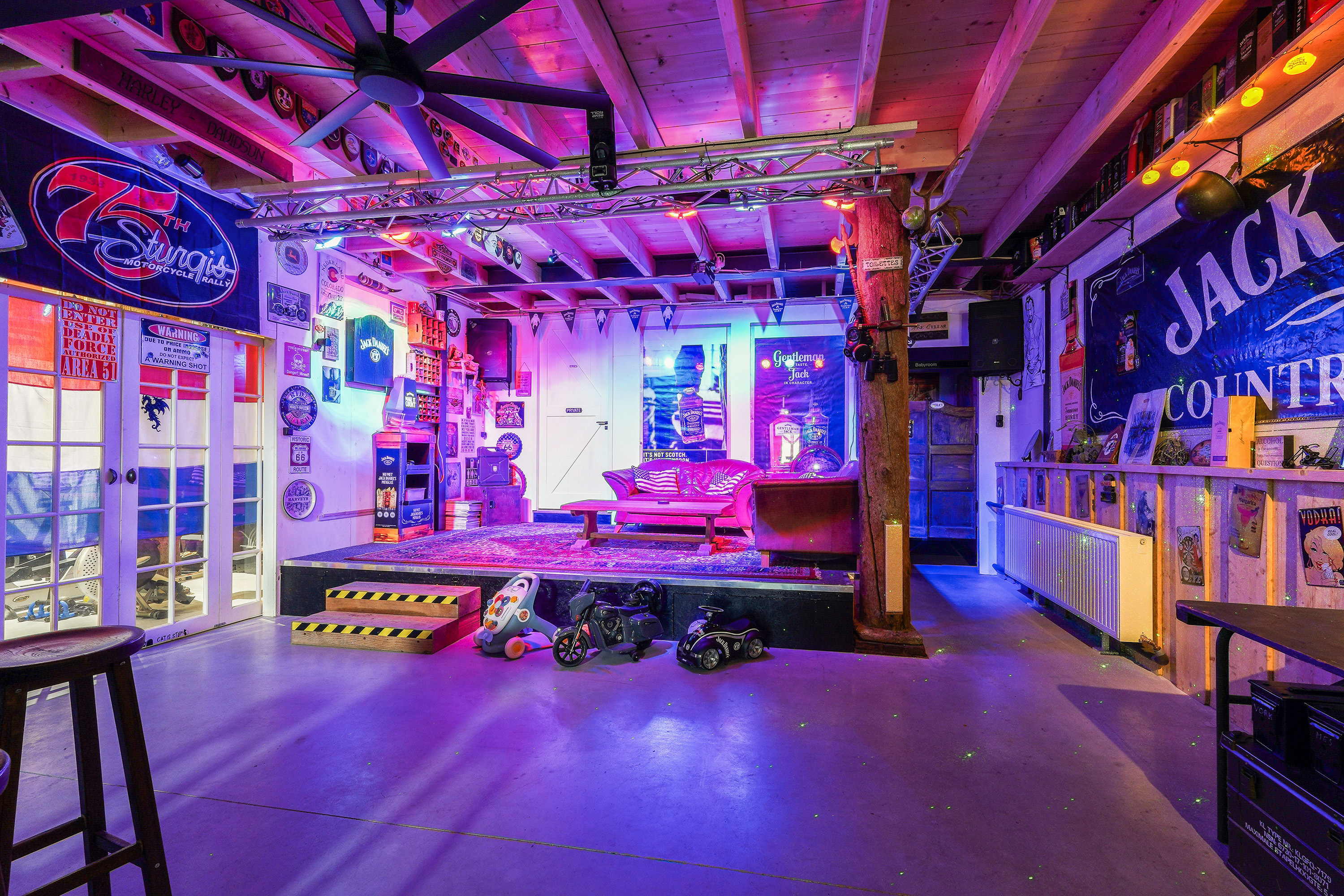 And then… accessible via the utility room, the garage or the veranda at the rear… the bar. Fully equipped with refrigeration units, its own restroom with toilet and urinal, and an impressive mezzanine reaching up to the roof ridge. Even from the attic level you can look down into the bar. This is a space that must be experienced.
