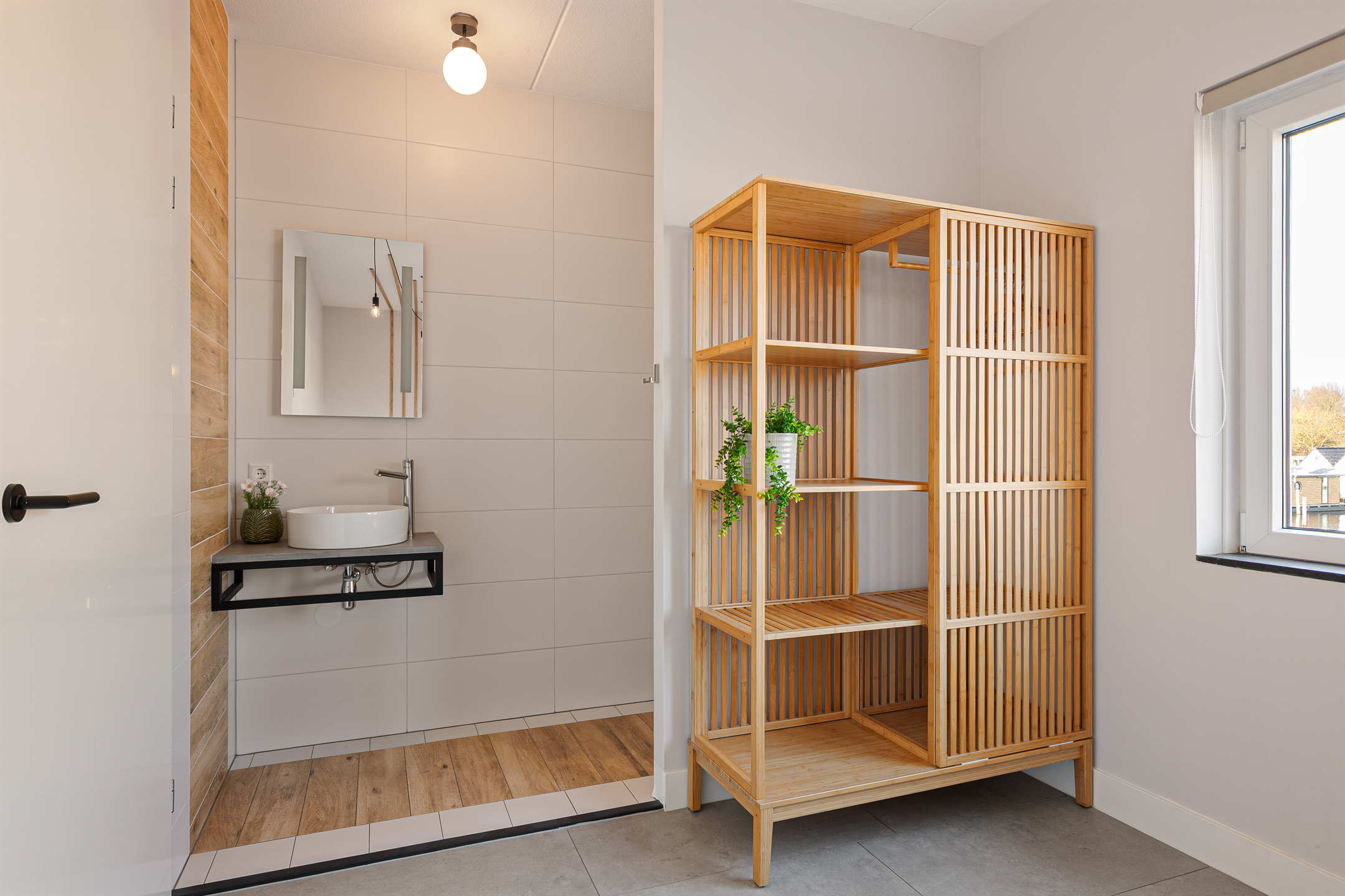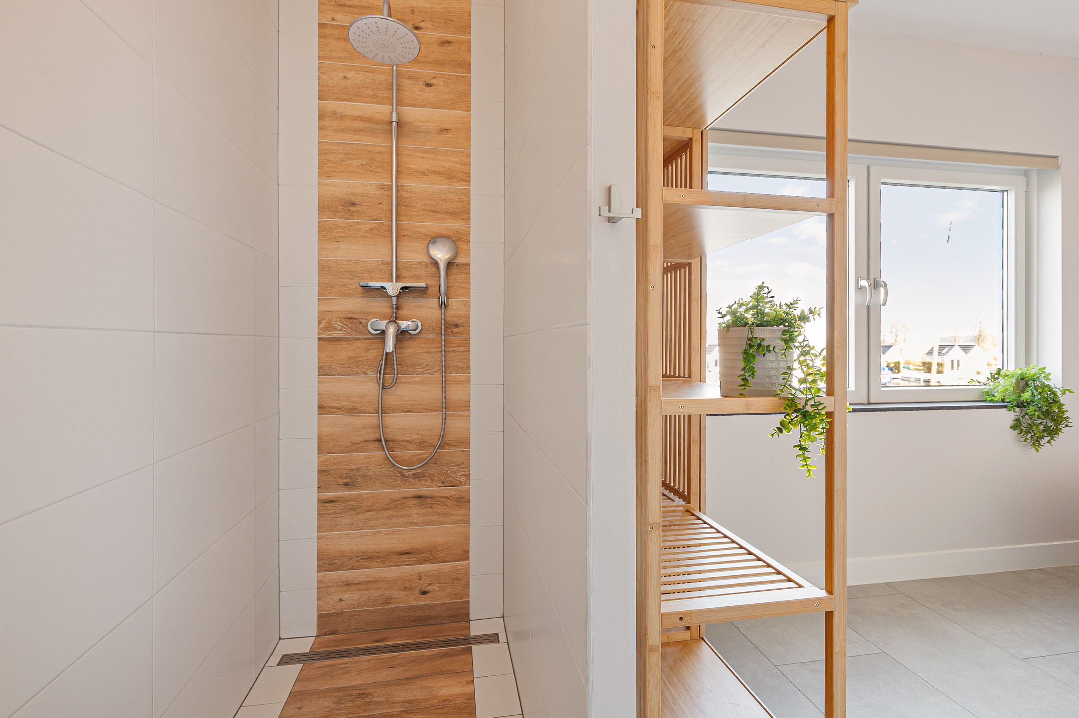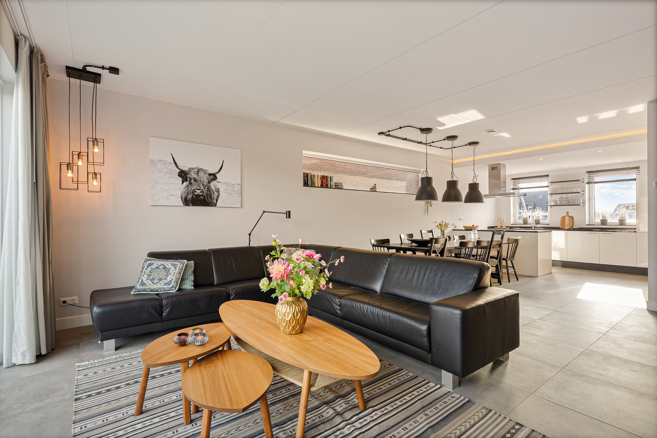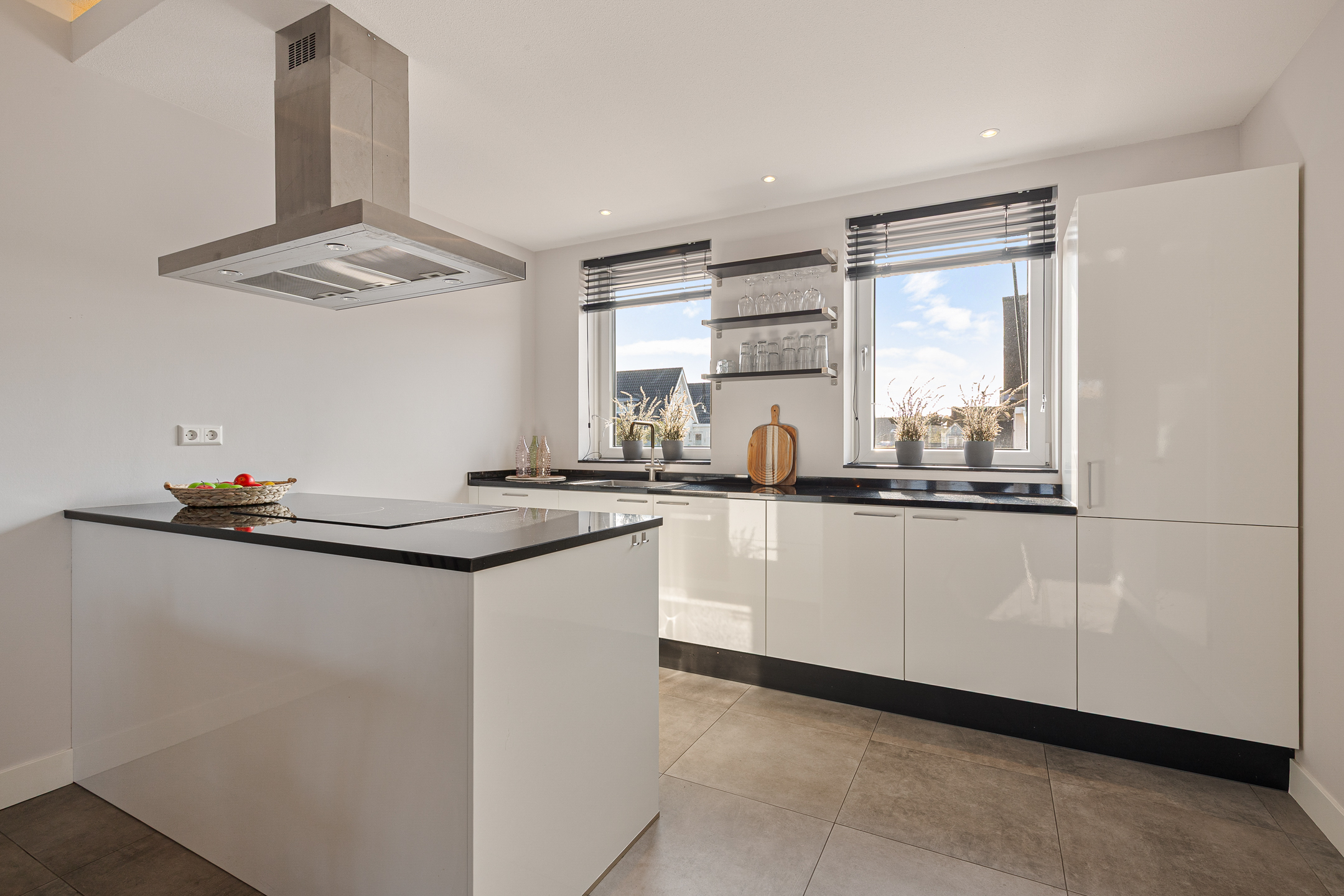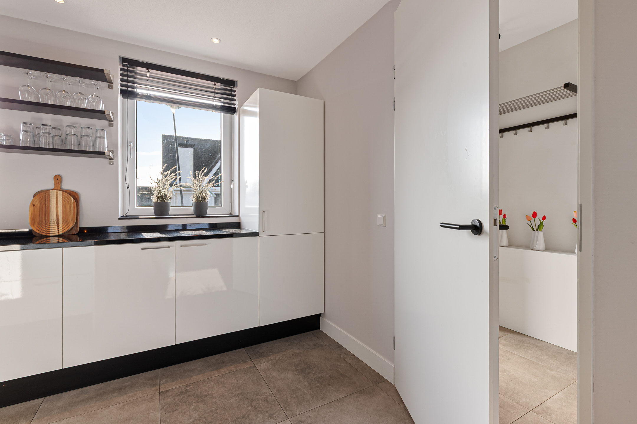 De gehele begane grond is voorzien van een stijlvolle tegelvloer met comfortabele vloerverwarming.