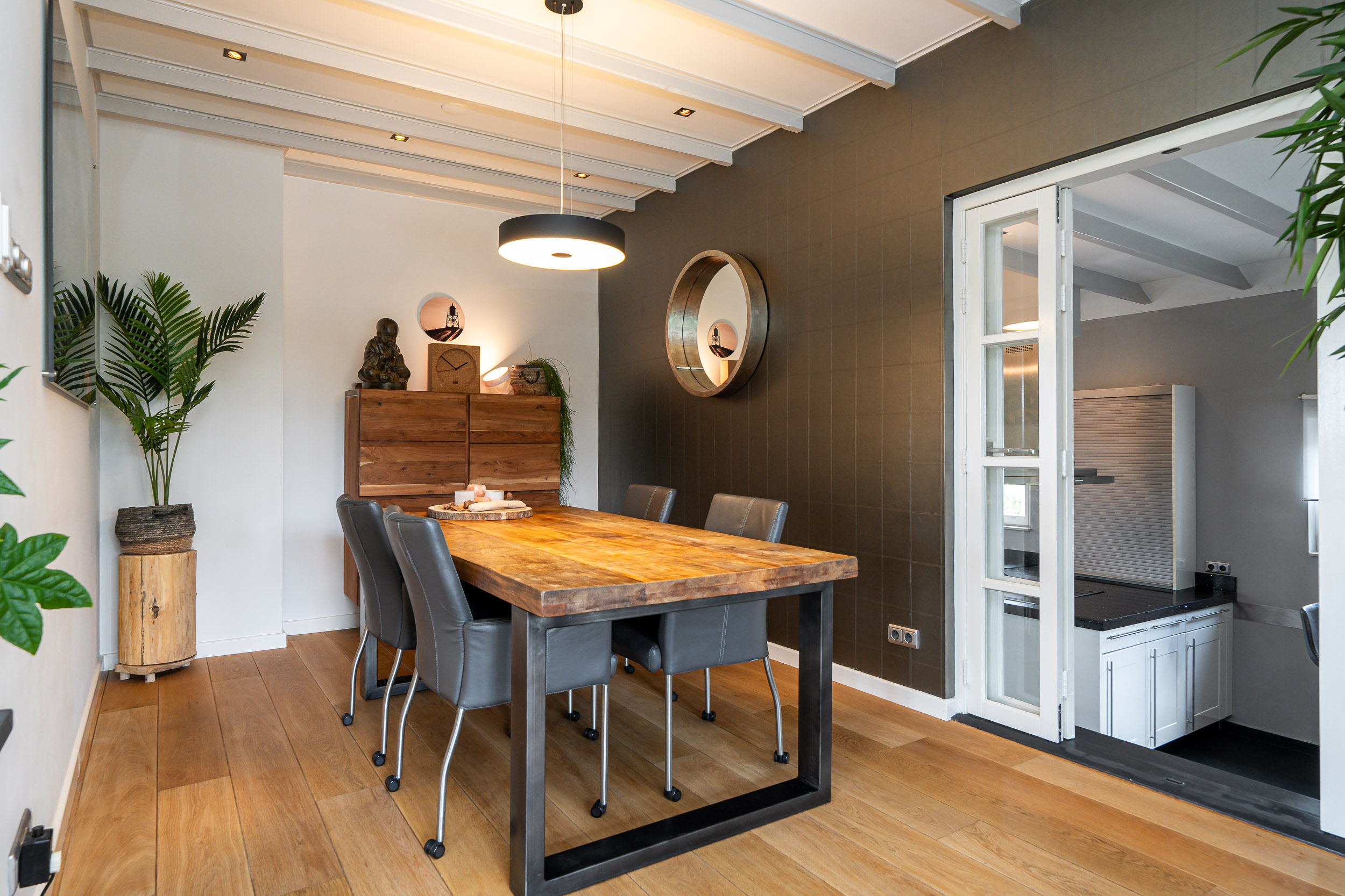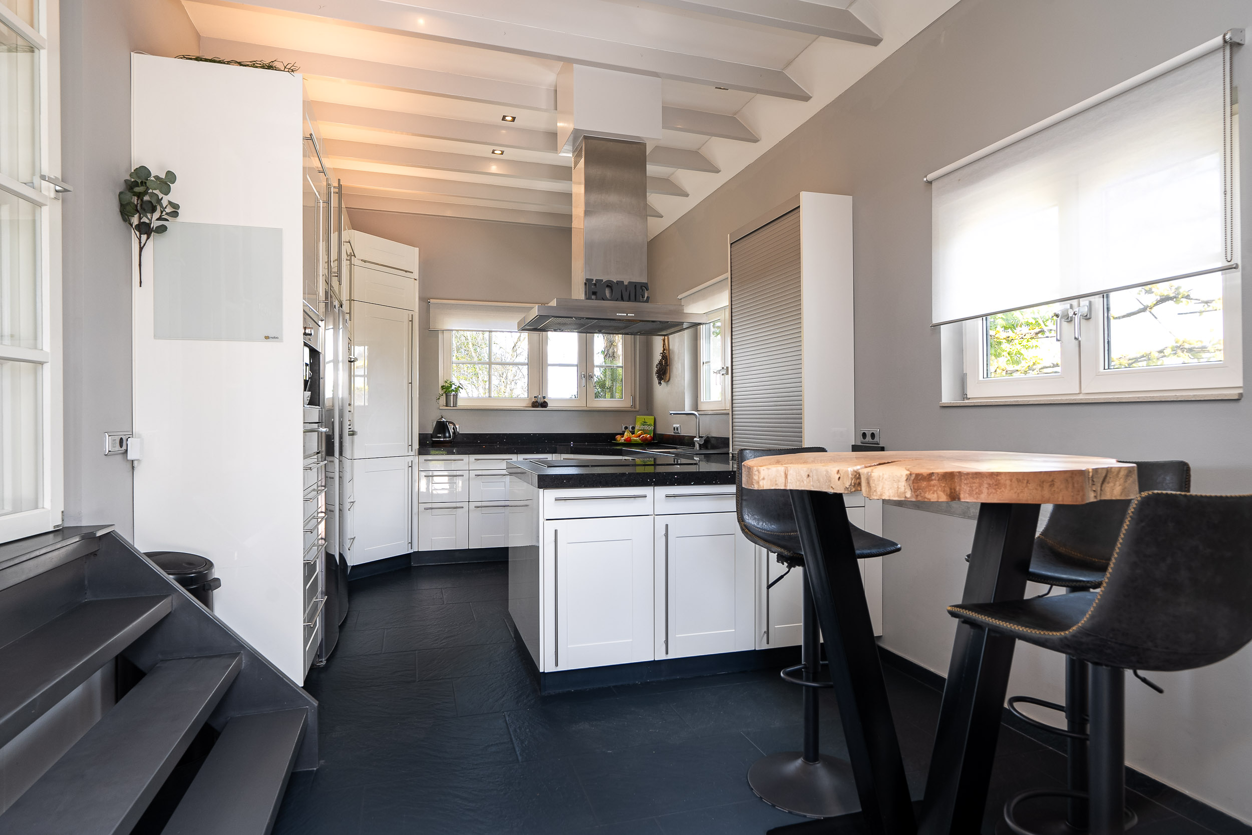 A recently built fully insulated guesthouse, studio, or home office is located in the garden. It includes a kitchenette and bathroom, making it suitable for multiple uses. The large southwest-facing windows offer inspiring panoramic views of nature toward the IJsselmeer, with its ever-changing Frisian skies.
