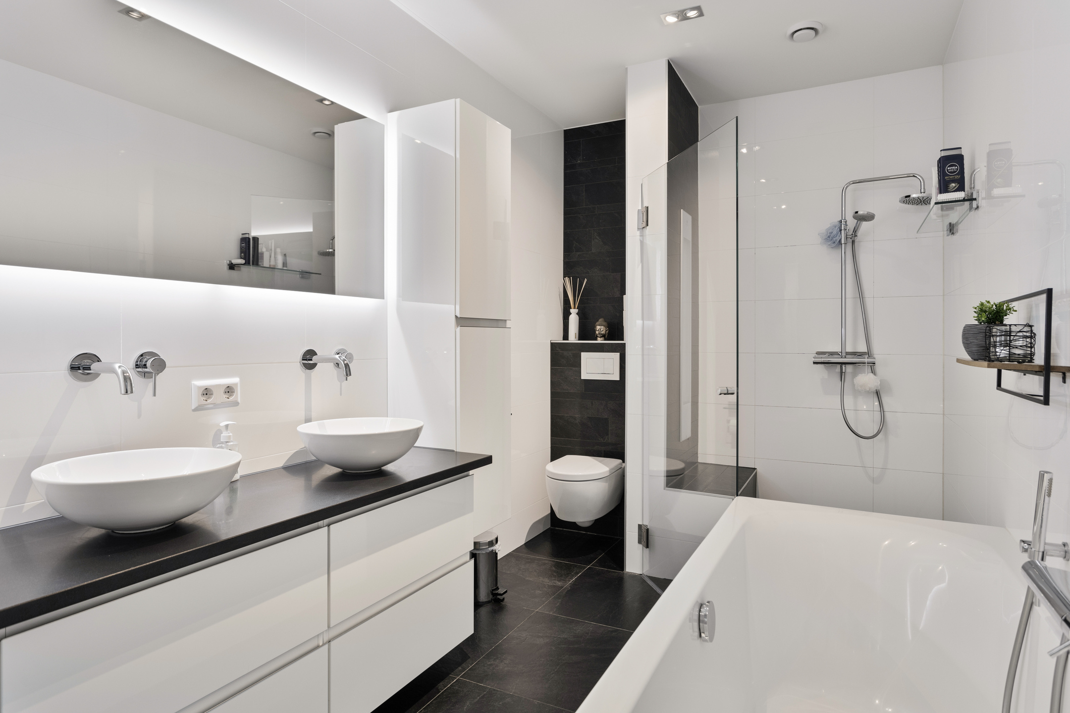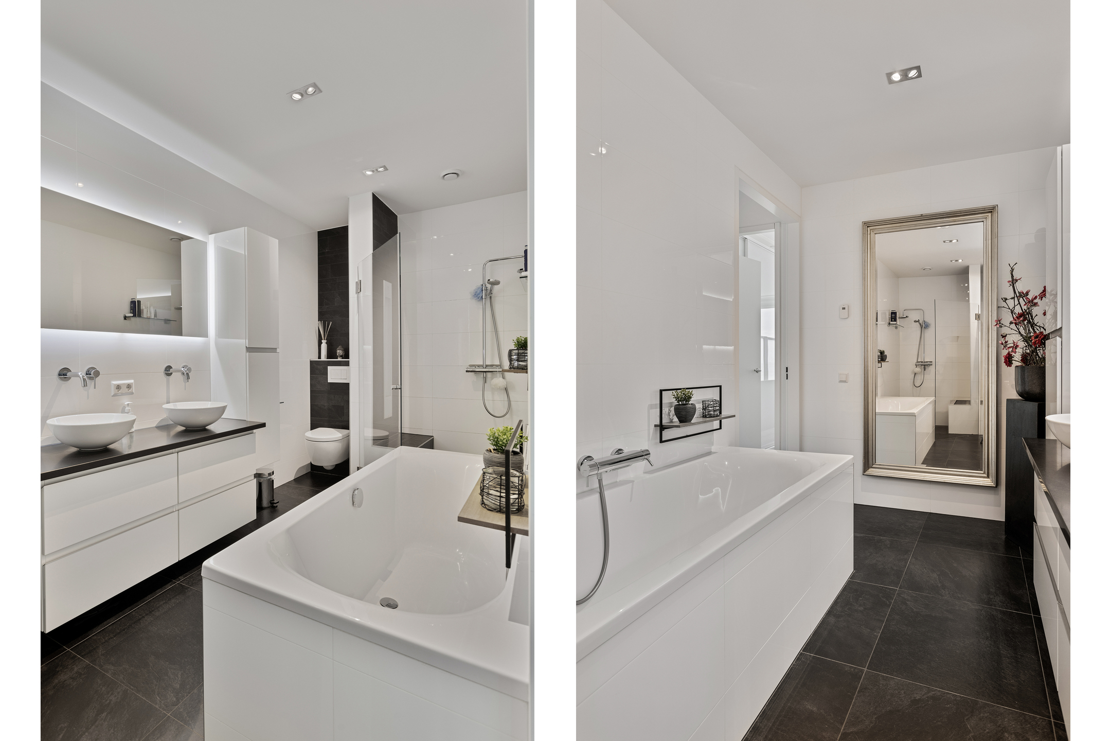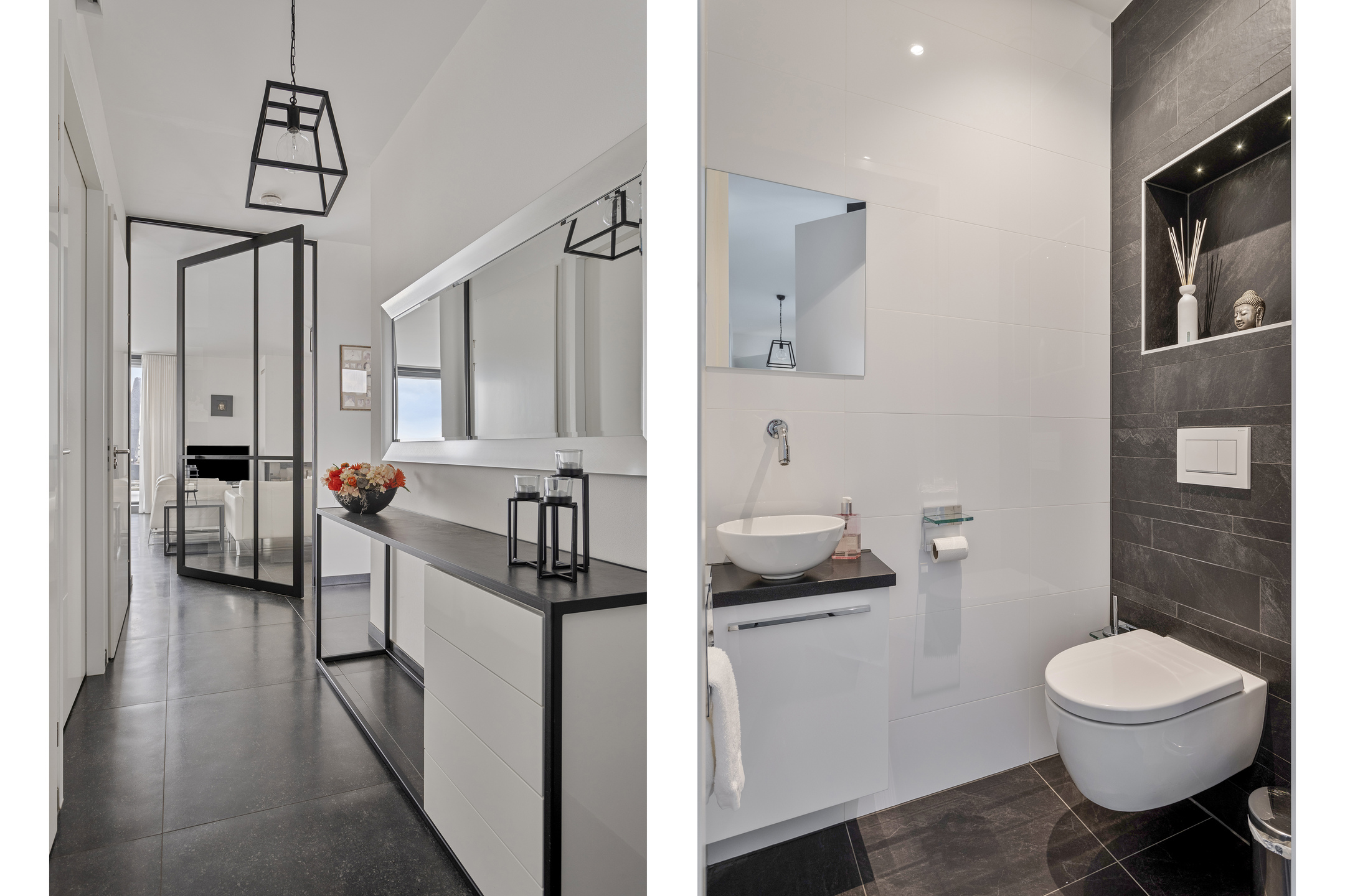 The master bedroom is also equipped with an additional door to the roof terrace and a wonderfully spacious sliding closet wall so that your entire wardrobe can be moved right along. The bathroom is also luxurious with a bath, walk-in shower with sun shower and extra floor heating for the seating area, a second wall closet and a luxurious double sink.