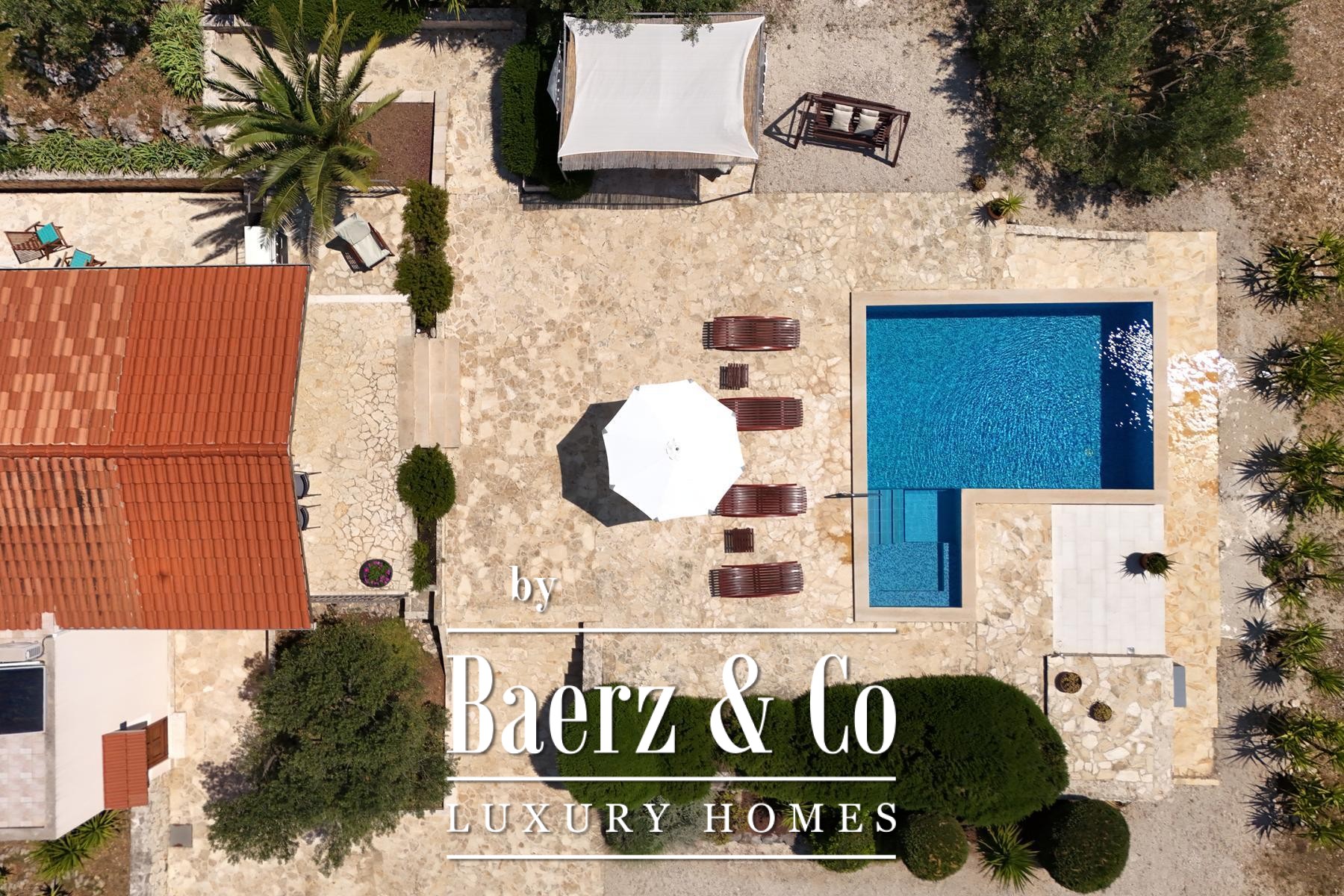 An auxiliary building tucked within the groves adds a fourth bedroom, allowing for private guest quarters or a tranquil personal retreat. This stone villa Sutivan is enhanced by its heritage status, natural spring water source, and the distinctive potential for private coastline access—each element underscoring a quiet confidence in place and preservation.