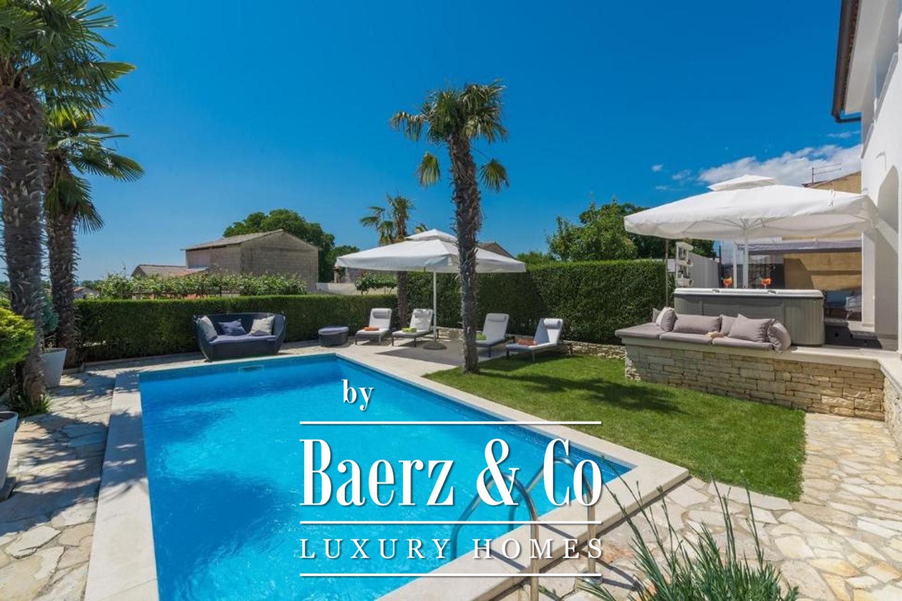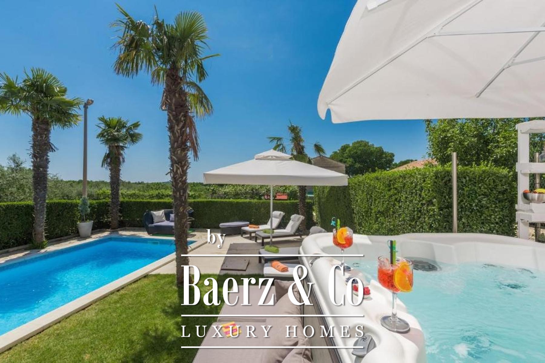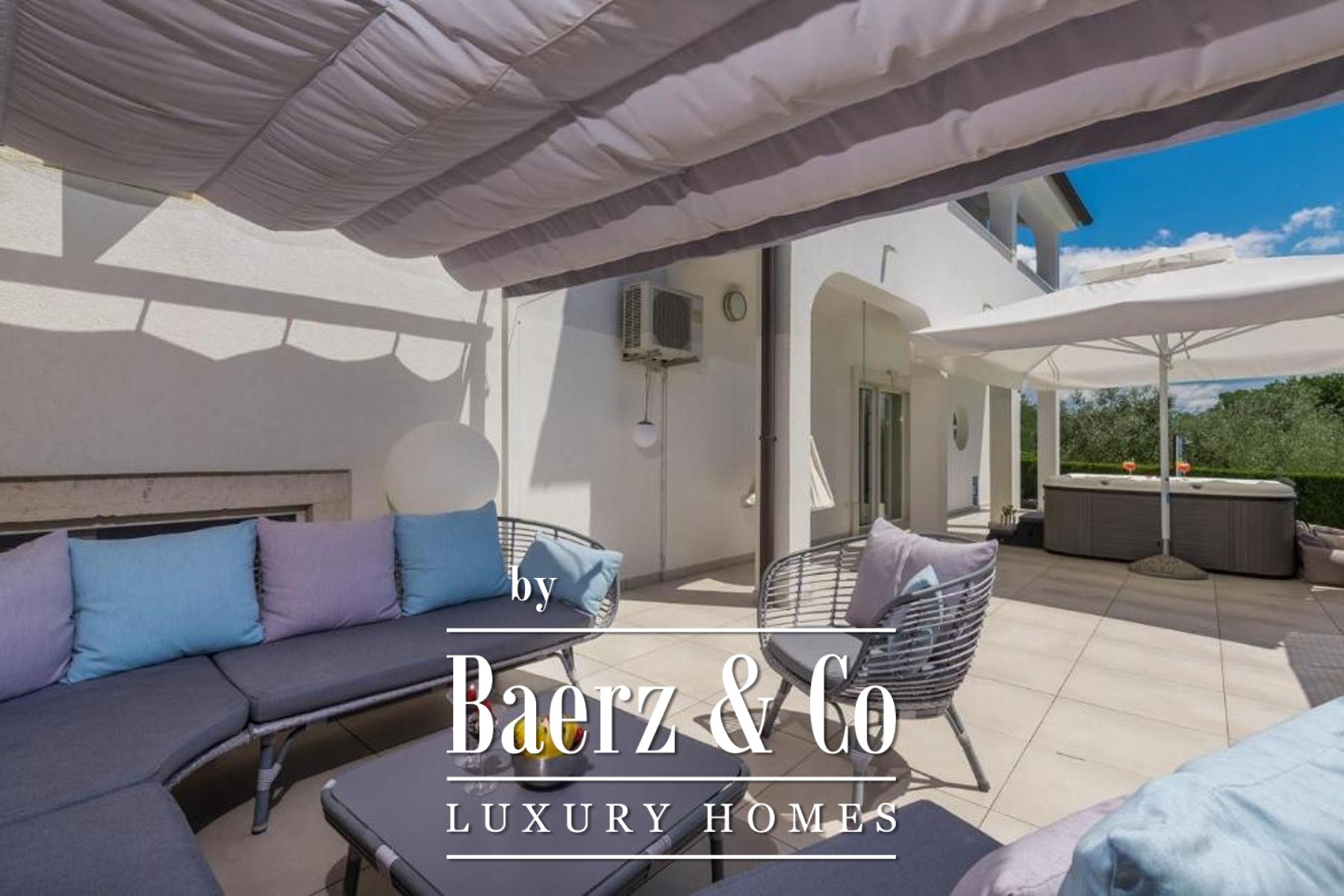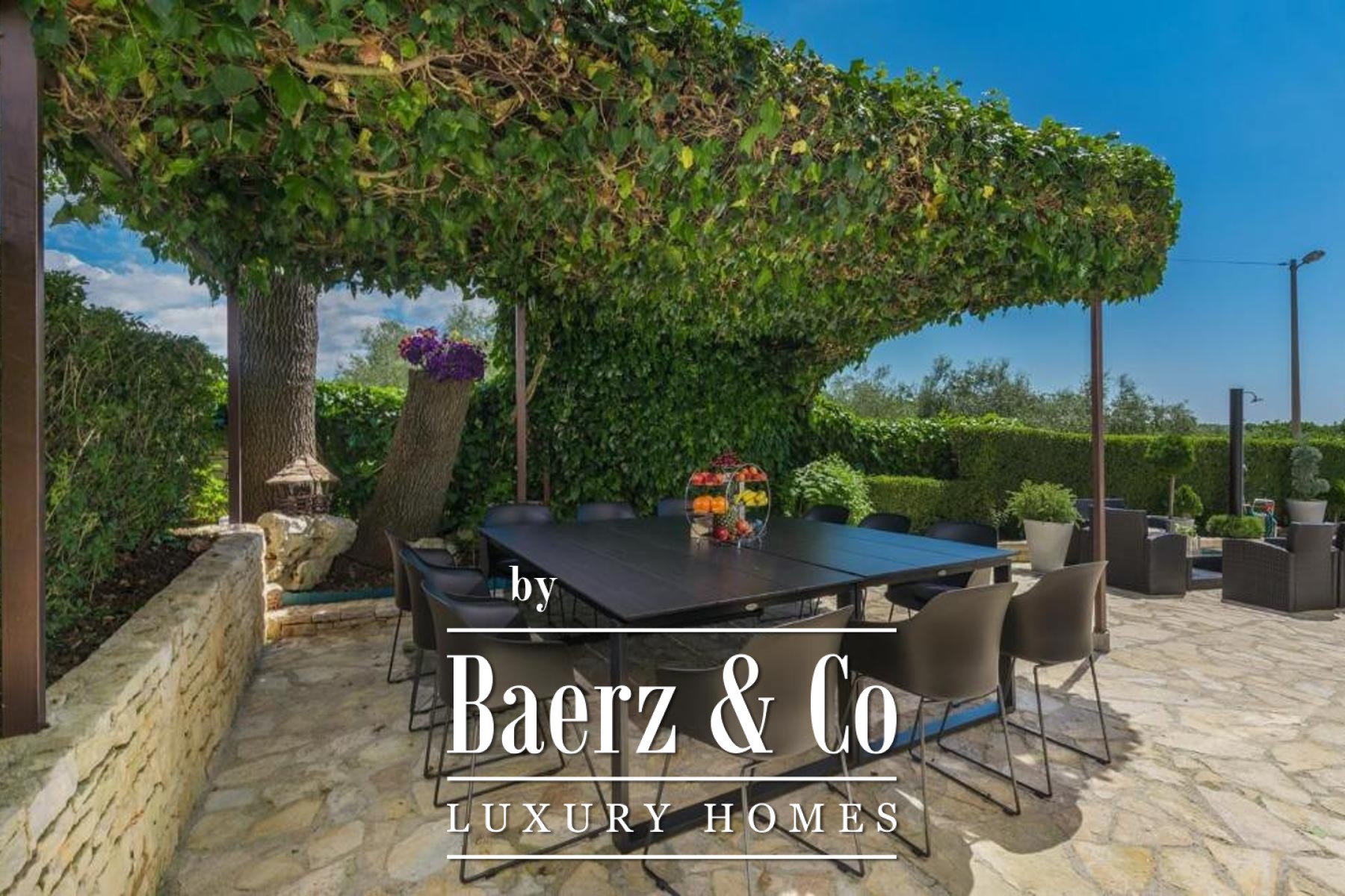 House Sveti Lovreč with pool and panoramic views lies at the tranquil edge of a village near Sveti Lovreč, Istria. This property presents 380 m² of carefully composed living space, set on a 312 m² plot with a private, enclosed garden of 230 m². Surrounded by peaceful landscapes, the house welcomes you with six air-conditioned bedrooms and six modern bathrooms, structured across three main floors and an attic, designed to balance open communal areas with secluded sleeping quarters.