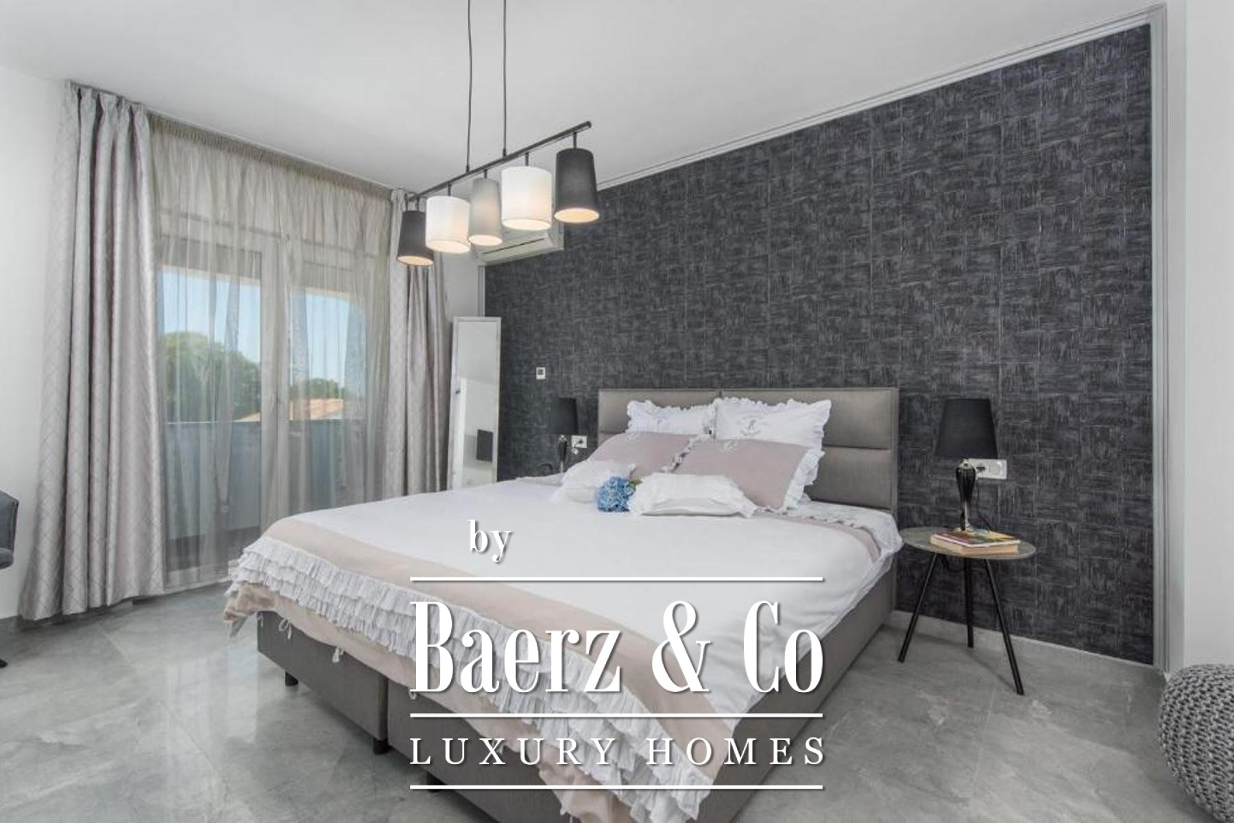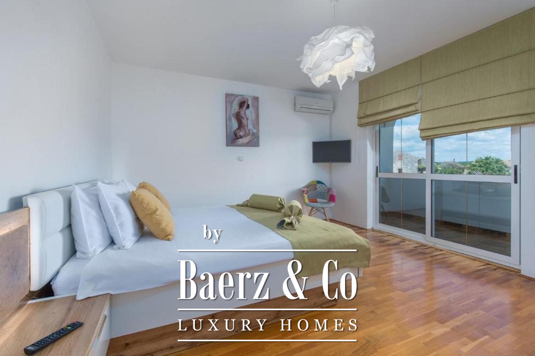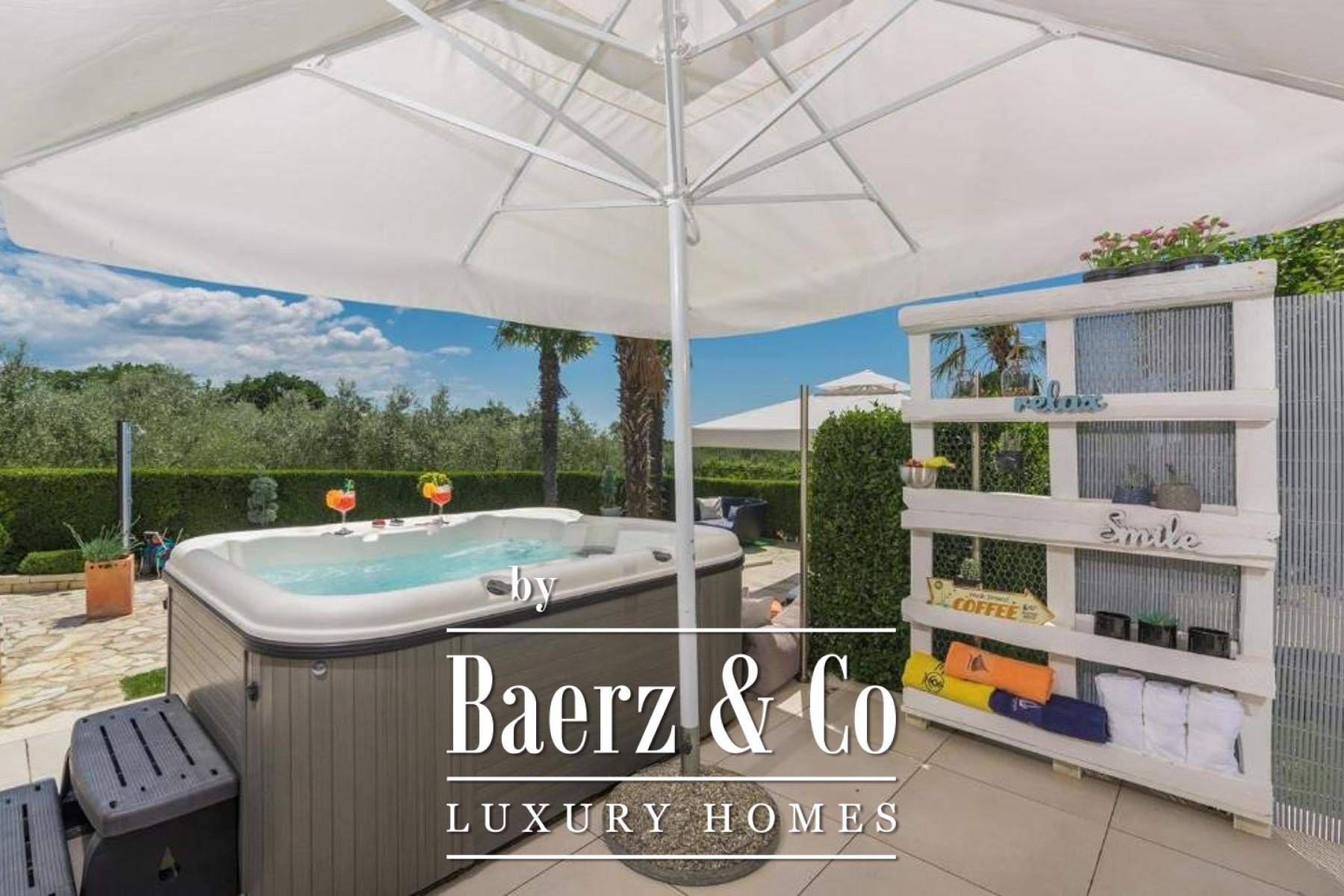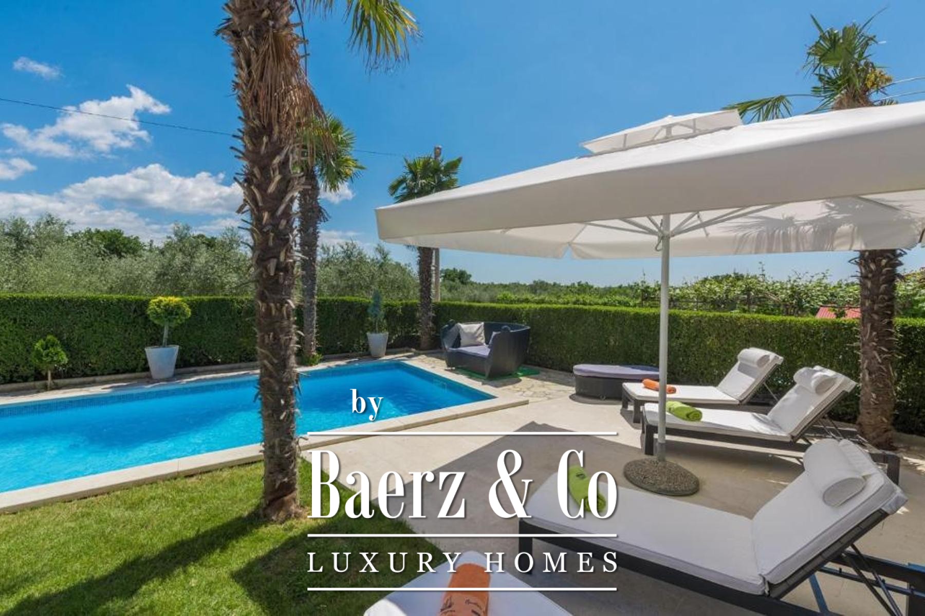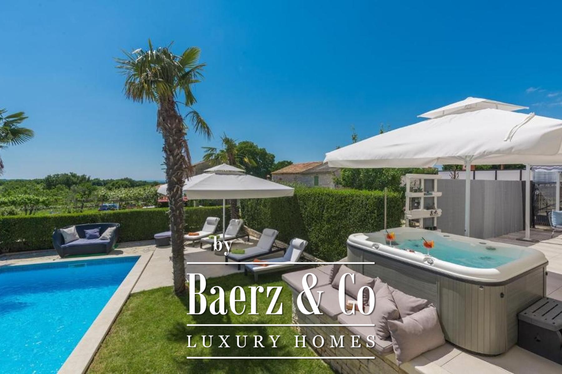 House Sveti Lovreč with pool and panoramic views lies at the tranquil edge of a village near Sveti Lovreč, Istria. This property presents 380 m² of carefully composed living space, set on a 312 m² plot with a private, enclosed garden of 230 m². Surrounded by peaceful landscapes, the house welcomes you with six air-conditioned bedrooms and six modern bathrooms, structured across three main floors and an attic, designed to balance open communal areas with secluded sleeping quarters.