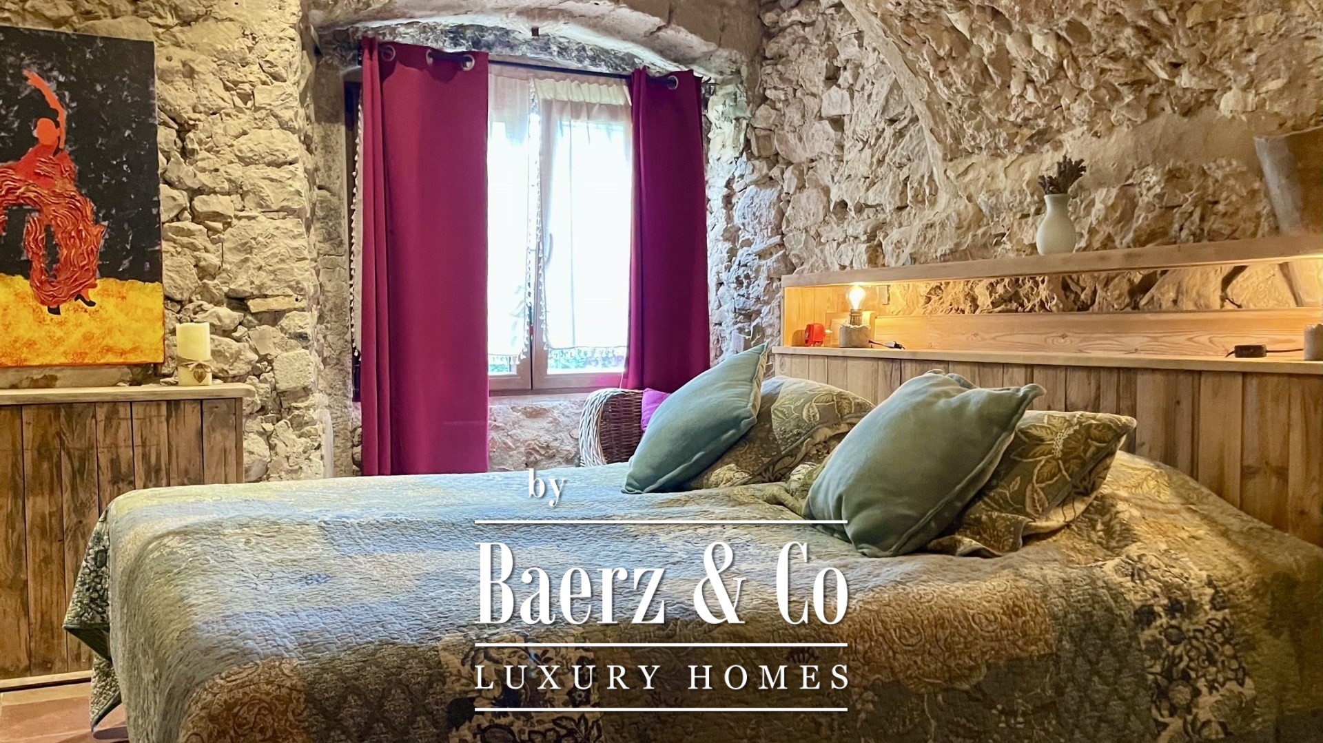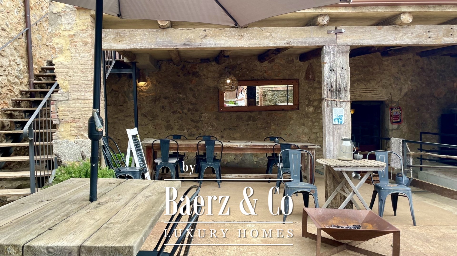 At its core, the 16th-century main house welcomes with a spacious, light-filled living and dining area, ideal for gatherings or understated events. The semi-industrial kitchen supports both domestic and professional culinary expression, while a wood-burning fireplace and carefully preserved features evoke a quiet sense of heritage. The main residence comprises six individually styled suites, each offering privacy and comfort. An additional ground-floor apartment brings flexibility to the living arrangement.