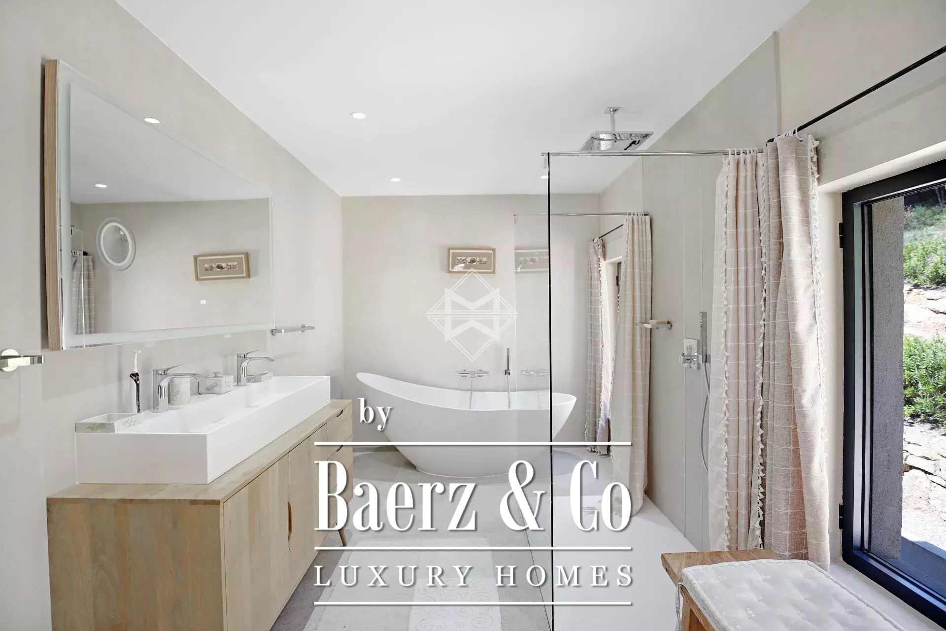 Mas Tourrettes sits elevated above the landscape, quietly surveying the rolling French countryside with panoramic views from its 94,000 m² plot. This 16th-century stone mas, sensitively restored with high-quality materials, exemplifies the balance between original character and contemporary comfort. The property spans 345 m², defined by spacious interiors and an atmosphere of calm discretion.