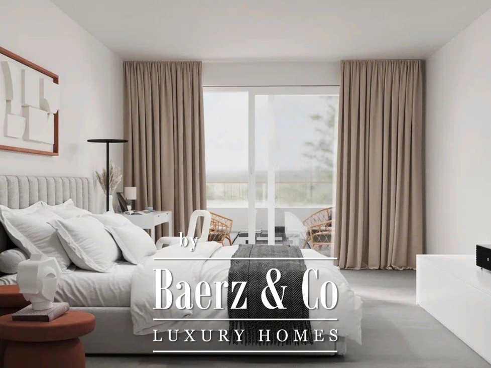 The apartment’s layout brings together a living space with kitchen and dining area, two bedrooms, a bathroom, a guest toilet, and a terrace offering carefully framed views of both the sea and the encircling mountains. Delivered with finished floors, quality tiling, equipped bathroom, and air conditioning, the property is ready for immediate ease of use.