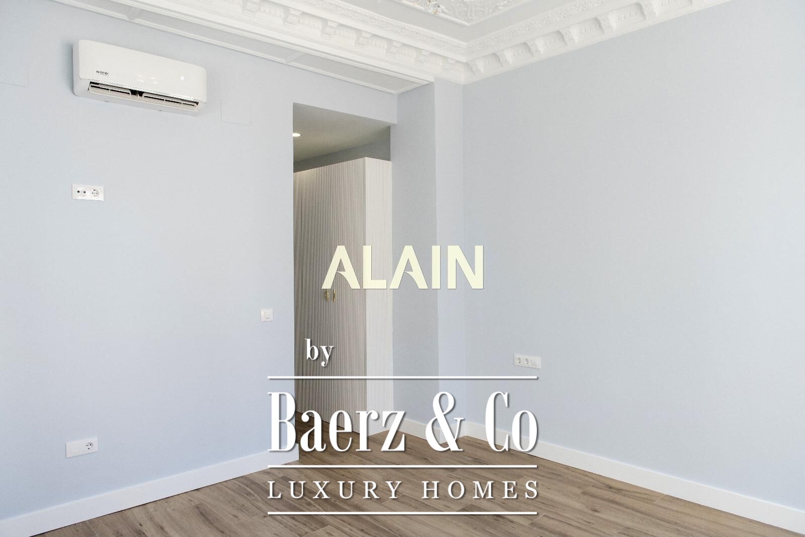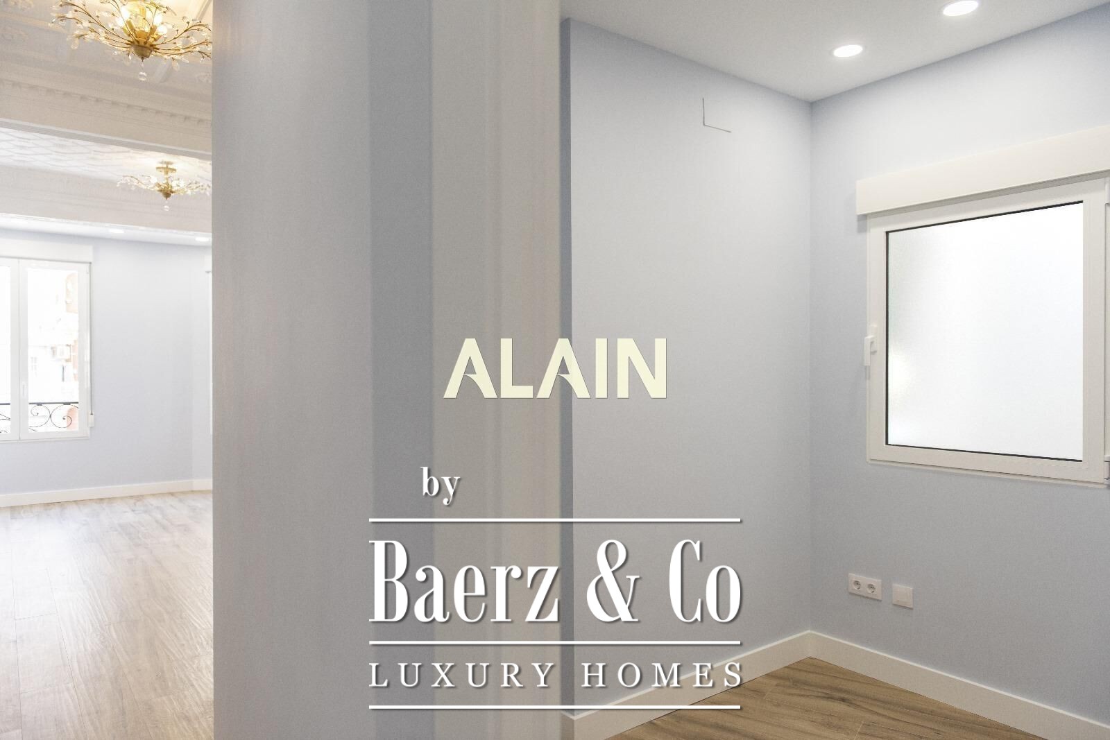 Apartment Valencia is offered within the lively Ruzafa quarter, occupying 140 m² on the second floor of a distinguished building. The stately entrance and generous ceiling heights, complemented by intricate original moldings, frame spaces defined by both heritage and contemporary clarity.
