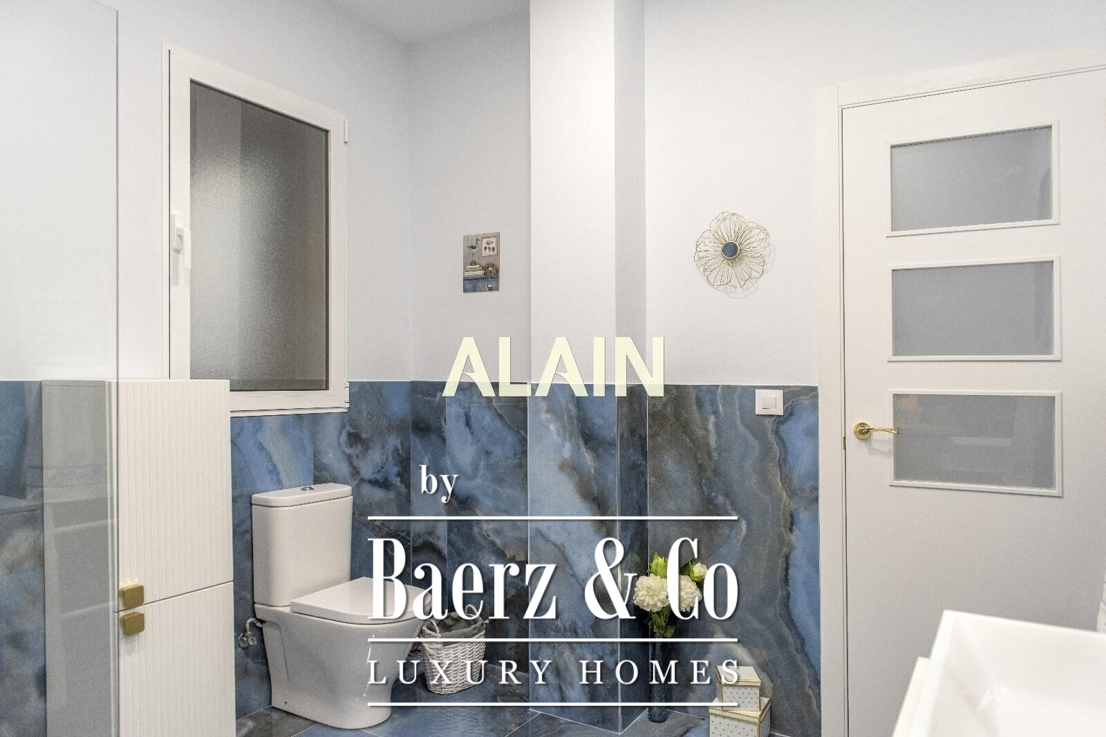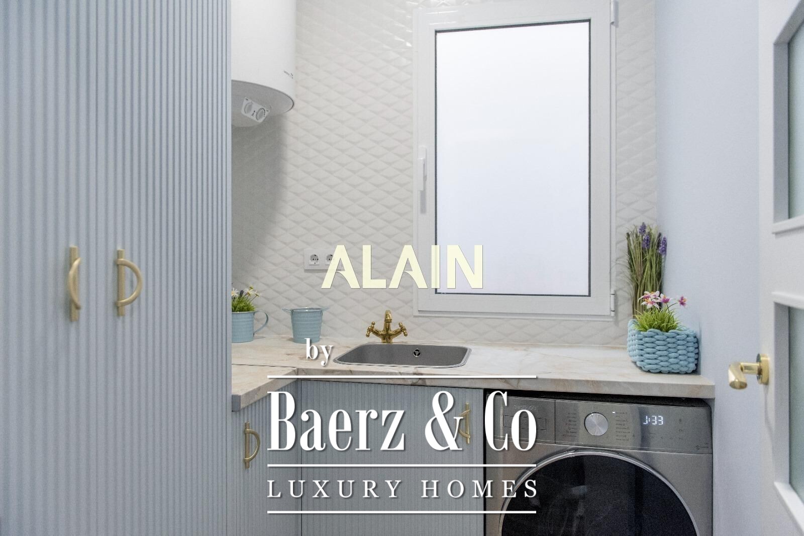 This residence has undergone a meticulous renovation, employing premium materials throughout. All electrical and plumbing systems are new, ensuring lasting dependability. Each of the three bedrooms benefits from independent hot and cold air conditioning, while tilt-and-turn Climalit glass windows provide sound and thermal comfort. The living and dining area moves seamlessly into a modern kitchen with an integrated island, fully equipped with current appliances and suited for private gatherings or solitary reflection at day's end.