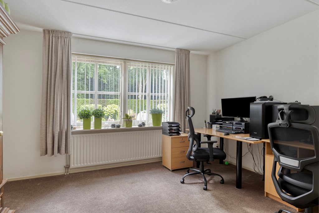 The moment you drive up the driveway, you’ll feel it: peace, abundant space, and quality. This spacious detached home offers approximately 175 m² of living area and sits on a 571 m² plot. It has been impeccably maintained and exudes class from the very first glance. Inside, you’ll find a bright living room, a cozy live-in kitchen, a ground-floor office, and two very large bedrooms. A practical utility room and a second bathroom complete the living comfort. The surprisingly large 57 m² garage offers countless possibilities—from hobby space to storage, or even an additional workspace or bedroom. Surrounding the house is a beautifully landscaped garden with multiple seating areas, mature planting, a pond, and ample privacy. Here, you’ll enjoy outdoor living without sacrificing comfort or accessibility. This home combines solid craftsmanship with functional luxury—an exceptional opportunity for those seeking a tranquil setting with plenty of extra space in reserve.