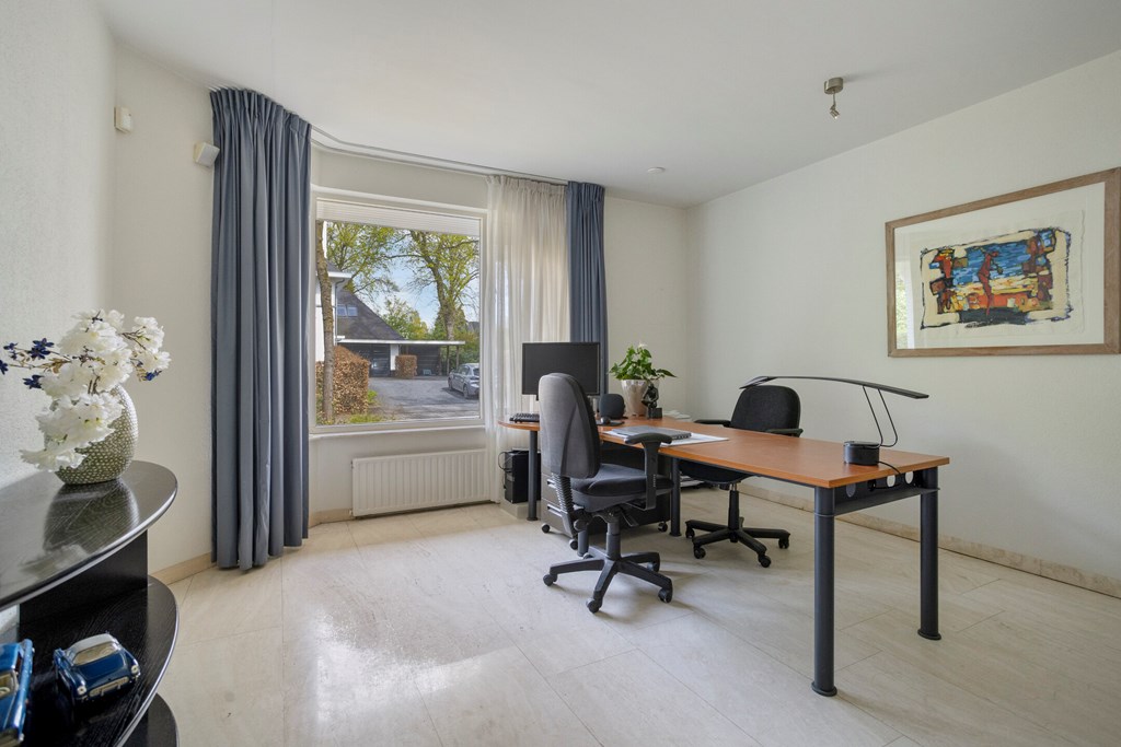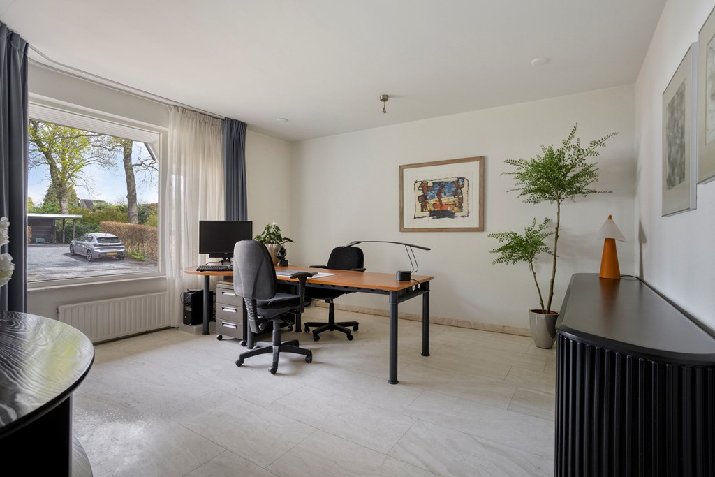 You enter the property from the street side, where you have your own driveway, including a carport. There is also ample parking available in the immediate area. Once inside, you arrive in a spacious and well-maintained hallway that immediately offers a warm welcome. From here, you have access to the toilet, the study, the living room, and the staircase to the first floor. The hallway serves as a central and practical hub within the home.