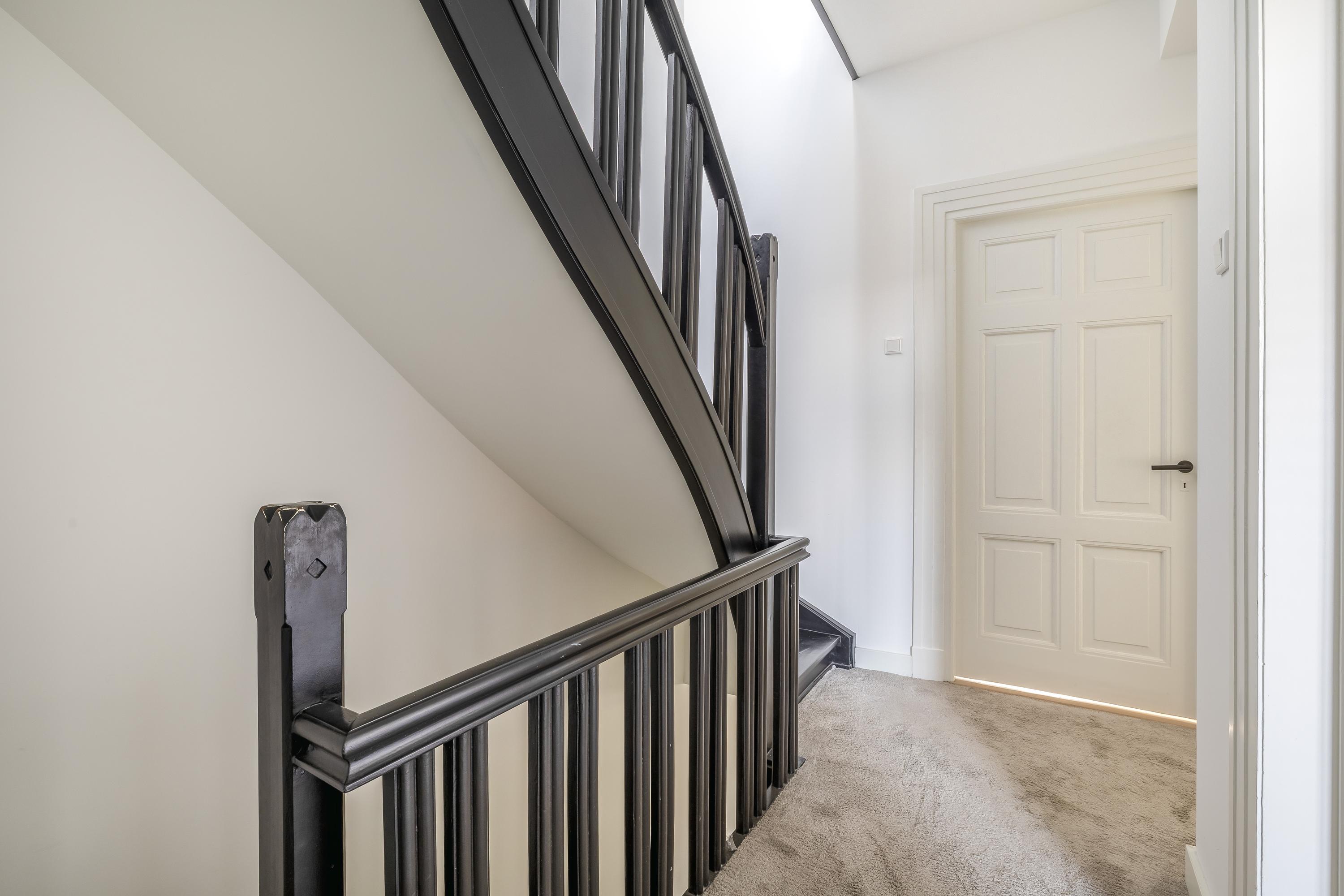 The main living level enjoys unobstructed views of the Rosarium, enhanced by high ceilings with original ornamentation, a gas fireplace, and seamlessly integrated technology including air conditioning and dimmable lighting. French doors at the rear invite you to the architect-designed garden, a private sanctuary with multiple terraces, Padauk wood decking, paved patio, and a heated swimming pool, all surrounded by walls for complete seclusion just minutes from Venlo’s centre.