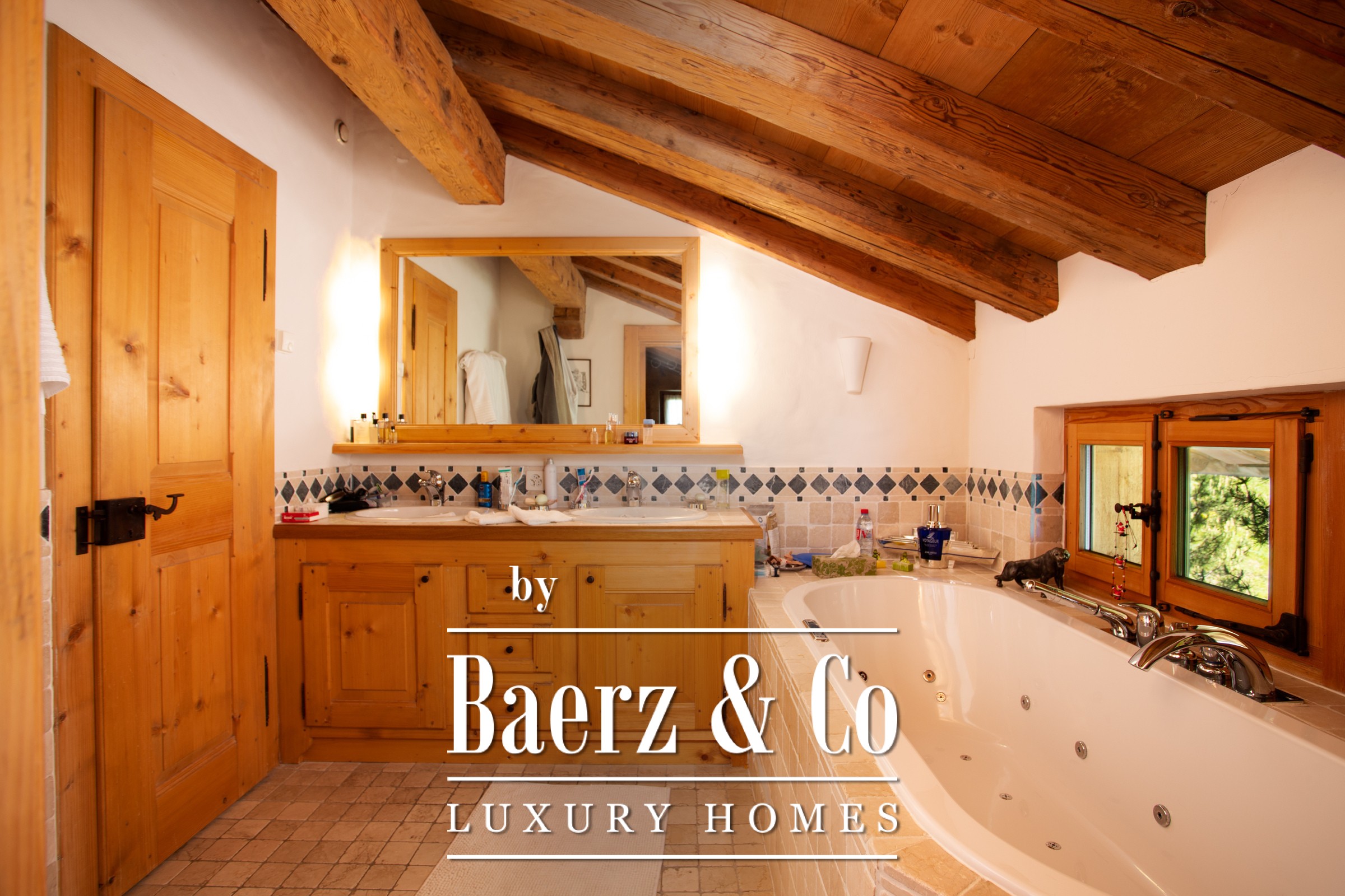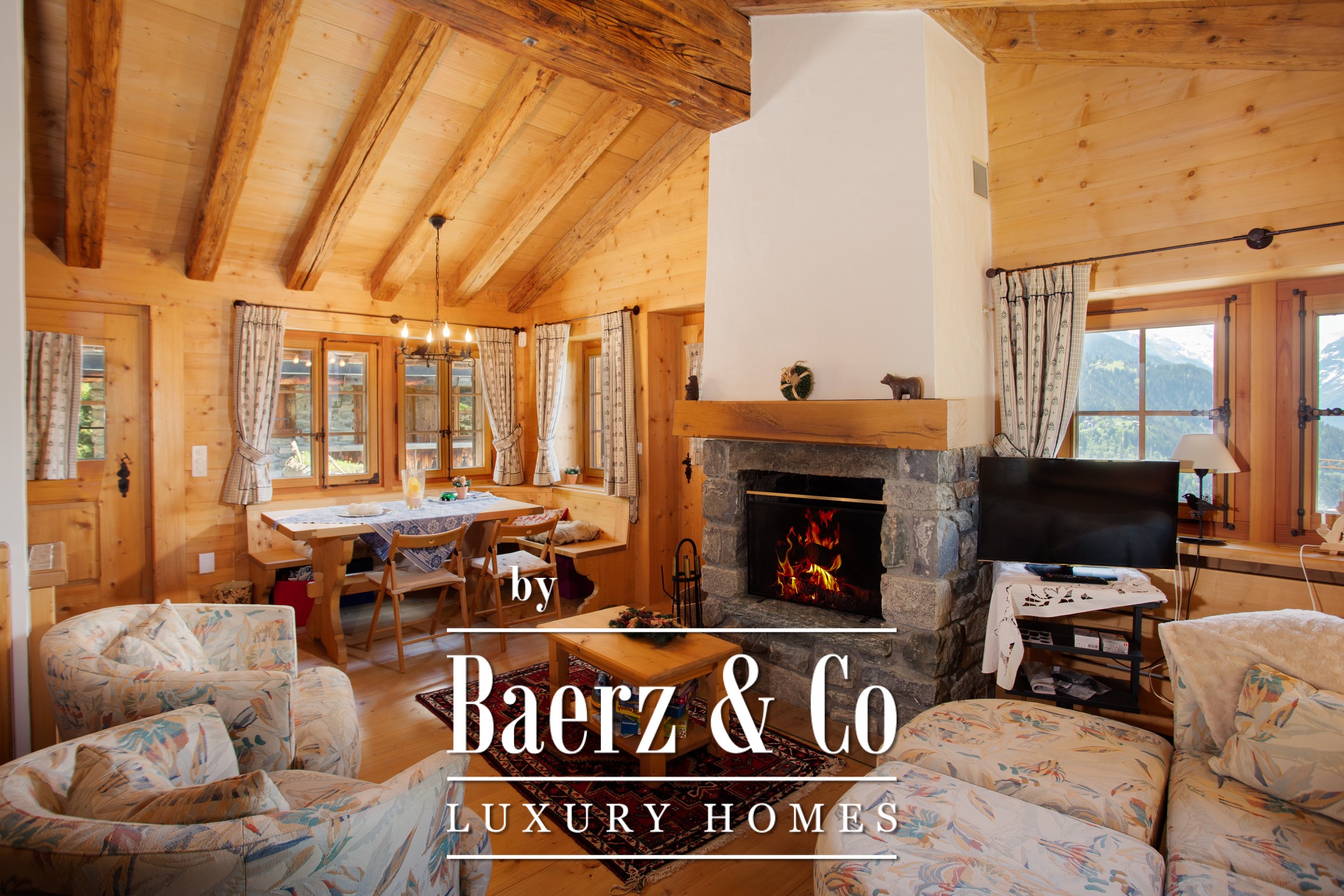 a breathtaking view of the valley and enjoy a sublime fireplace. On the same floor you can enjoy the open kitchen and dining room under the roof. In the attic is the master bedroom with its bathroom and dressing room. On the first floor there are two other bedrooms with bathrooms. Let's move on to the mazot. It consists of a living room, dining room and two further bedrooms and a bathroom.