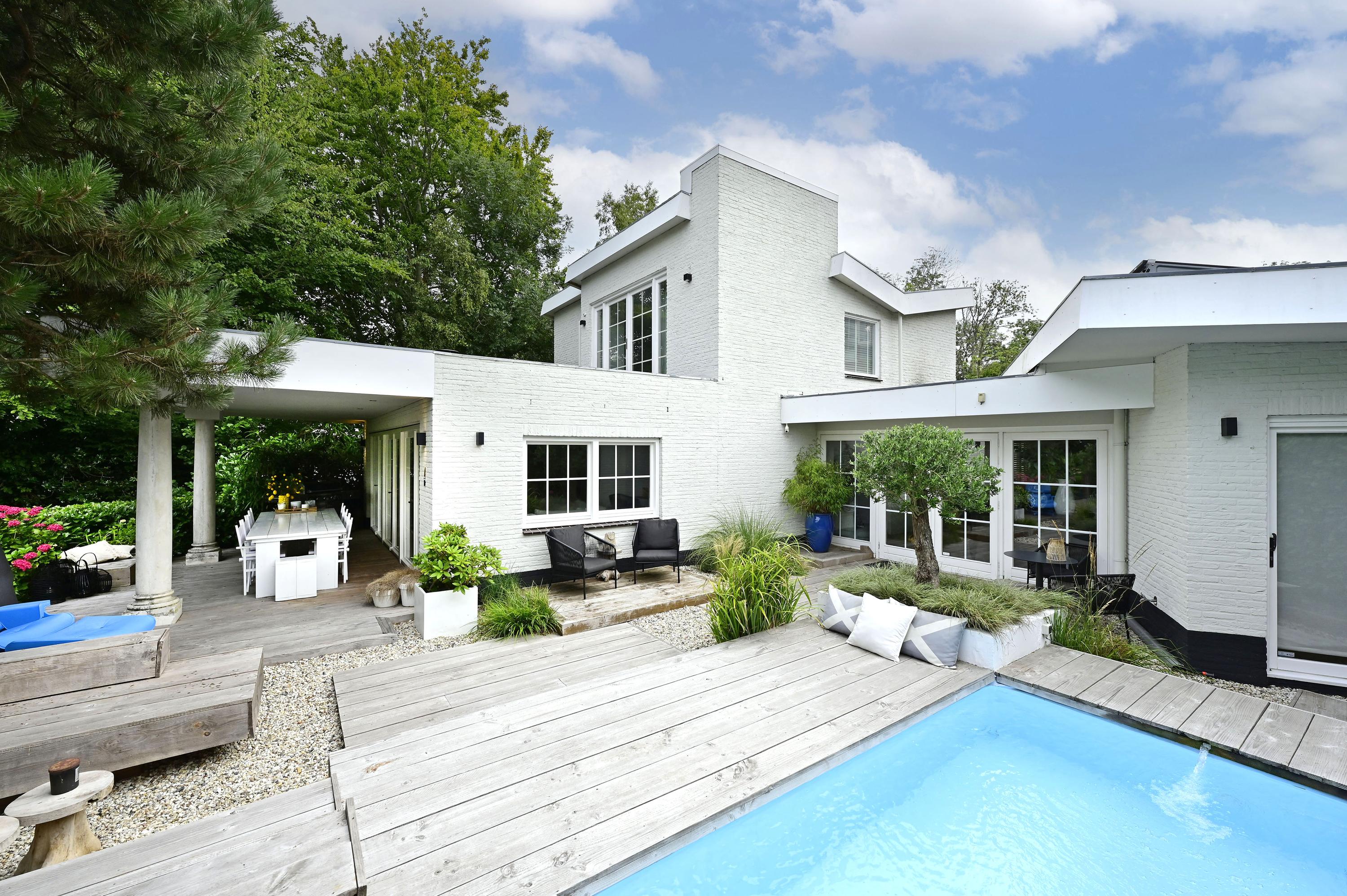 Access to the villa is via a private driveway with an electric gate or separate pedestrian entrance on the Groenlandse Kade. Once inside, the beautifully landscaped front garden unfolds, offering ample parking for multiple vehicles. Expansion possibilities exist for those wishing to further personalize the home.
