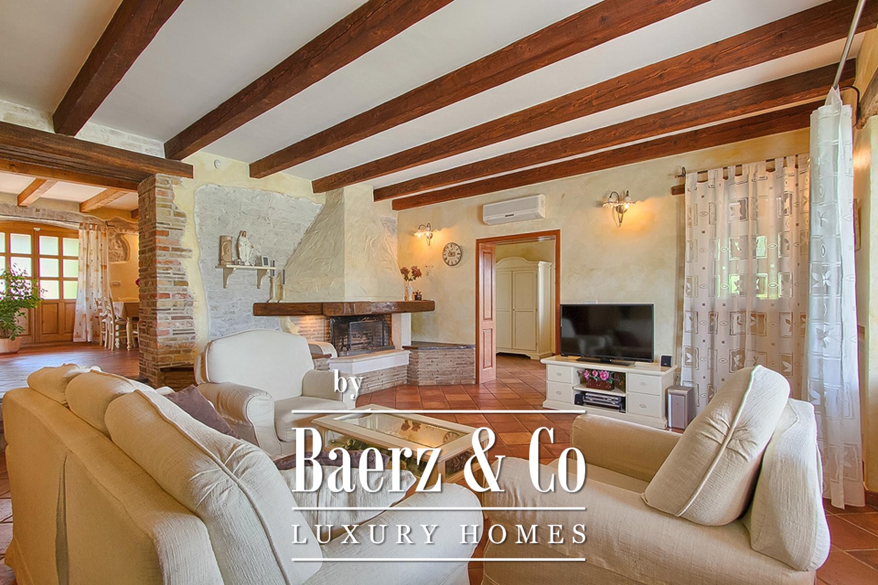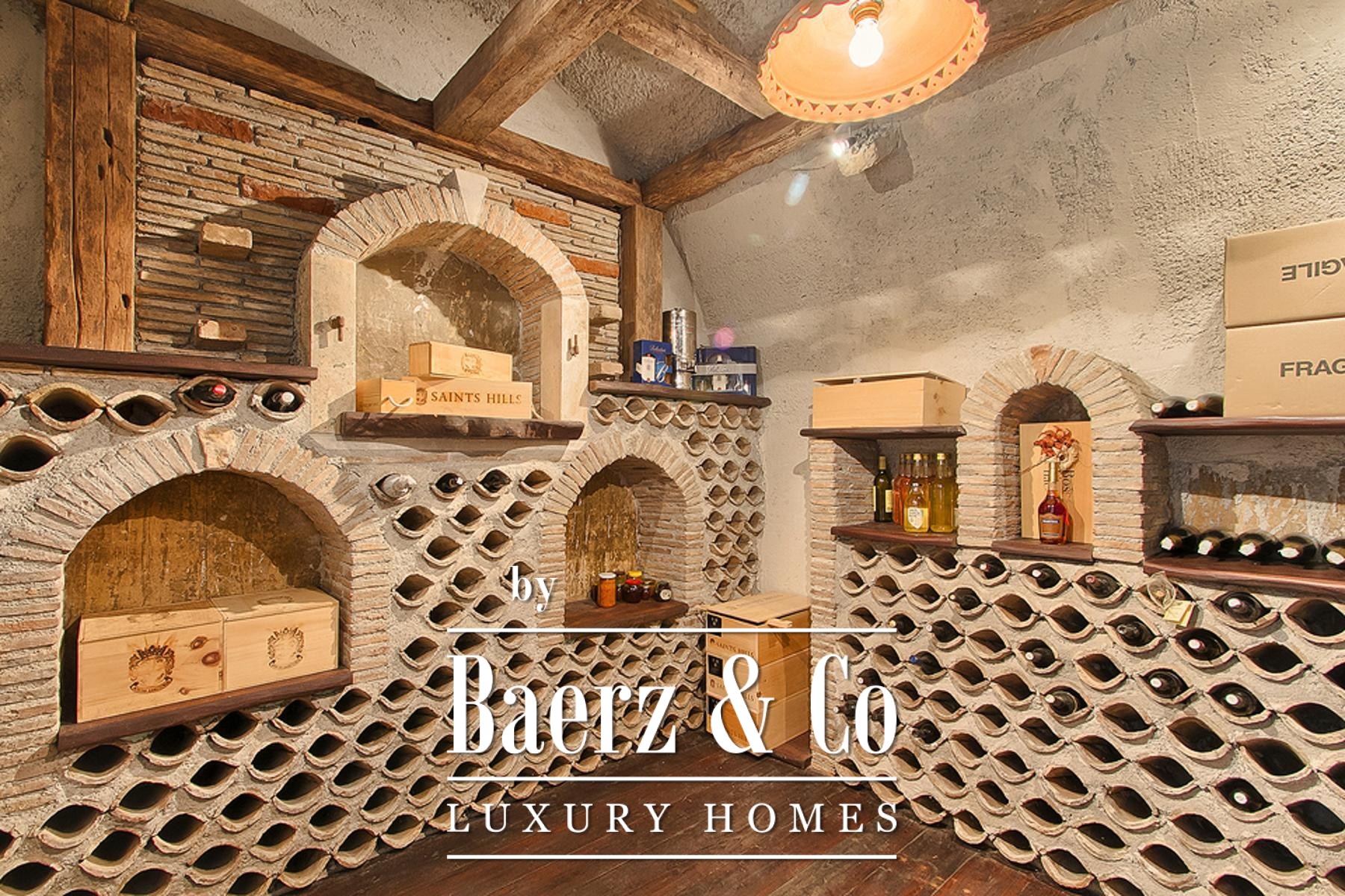 Handmade Italian furnishings and terracotta ceramics create an understated, elegant atmosphere throughout. Climate control is provided by central heating and air conditioning, with security ensured by an alarm system. A unique highlight is the underground wine cellar, housed in a former cistern for optimal year-round storage.