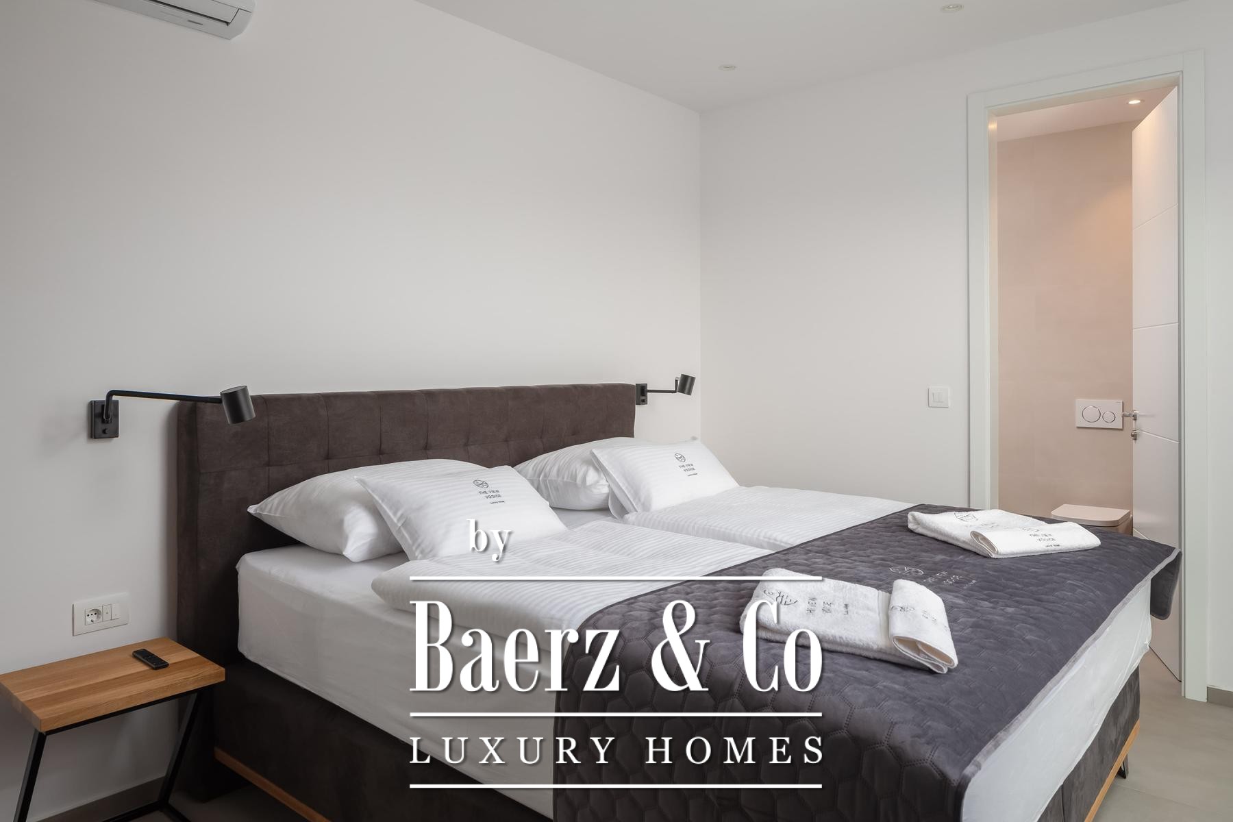 Modern villa Vodice with sea view offers an understated sanctuary on the Croatian coast for those seeking refined contemporary living. This villa, built in 2022, provides 332 m² of considered space on a private 834 m² plot, within 900 metres of the Adriatic. Designed over two levels, the property presents five bedrooms, each with its own bathroom, ensuring privacy and comfort for residents and guests.