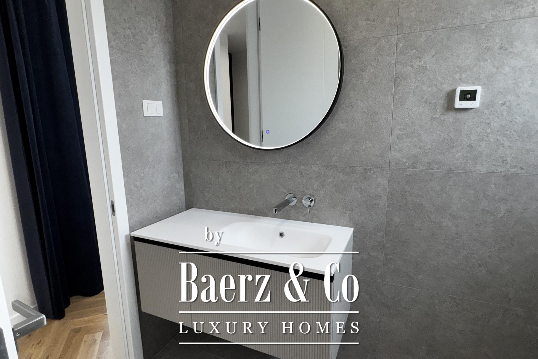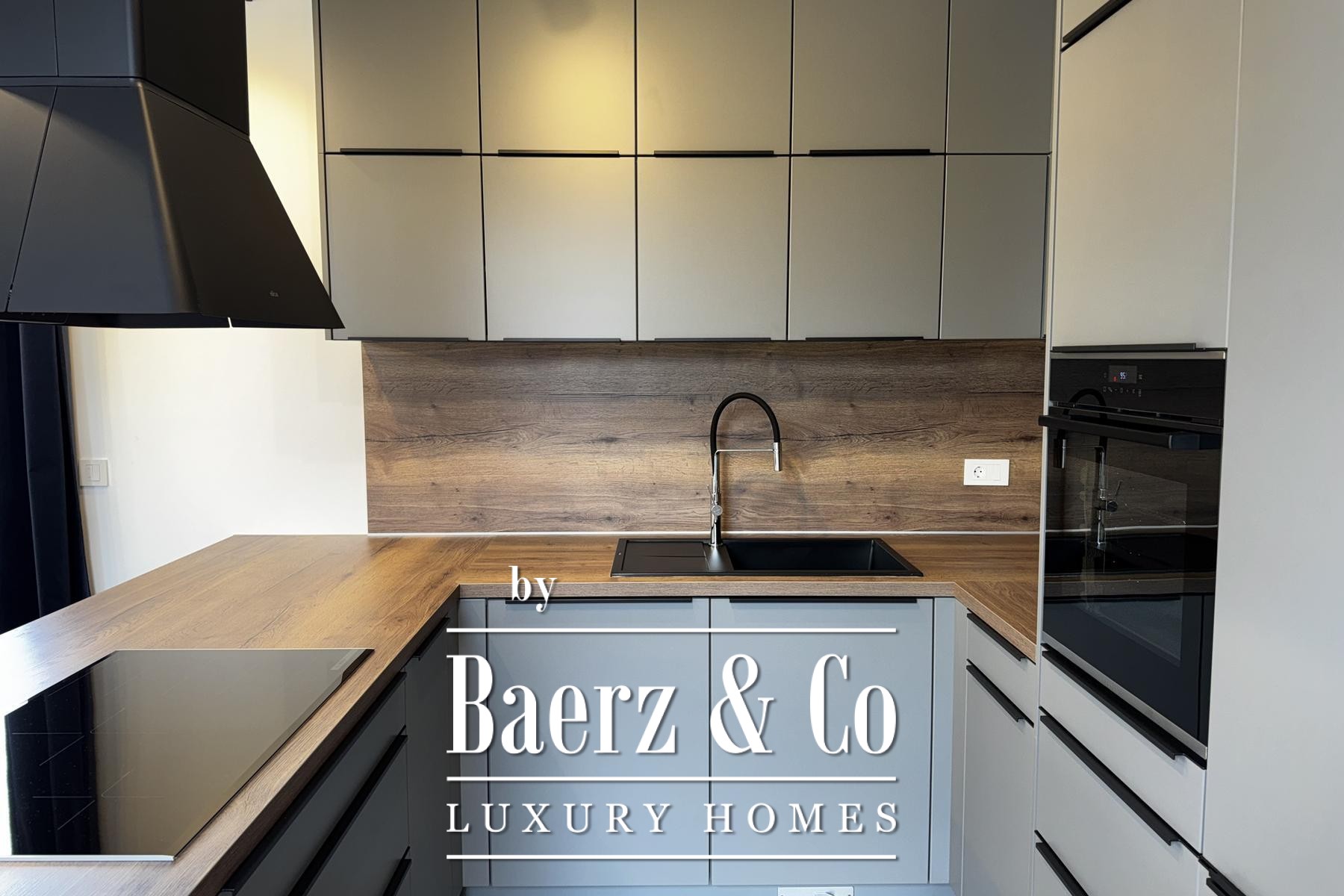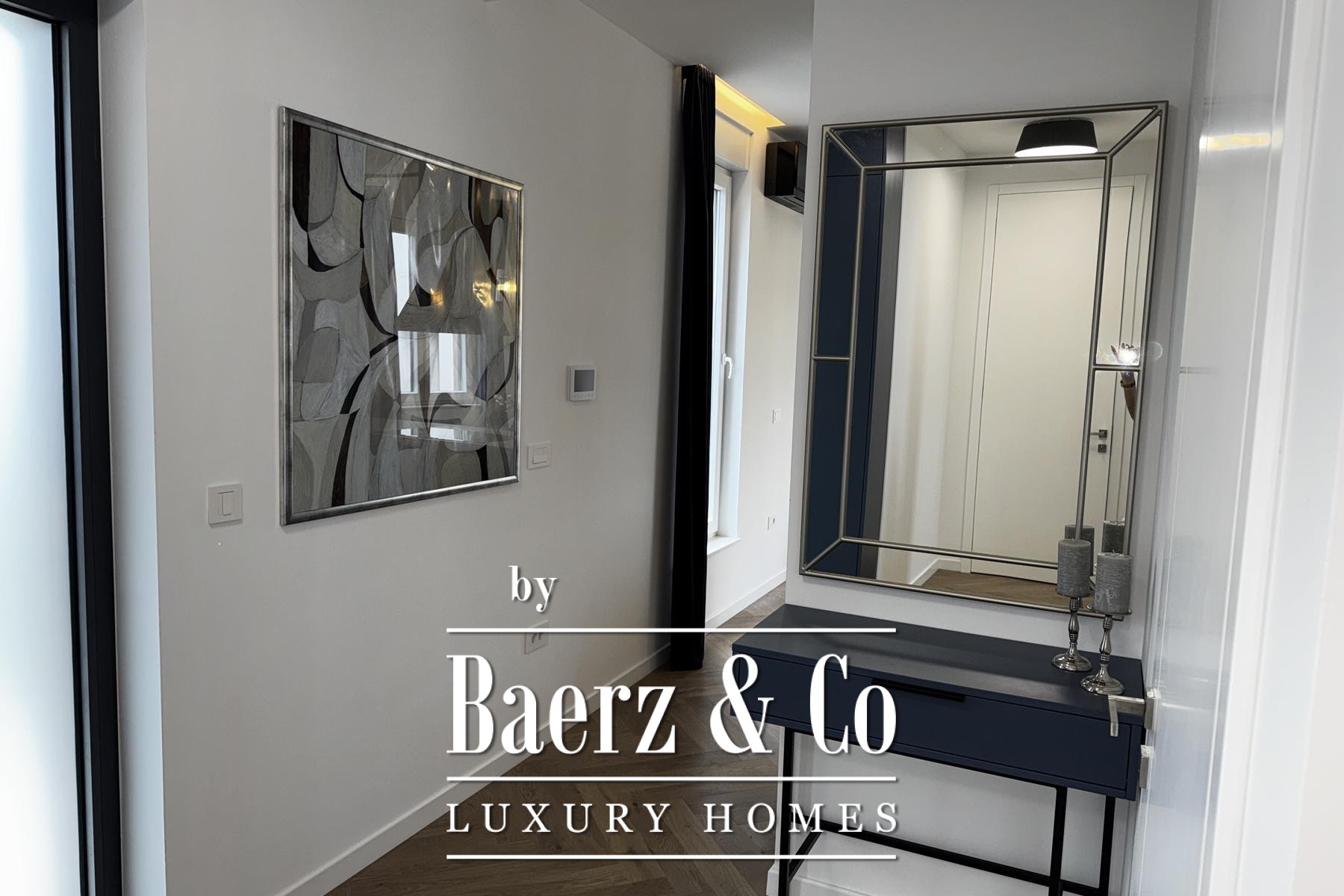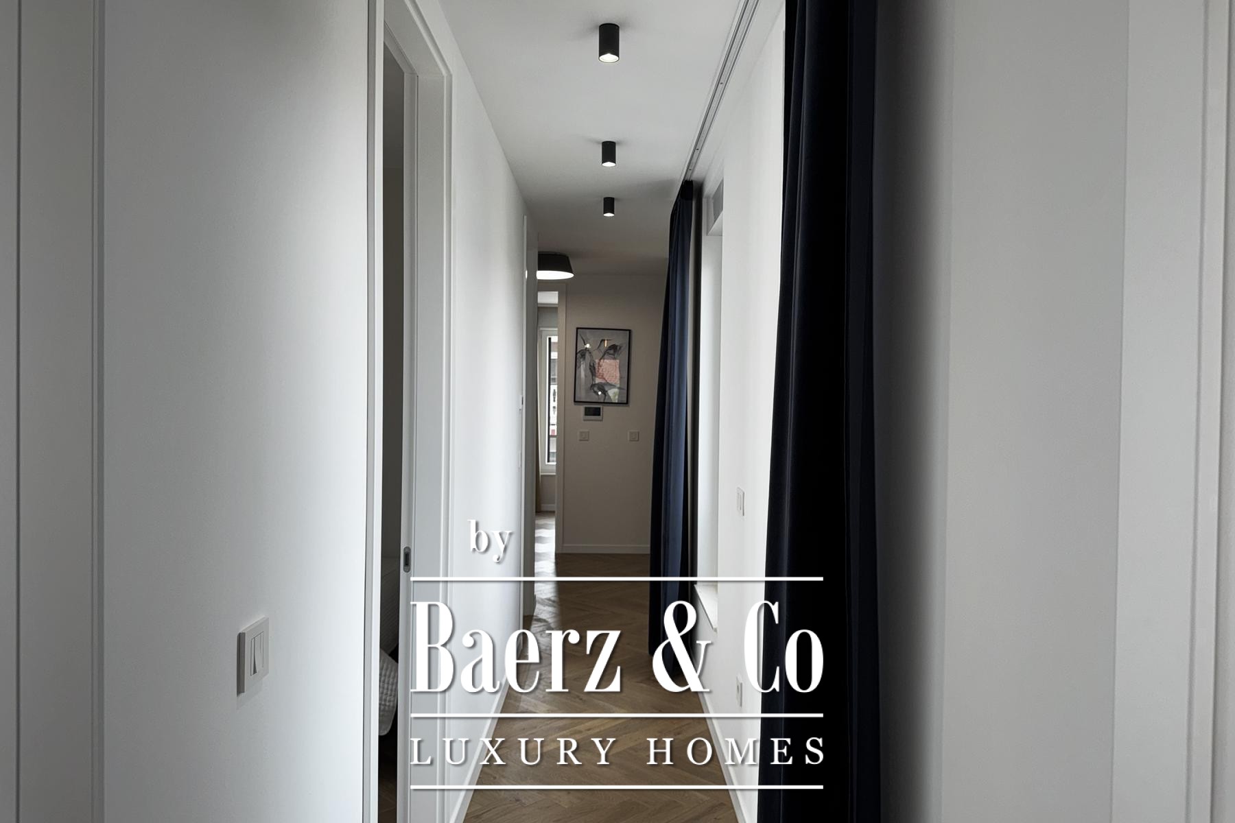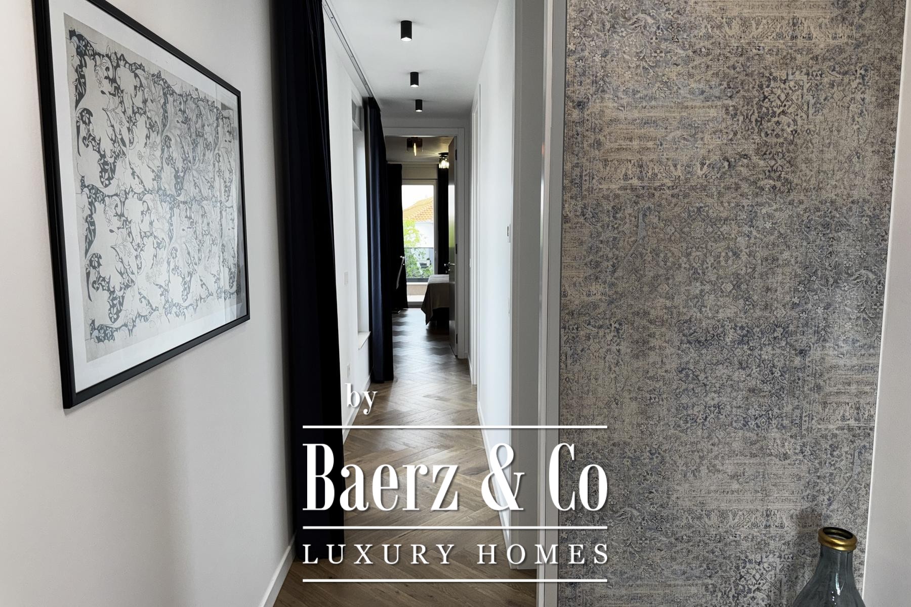 Upstairs, three bedrooms, including a master suite with walk-in wardrobe and a secondary suite with private bathroom and terrace access, deliver a thoughtful balance of privacy and light. Rich materiality abounds: three-layer parquet flooring, solid wood stairs, full-height doors, and quality finishes establish an atmosphere of understated elegance.