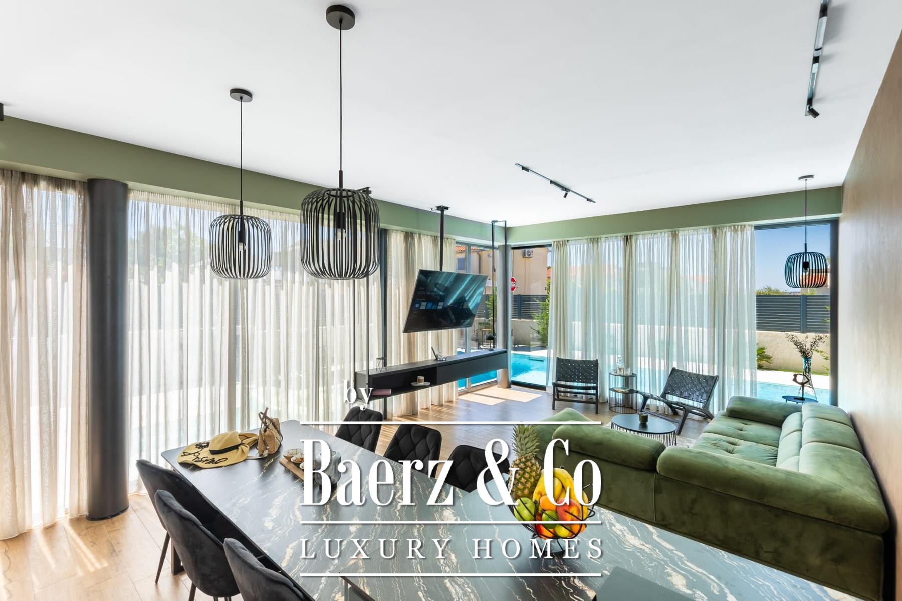 Villa Vrsi Croatia with pool offers a serene coastal lifestyle in the northwestern corner of Dalmatia, where the Adriatic is only 150 meters away. Within this villa's 261m² of living space, moments of quiet refinement unfold across three levels, complemented by a 411m² plot that provides privacy and ease of living.