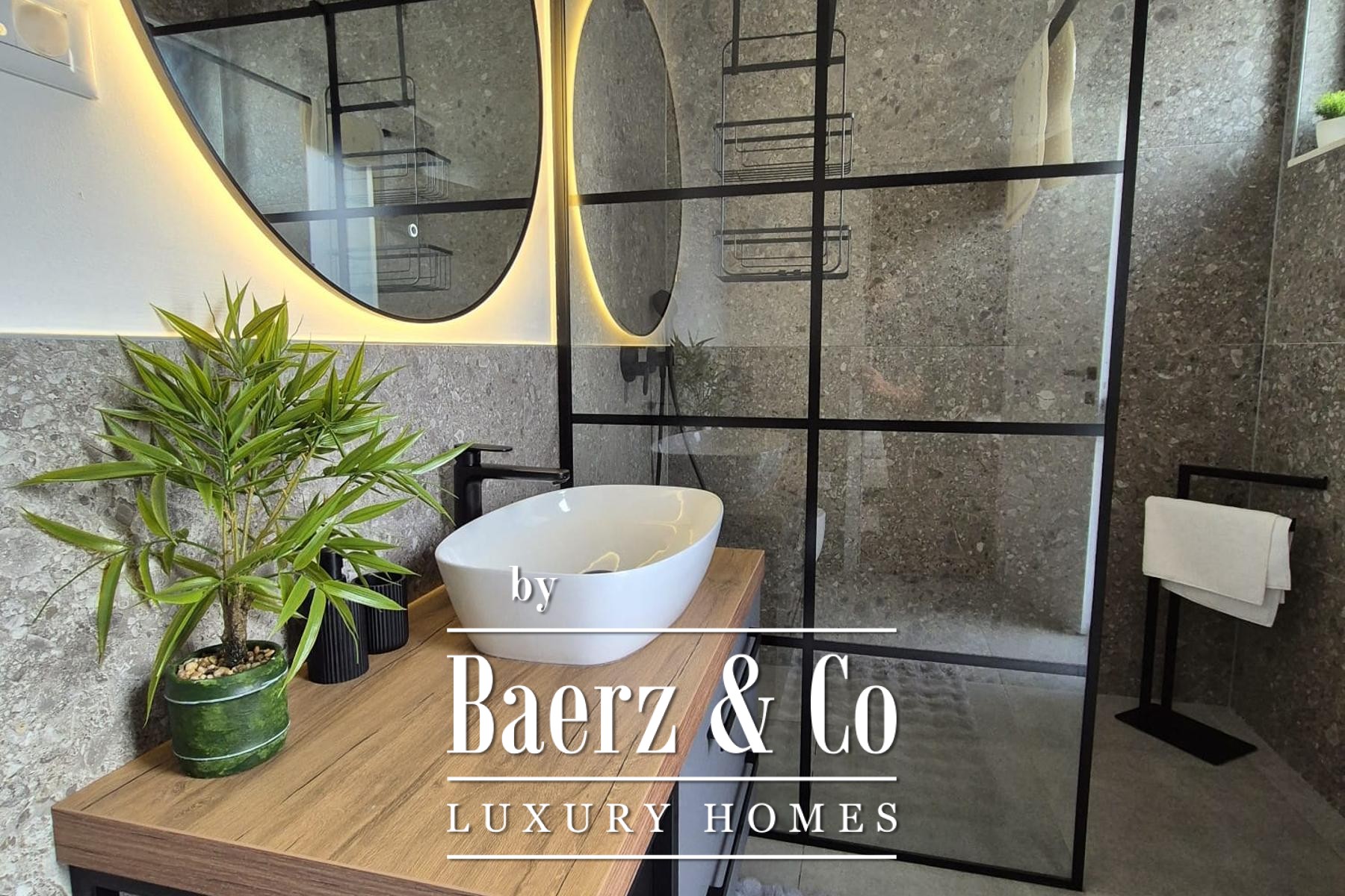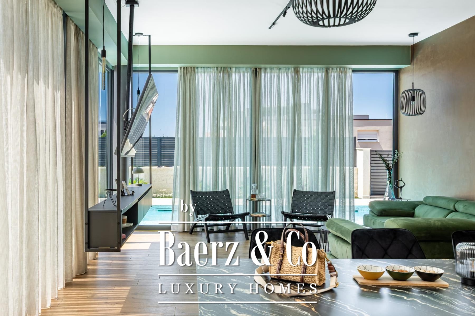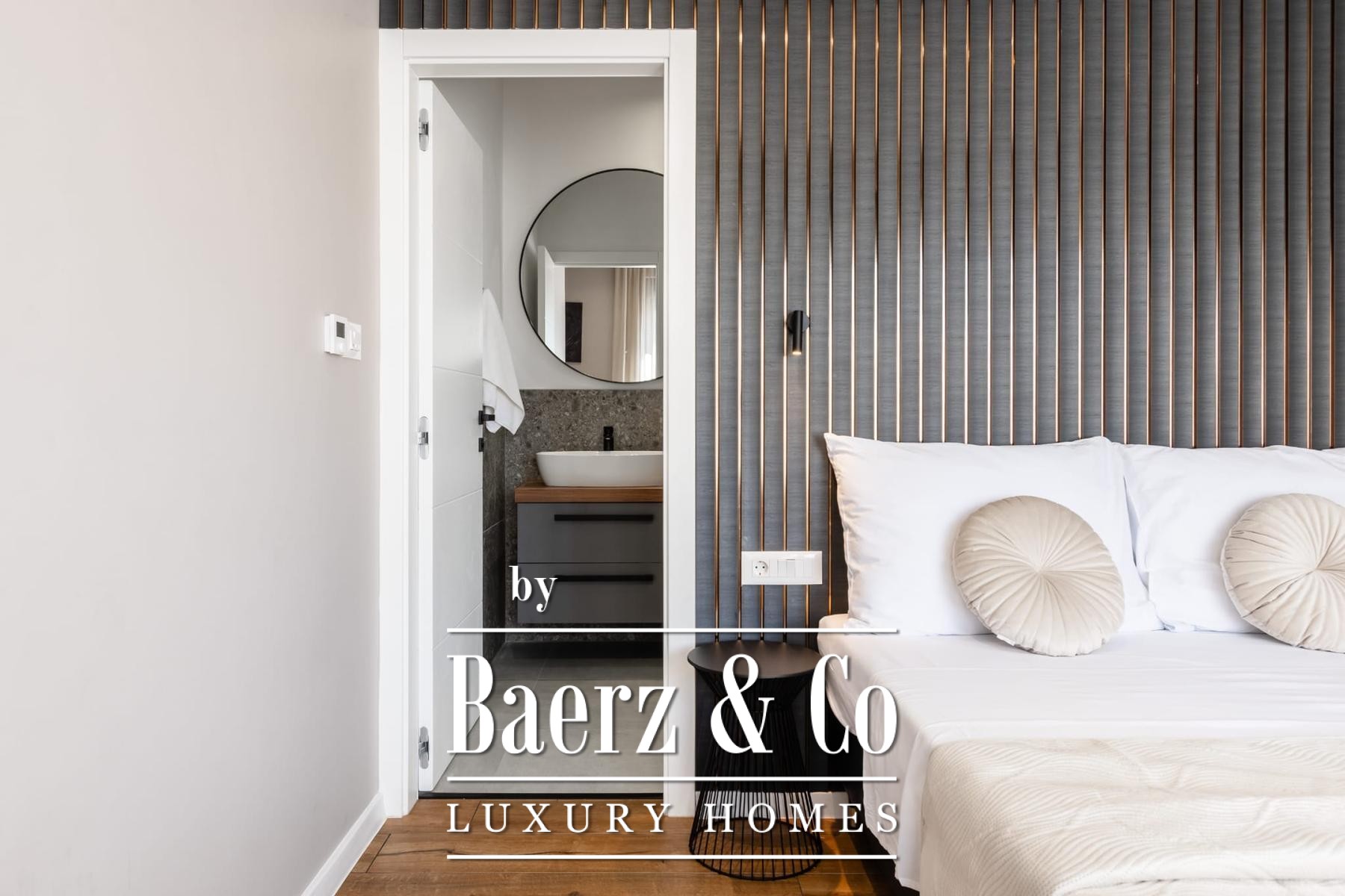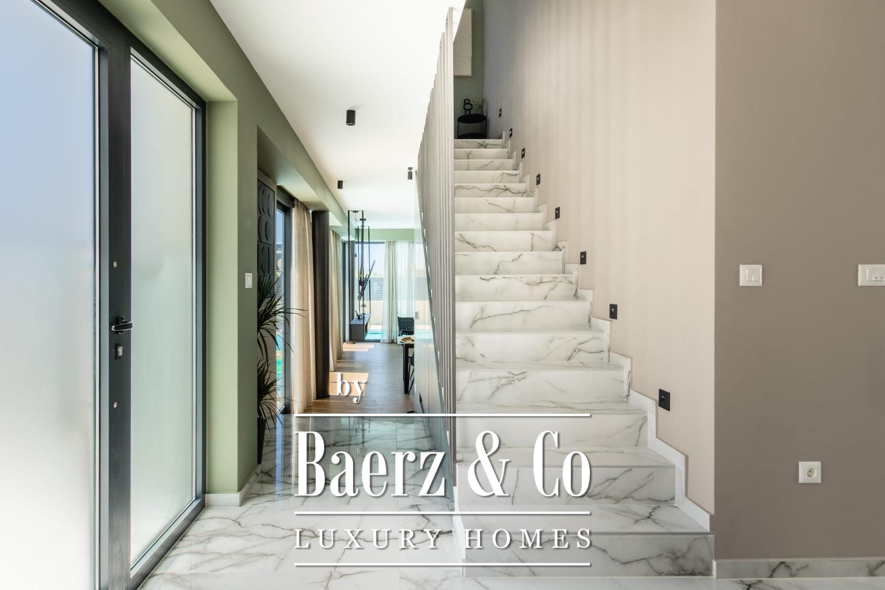 The ground floor unfolds over 92.40m² with an open kitchen, inviting dining area, tranquil living room, and a considered bathroom, balanced around the rhythm of daily gathering and retreat. A graceful staircase leads to the first floor, where 96.5m² host three en suite bedrooms, including a master suite, and access to a balcony of 13.9m², ushering in light and distant sea air. A signature feature, the 72.80m² roof terrace, presents a jacuzzi, summer kitchen, and immersive sea view, shaping a sanctuary above the landscape.