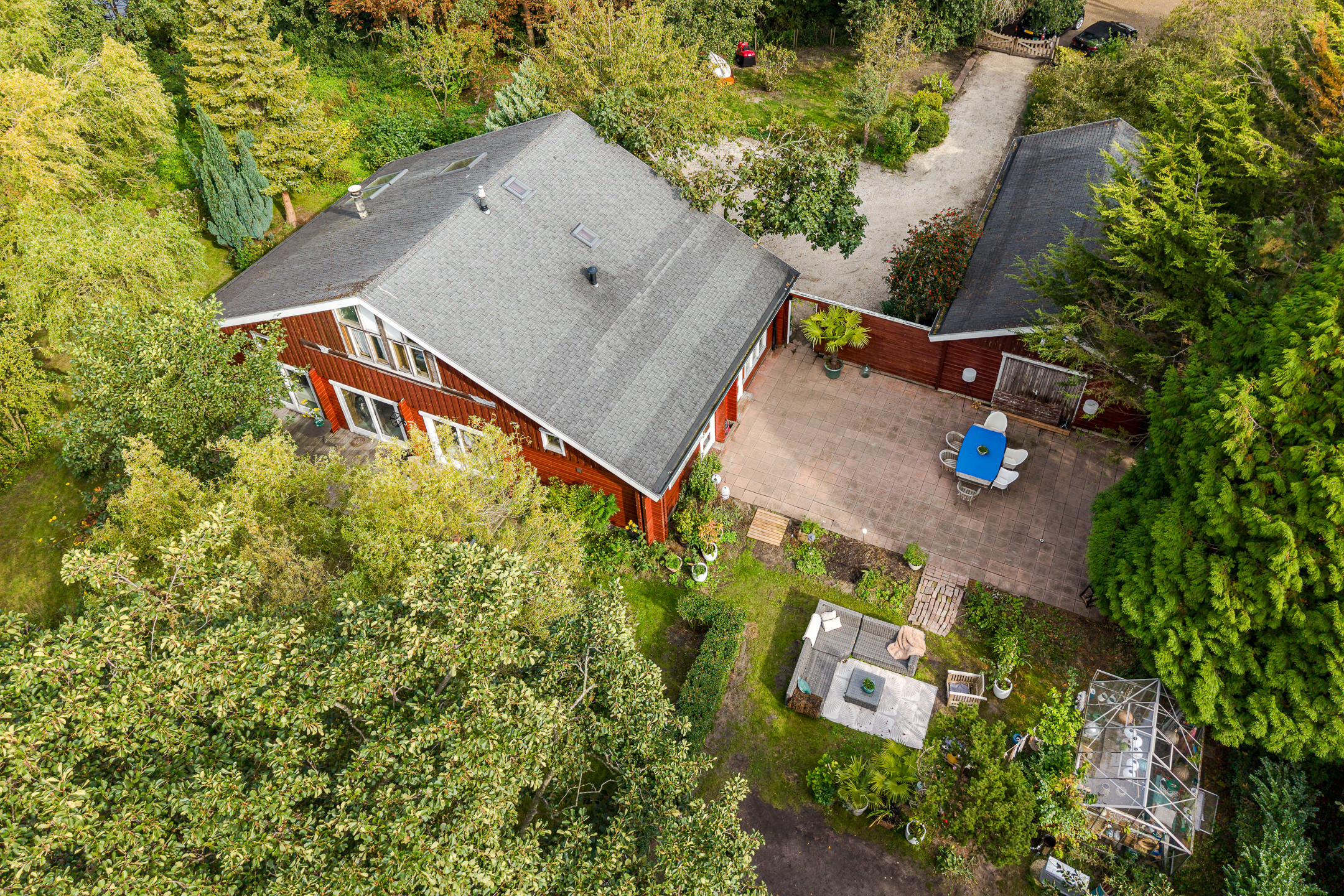 In truly the most beautiful location in Warmond, at a dead end, nestled among trees and water features, lies this truly unique villa. The house itself is a so-called Finn House, a highly sustainable wooden house in typical Scandinavian colors, making it a perfect fit for the green and watery surroundings.