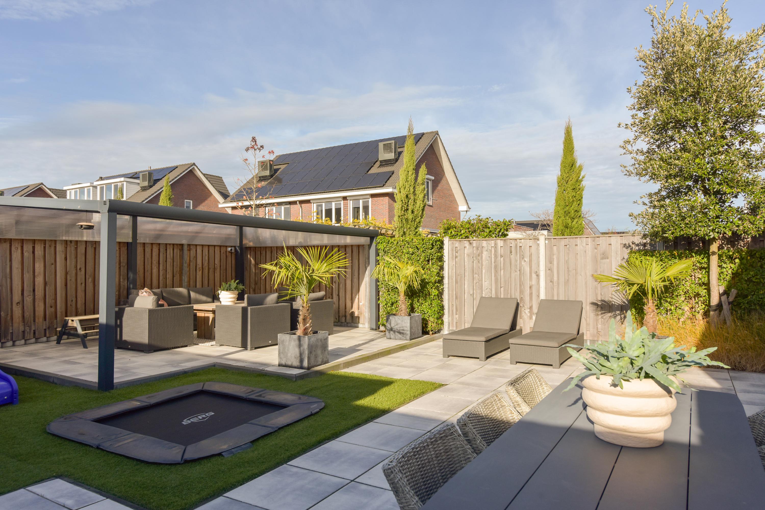 + West-facing garden with veranda, built-in trampoline, multiple terraces, and full irrigation system.