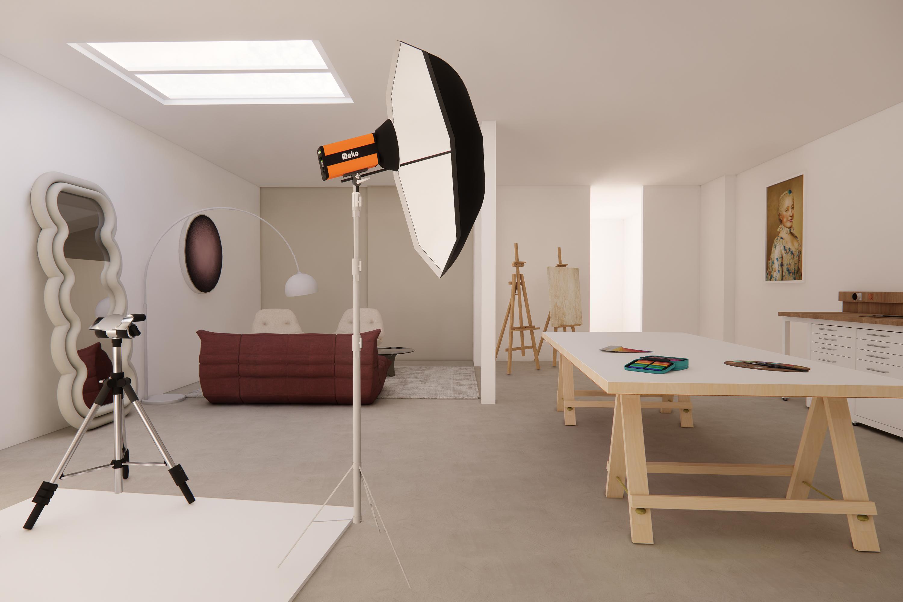 Second entrance, living room and a large studio on the ground floor.