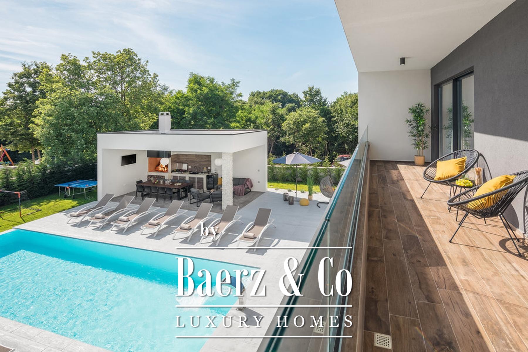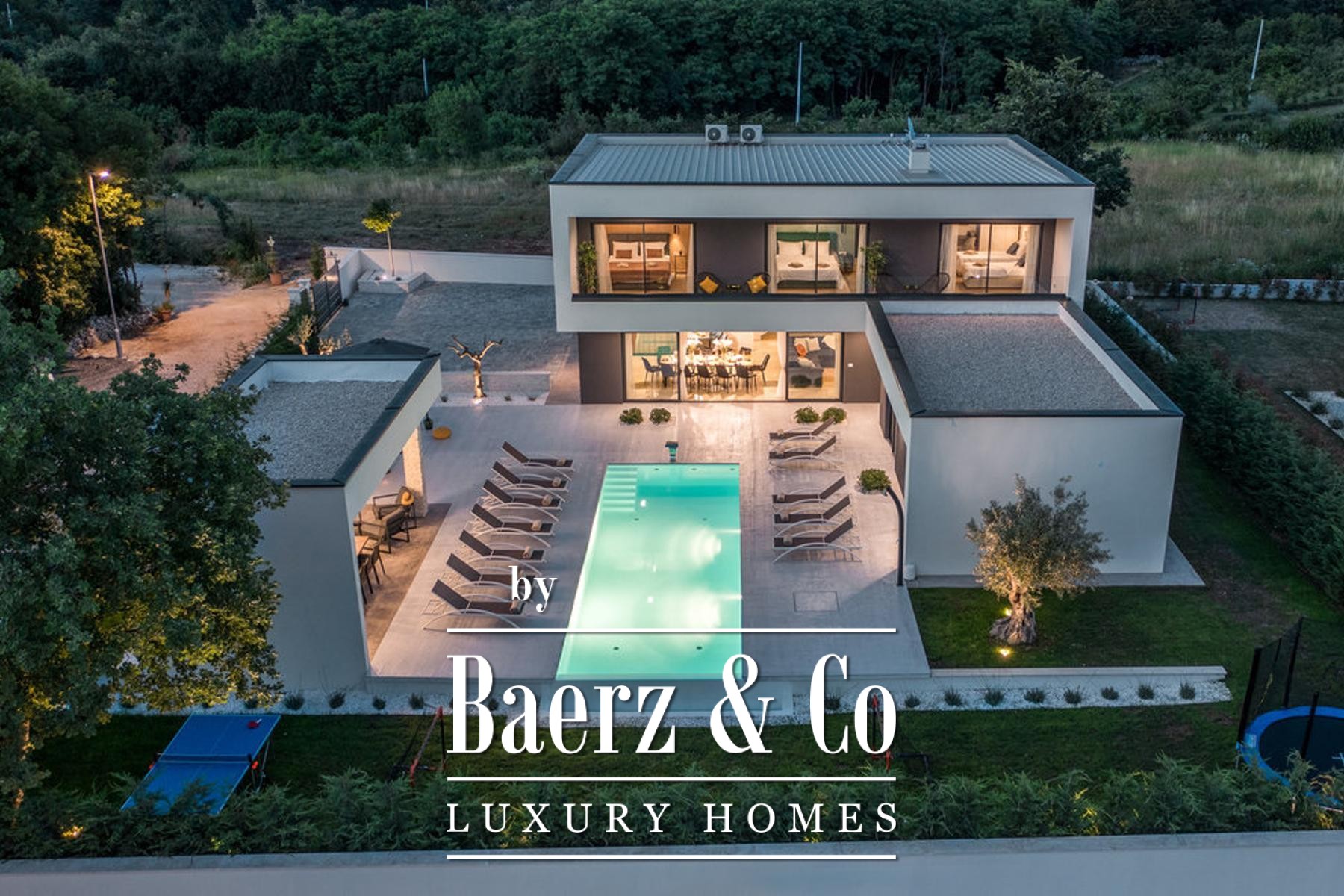Villa Žminj Central Istria is a modern residence set in the quiet village of Šivati, offering 308 m² of living space complemented by a separate 34 m² guest building. Designed for privacy and comfort, this villa welcomes you with understated elegance, blending high-calibre construction and refined materials into daily life.